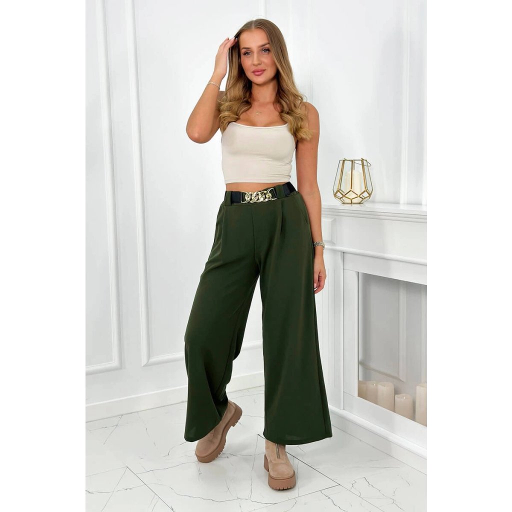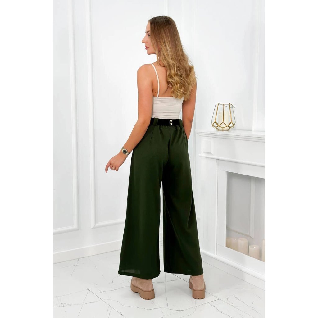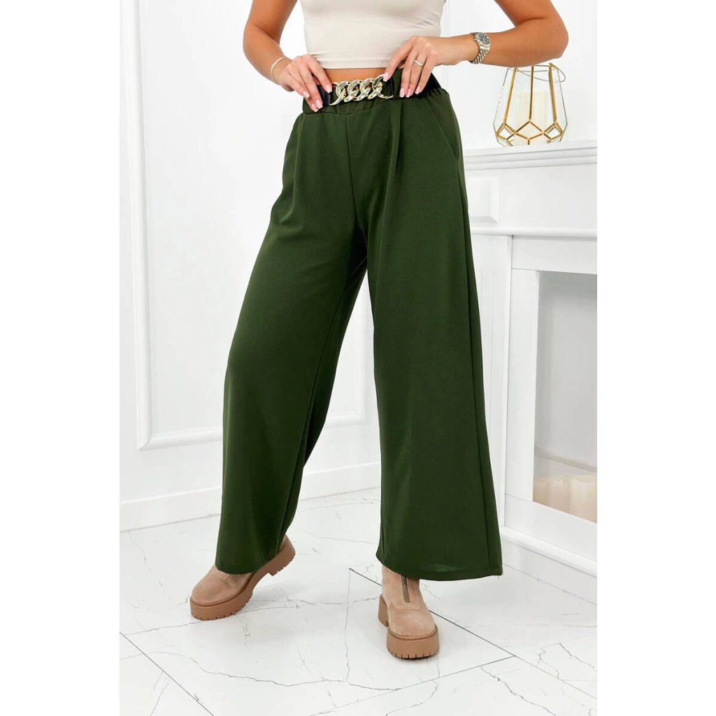 Nohavice s viskózou so širokými nohavicami khaki
