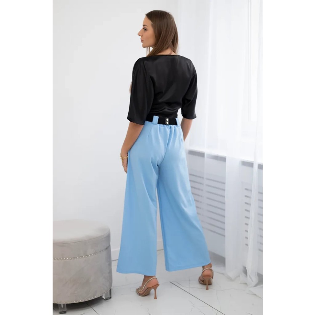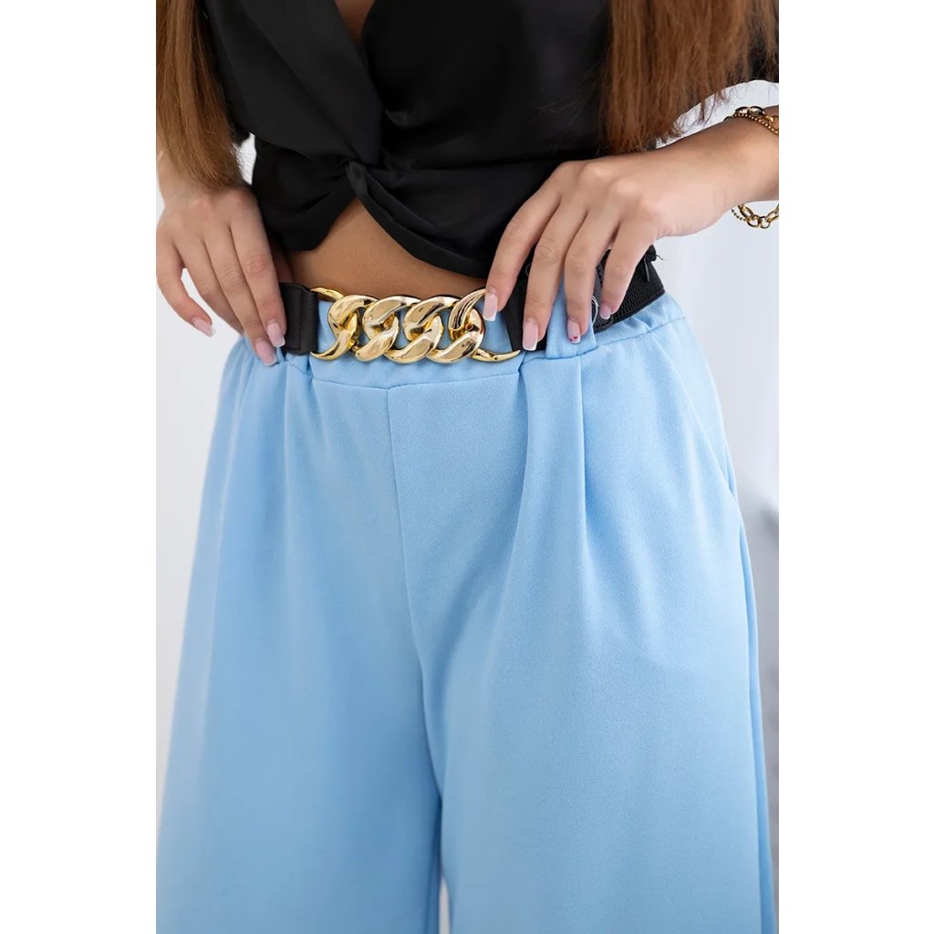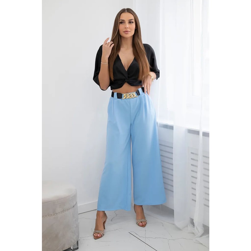 Talianske nohavice so širokou nohavicou a ozdobným pásom sú kombináciou pohodlia, elegancie a výnimočného štýlu. Vyrobené z ľahkého a jemného materiálu, akým je viskóza, poskytujú pohodlie počas celého dňa. Charakteristickou črtou týchto nohavíc je ich široká nohavica, ktorá im dodáva ľahkosť a voľnosť pohybu. Sú ideálnou voľbou na horúce letné dni, keď sa chceme cítiť pohodlne a zároveň zachovať elegantný vzhľad. Ďalšou výhodou týchto talianskych nohavíc je ozdobný pás, ktorý im dodáva výnimočný šarm. Tieto nohavice sú výrazom talianskej módy, ktorá kladie dôraz na pohodlie a štýl zároveň. Možno ich nosiť ako na bežný deň, tak aj na formálnejšie príležitosti, čo ich robí nesmierne všestrannými a praktickými. Sú skutočnou perlou medzi odevmi, ktorá podčiarkne individuálny štýl a pocit estetiky každej ženy. Veľkosť je univerzálna a bude vhodná pre dámy, ktoré nosia veľkosť S, M alebo L.