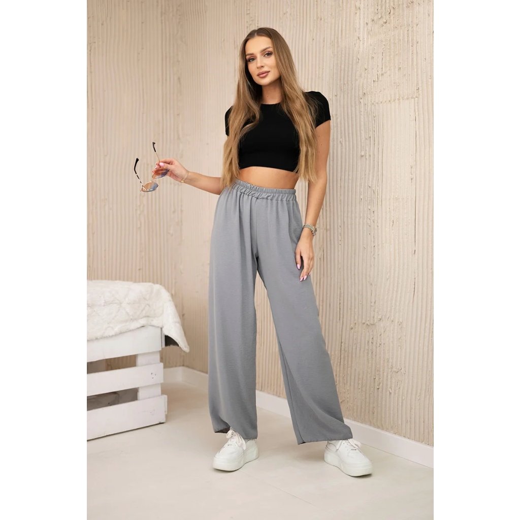 Nohavice z viskózy so širokou nohavicou sú výnimočným kúskom šatníka, ktorý spája v sebe komfort a eleganciu. Vyrobené z ľahkého a priedušného materiálu viskózy, tieto nohavice zaručujú nielen voľnosť pohybu, ale aj zabezpečujú pocit ľahkosti a sviežosti počas celého dňa. Široká nohavica dodáva nohaviciam charakteristický, voľný strih, ktorý je zároveň moderný a pohodlný. Tento prvok spôsobuje, že nohavice vyzerajú mimoriadne štýlovo a efektne, dodávajúc originalitu každej stylizácii. Univerzálny dizajn nohavíc so širokou nohavicou spôsobuje, že sa skvele hodia na rôzne príležitosti a stylizácie. Môžete ich nosiť nielen k denným, ležérnym outfitom, ale aj k elegantnejším kompletom na pracovné stretnutia či večerné výlety. Nohavice z viskózy so širokou nohavicou sú ideálnou voľbou pre ženy, ktoré si cenia pohodlie a štýl. Vďaka svojmu univerzálnemu dizajnu a vysokej kvalite spracovania, tieto nohavice tvoria nepostrádateľný prvok šatníka, ktorý skvele doplní každú kolekciu oblečenia. Veľkosť je univerzálna a bude vhodná pre dámy nosiace veľkosť S, M alebo L.
