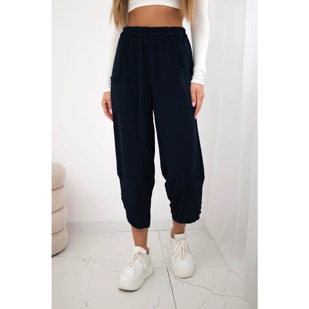 Nohavice so širokými nohavicami a vreckami tmavomodré