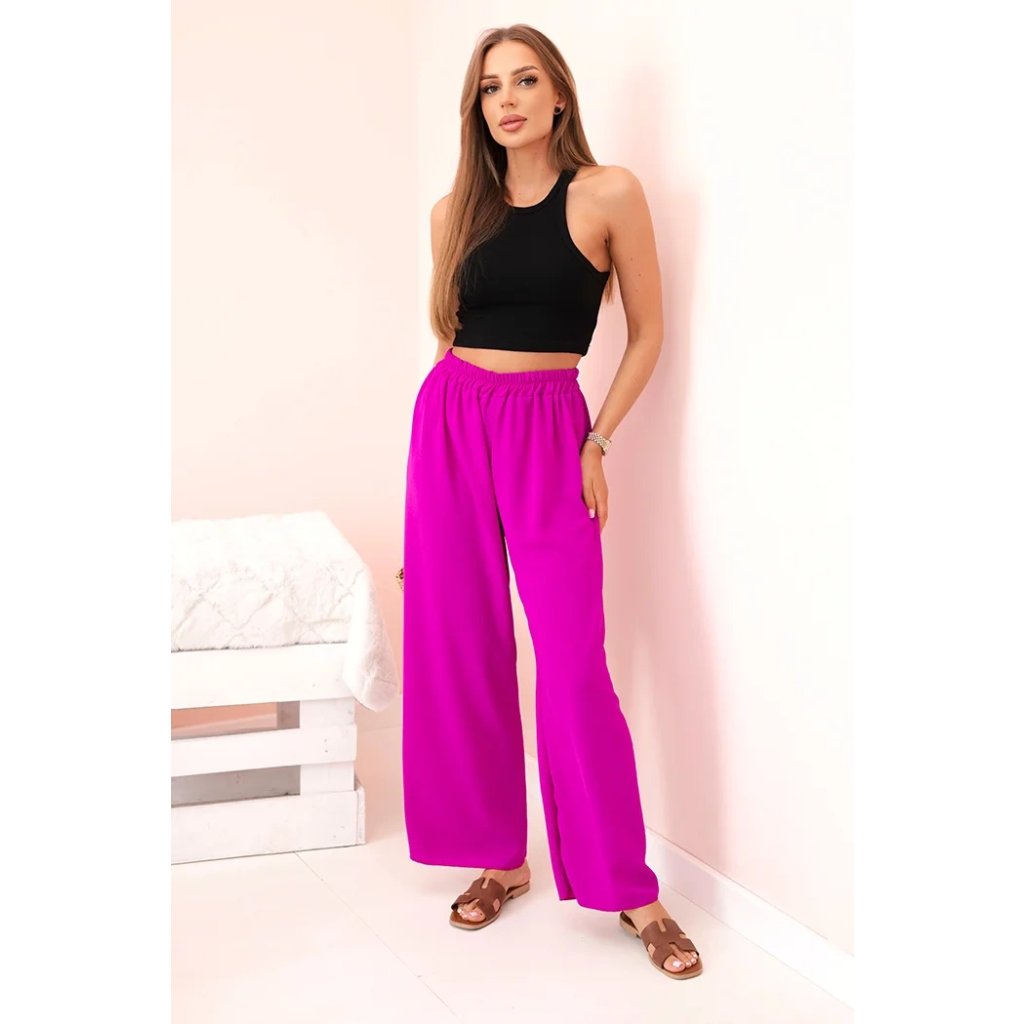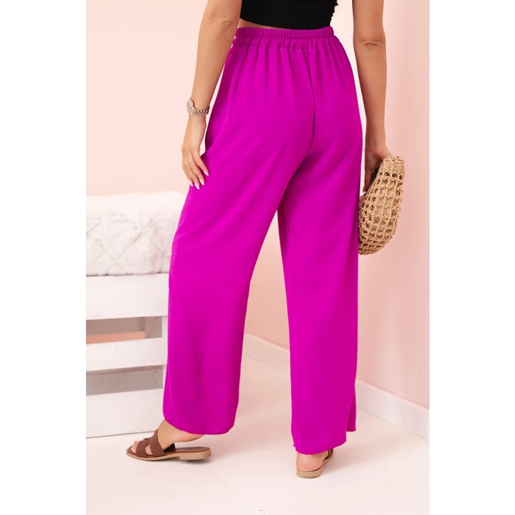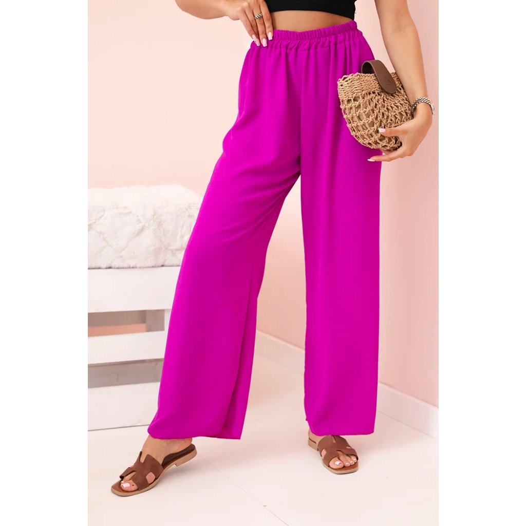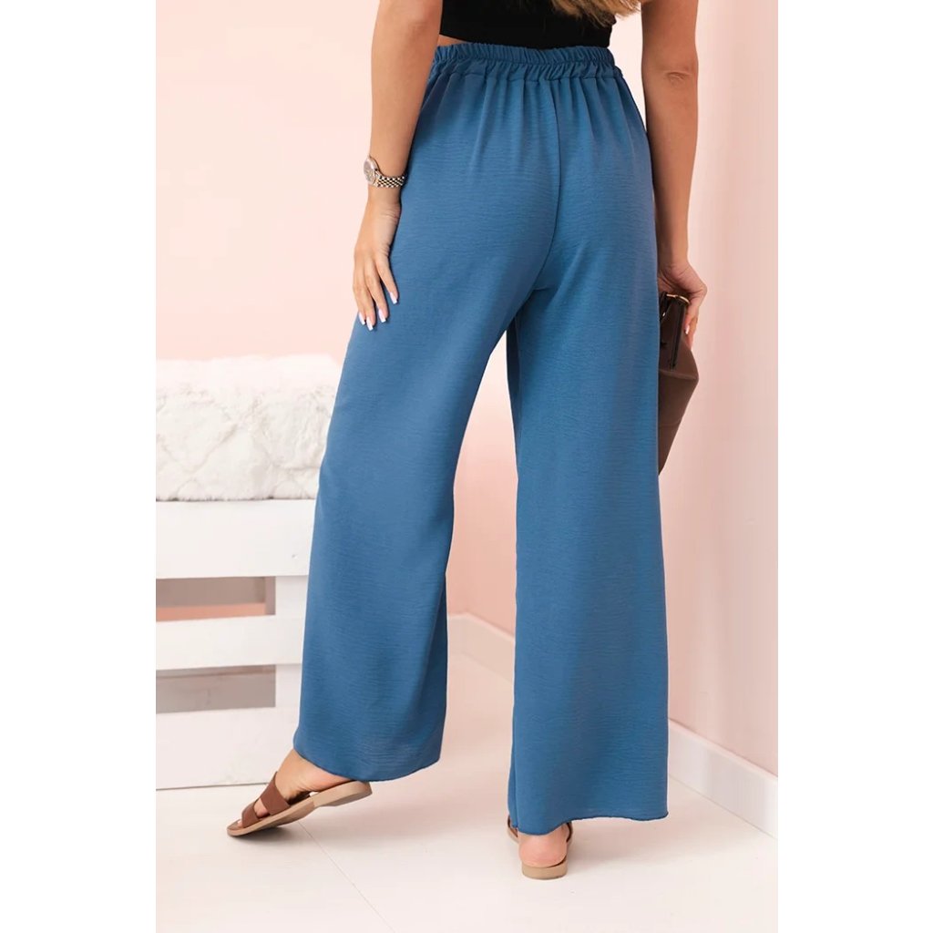 Nohavice z viskózy so širokou nohavicou sú výnimočným kúskom šatníka, ktorý kombinuje pohodlie a eleganciu. Vyrobené z ľahkého a vzdušného materiálu viskózy, tieto nohavice zaručujú nielen voľnosť pohybu, ale tiež poskytujú pocit ľahkosti a sviežosti počas celého dňa. Široká nohavica dodáva nohaviciam charakteristický, voľný strih, ktorý je zároveň módny i pohodlný. Tento prvok robí nohavice mimoriadne štýlovými a pôsobivými, pridáva originalitu každej štylizácii. Univerzálny dizajn nohavíc so širokou nohavicou ich robí dokonale vhodnými na rôzne príležitosti a štylizácie. Môžete ich nosiť ako do bežných, ležérnych outfitov, tak aj do elegantnejších súprav na obchodné stretnutia či večerné výjavy. Nohavice z viskózy so širokou nohavicou sú ideálnym výberom pre ženy, ktoré si cenia pohodlie a štýl. Vďaka svojmu univerzálnemu dizajnu a kvalite prevedenia tvoria tieto nohavice nenahraditeľný kúsok šatníka, ktorý skvele doplní každú kolekciu oblečenia. Veľkosť je univerzálna a bude vhodná pre dámy nosiace veľkosť S, M alebo L.