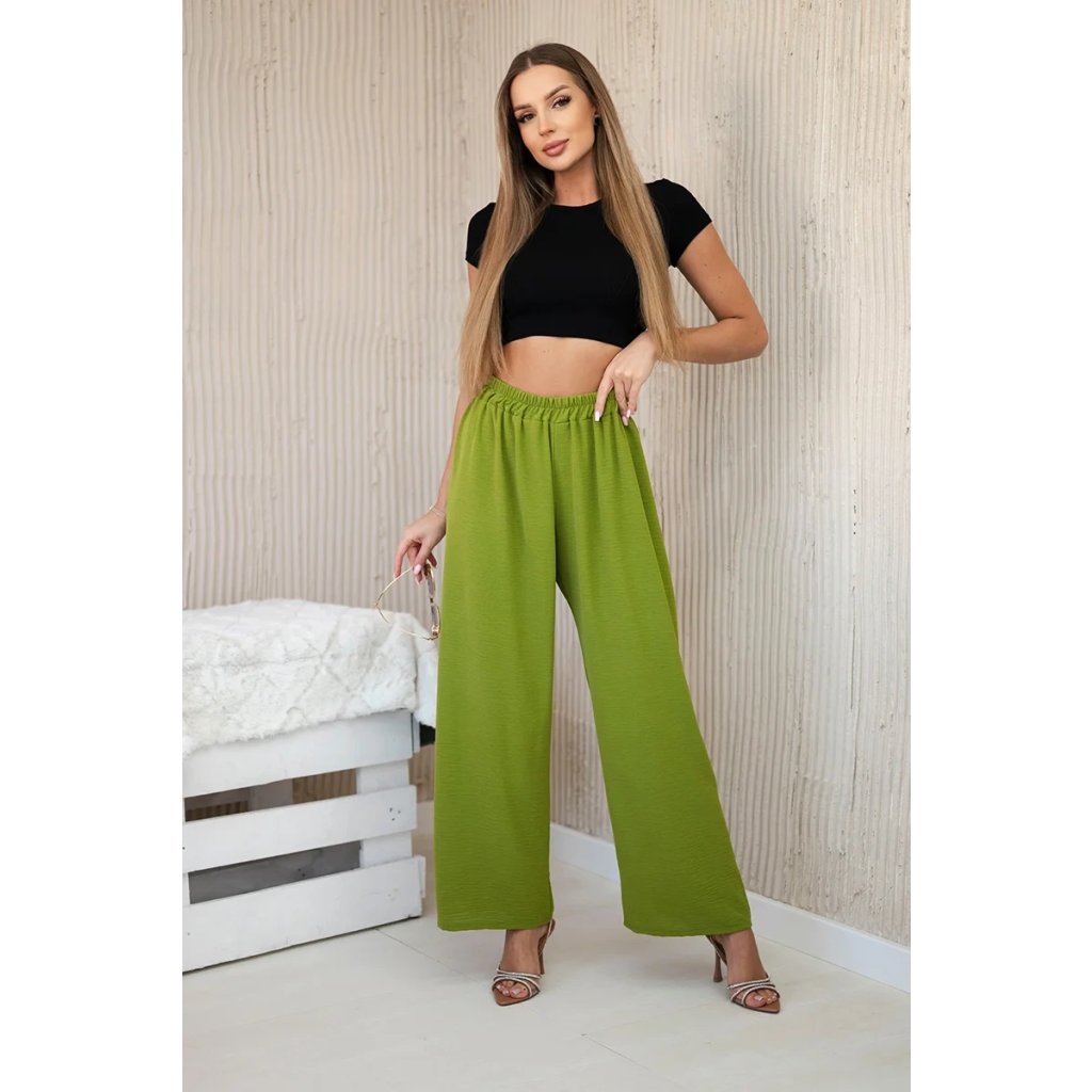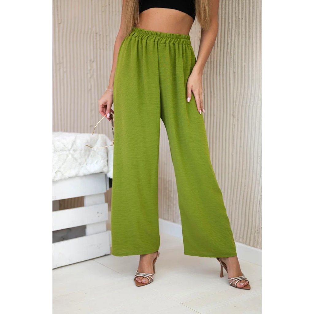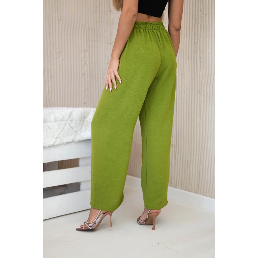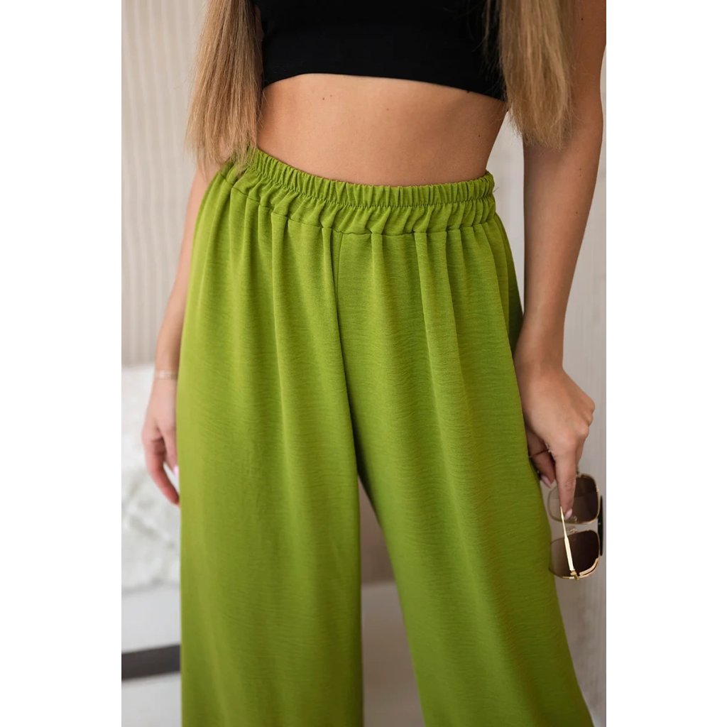 Olivové nohavice so širokými nohavicami