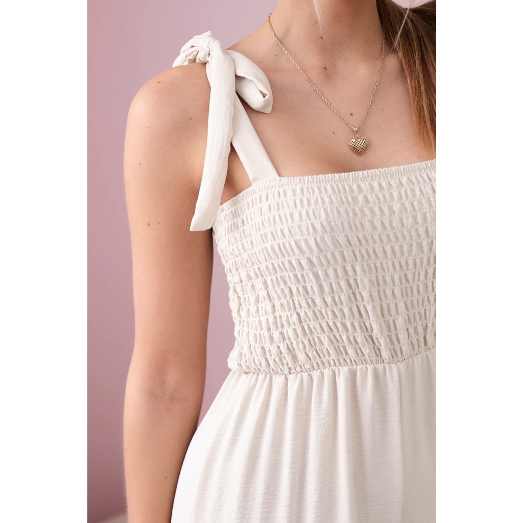 Overal na ramienka s nariaseným vrchom je zmyselnou a módnou voľbou, ktorá pridáva eleganciu a jemnosť každej štylizácii. Jeho nariasené zakončenie na vrchu vytvára efektný akcent, zvýrazňujúc dekolt a pridávajúc ženský pôvab. Ramienka pridávajú ľahkosť celej štylizácii, zároveň zabezpečujú slobodu pohybu. Vyrobený z vysokokvalitných materiálov, overal zabezpečuje pohodlie pri nosení a dokonale sa prispôsobuje postave. Výborný na letné dni a večerné výjazdy, tento overal ti umožní vyniknúť a cítiť sa sebavedomo, pridávajúc tvojej štylizácii výnimočný pôvab a eleganciu. Veľkosť je univerzálna a bude pasovať pre osoby vo veľkosti S, M a L.