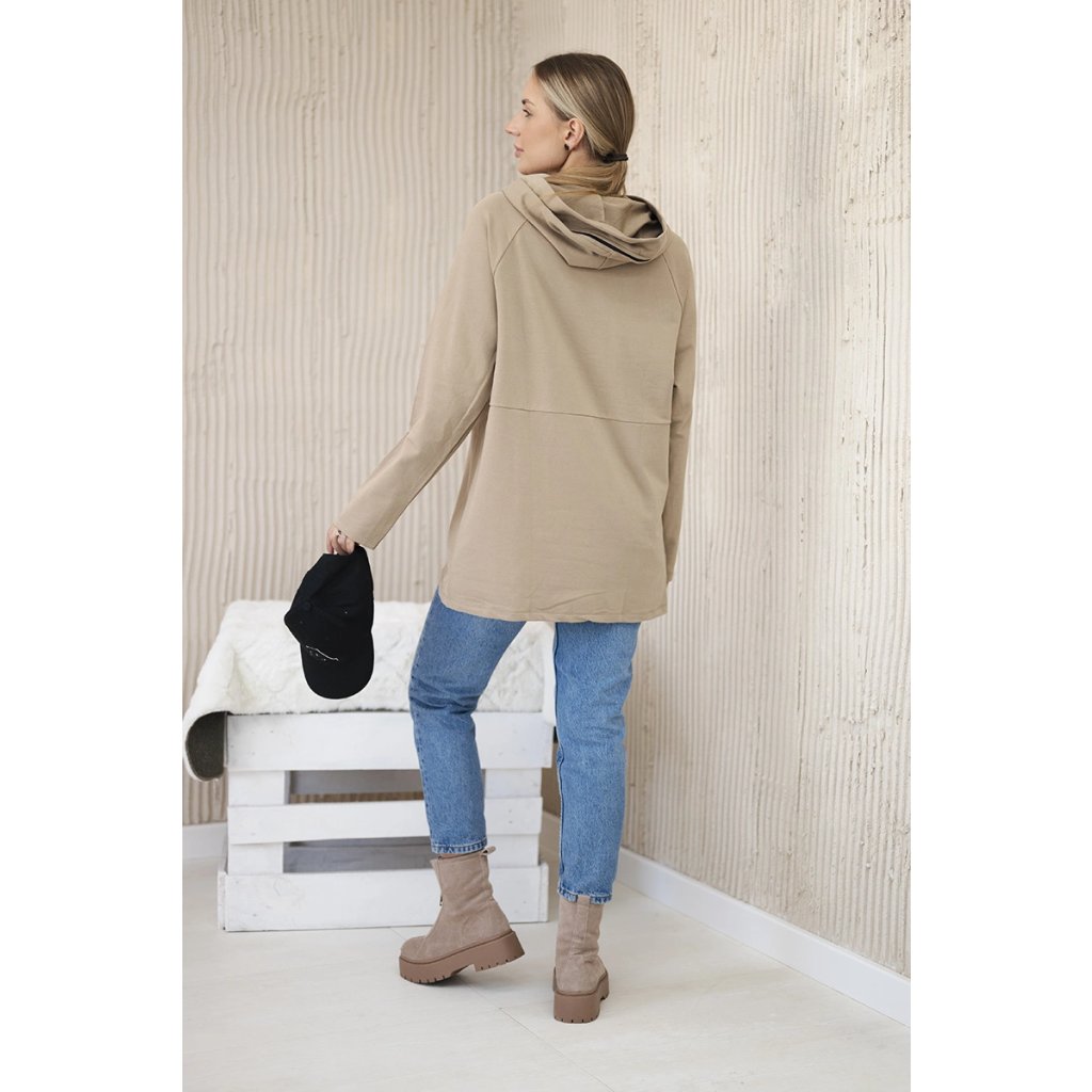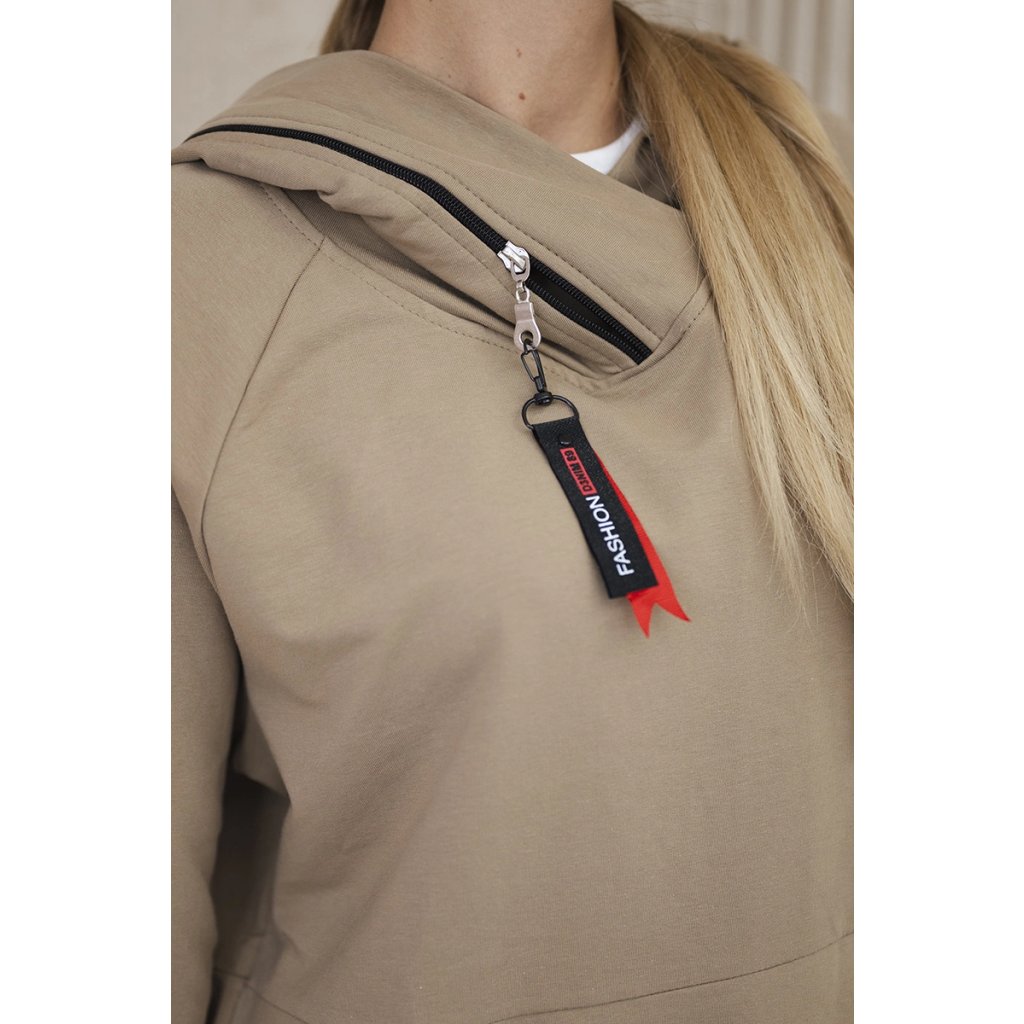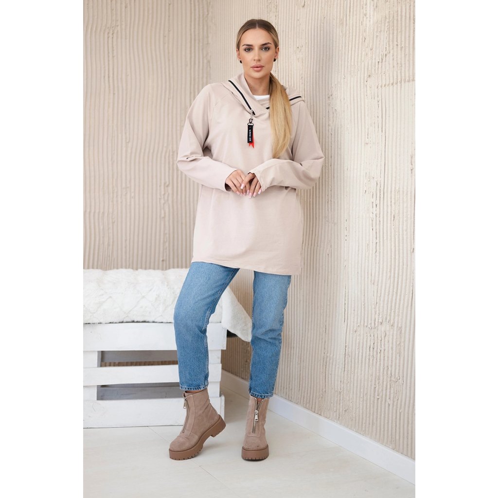 Oversize béžová tunika so zipsom na kapucni