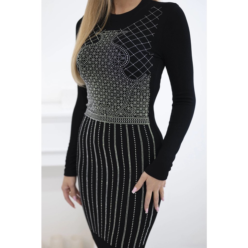 Pletené šaty so strieborným motívom z krištáľov čierne