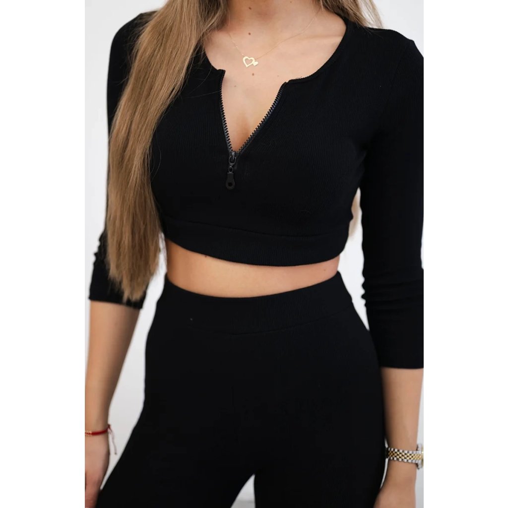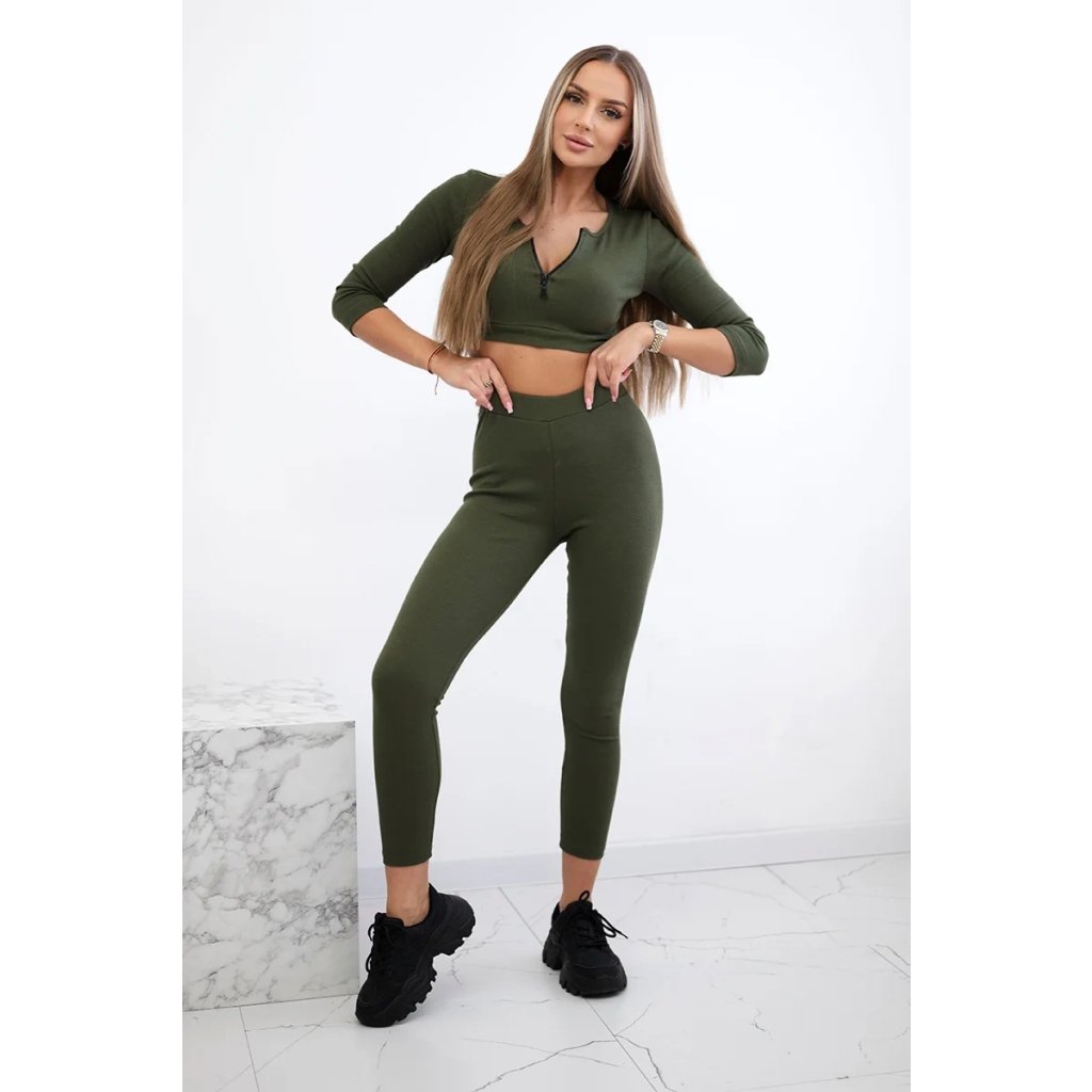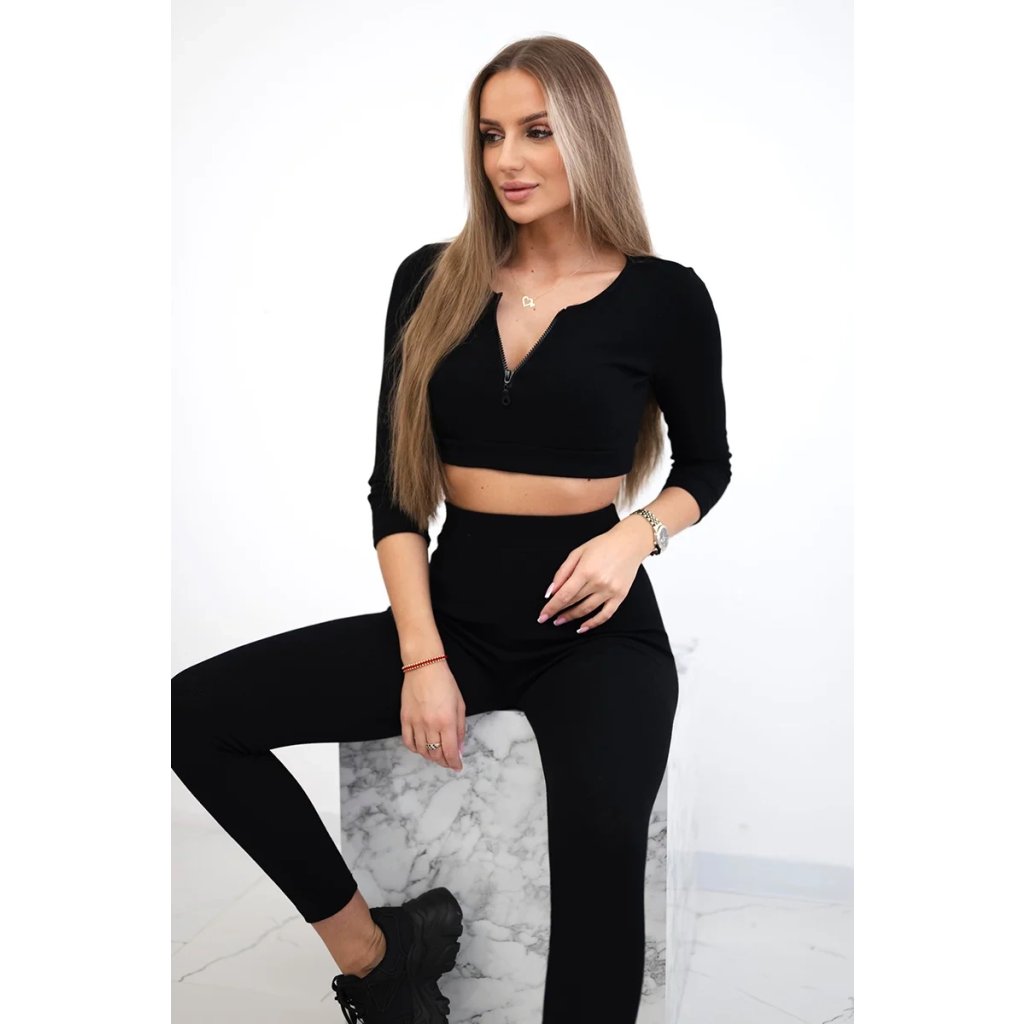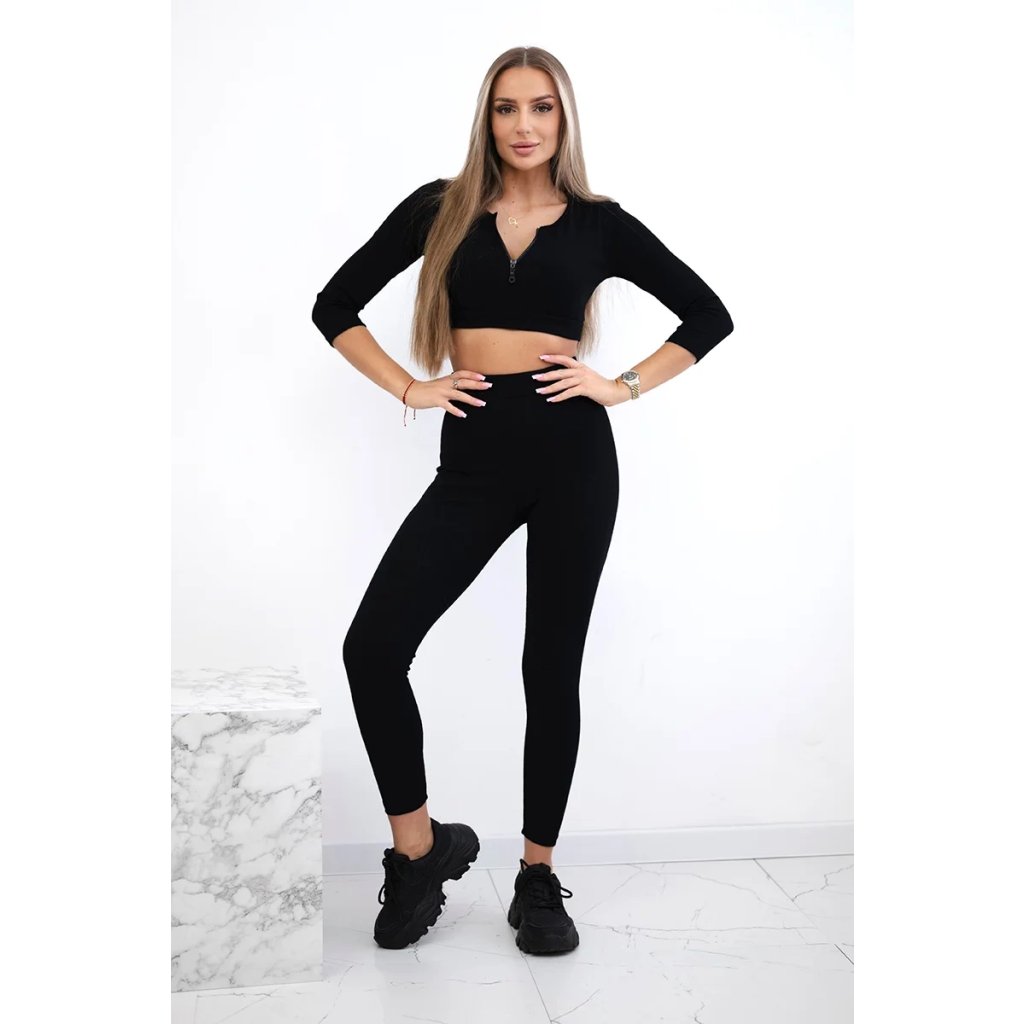 Predstavujeme vám súpravu blúzky a legín. Blúzka s dlhým rukávom. Blúzka a legíny z rebrovaného materiálu. Blúzka má zips. Súprava je vyrobená z vysoko kvalitného materiálu. Veľkosť je univerzálna a bude vhodná pre dámy vo veľkosti XS, S