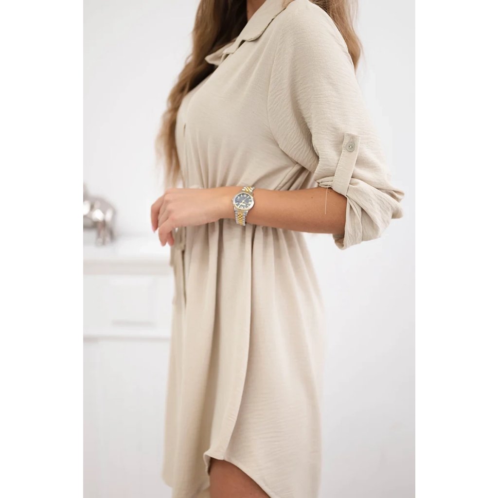 Šaty so zapínaním na gombíky, s viazaním v páse a golierom sú spojením elegancie a jemného pôvabu v jednom. Gombíky pridávajú šatám triedu a štýl, zároveň umožňujú jednoduché obliekanie a vyzliekanie. Viazanie v páse zvýrazňuje ženskú siluetu, dodáva jej individuálny charakter a zaisťuje ideálne prispôsobenie postave. Golier dodáva eleganciu a rafinovanosť, pričom šatám prepožičiava jemný a subtílny akcent. Je to ideálna voľba na rôzne príležitosti, od obchodných stretnutí až po romantické rande, pričom zaisťuje pohodlie a módny vzhľad. Veľkosť je univerzálna a vhodná pre dámy nosiace veľkosti S, M alebo L.