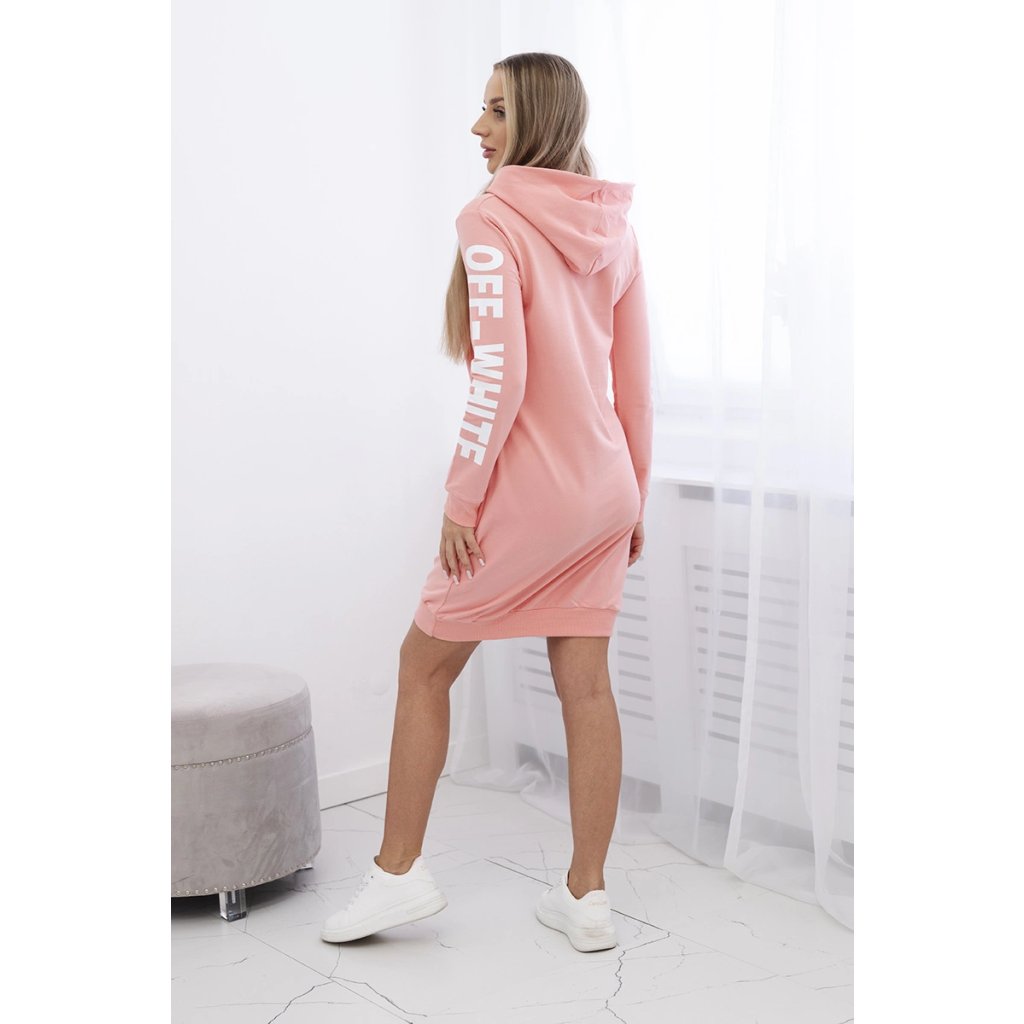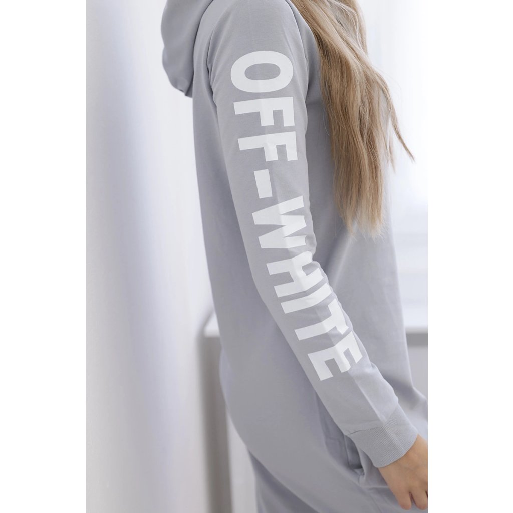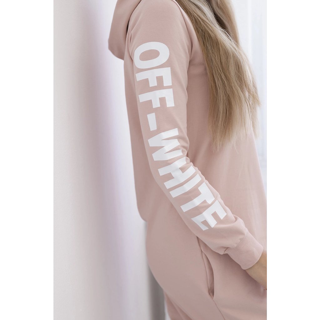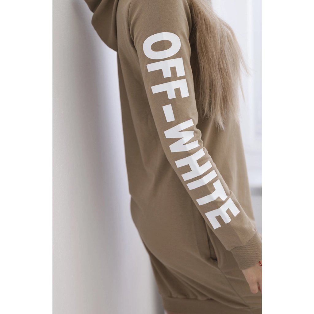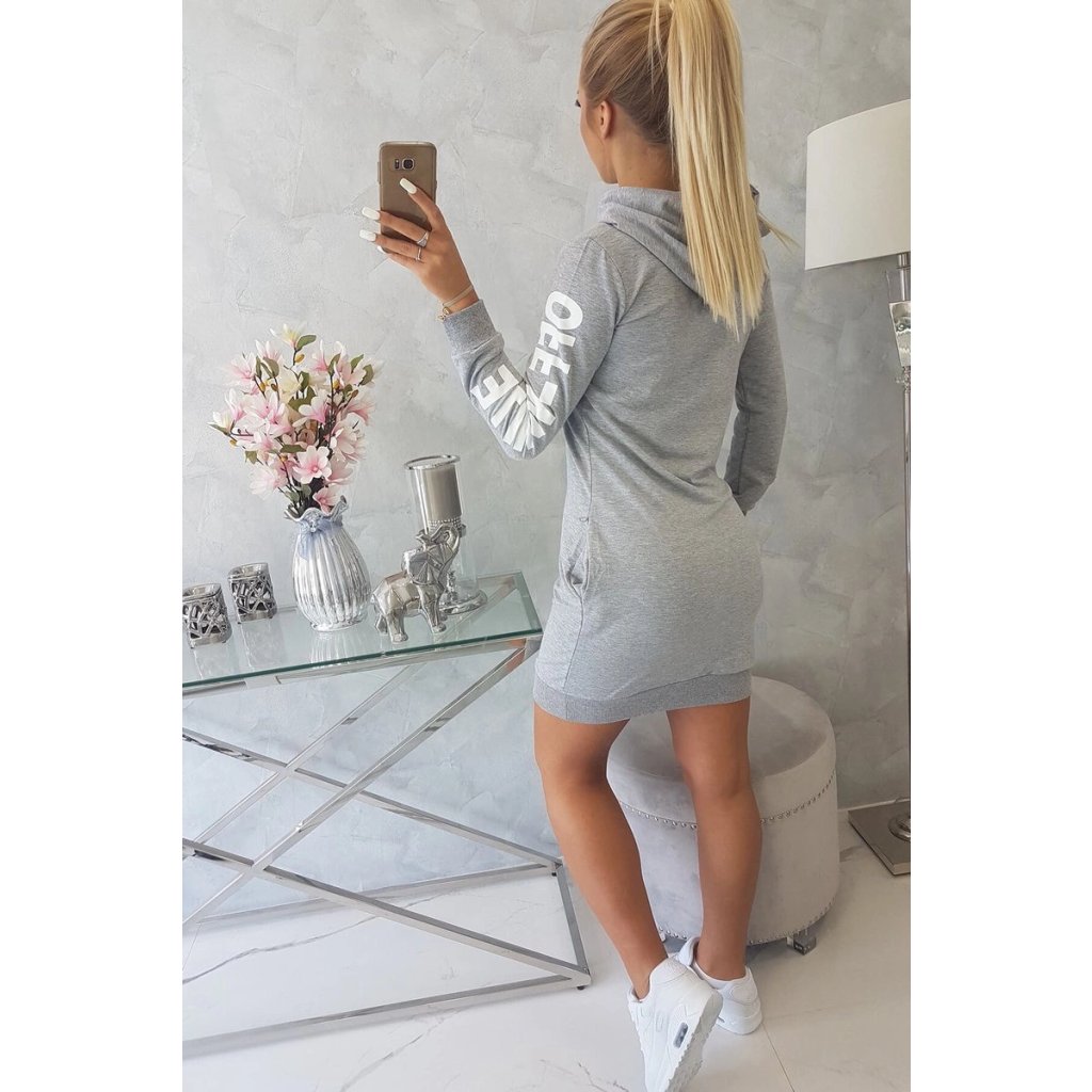 Predstavujeme vám módne šaty. Šaty s kapucňou a nápisom na rukáve off white. Šaty majú vrecká. Šaty sú vyrobené z vysokokvalitného materiálu. Veľkosť je univerzálna a bude vhodná pre dámy nosiace veľkosť S, M alebo L.