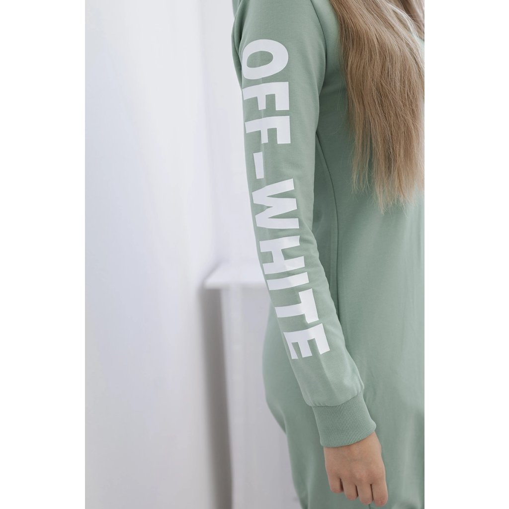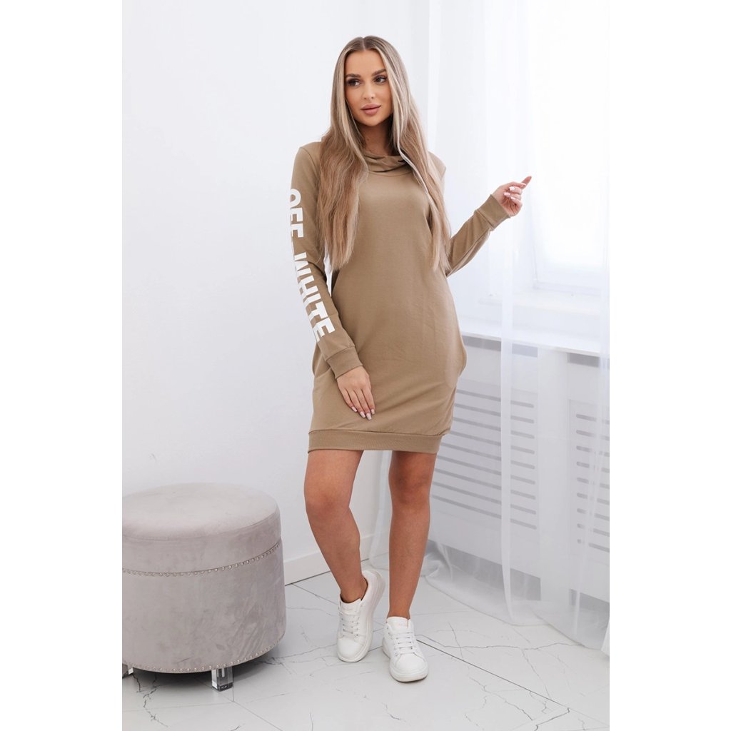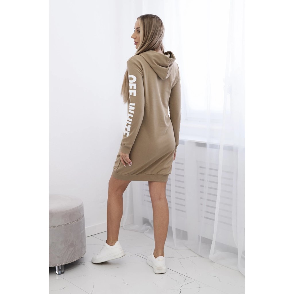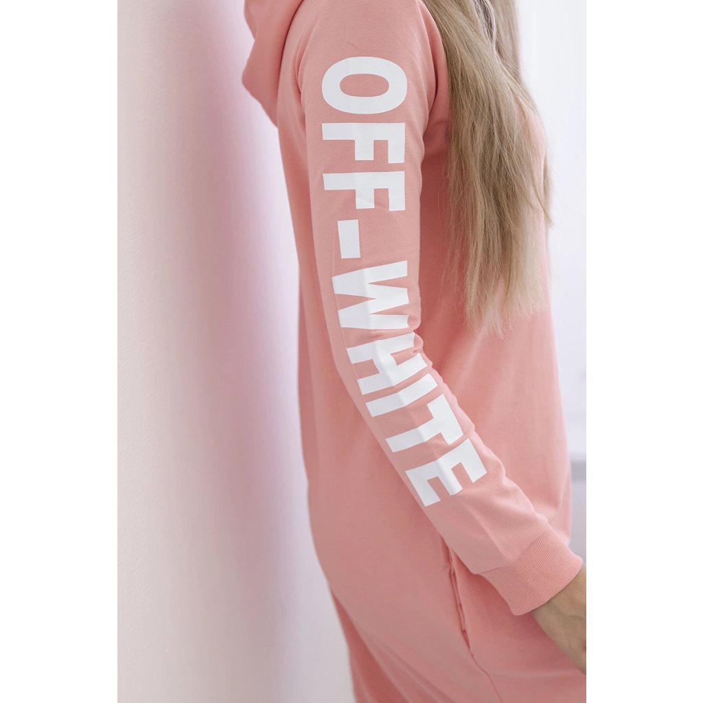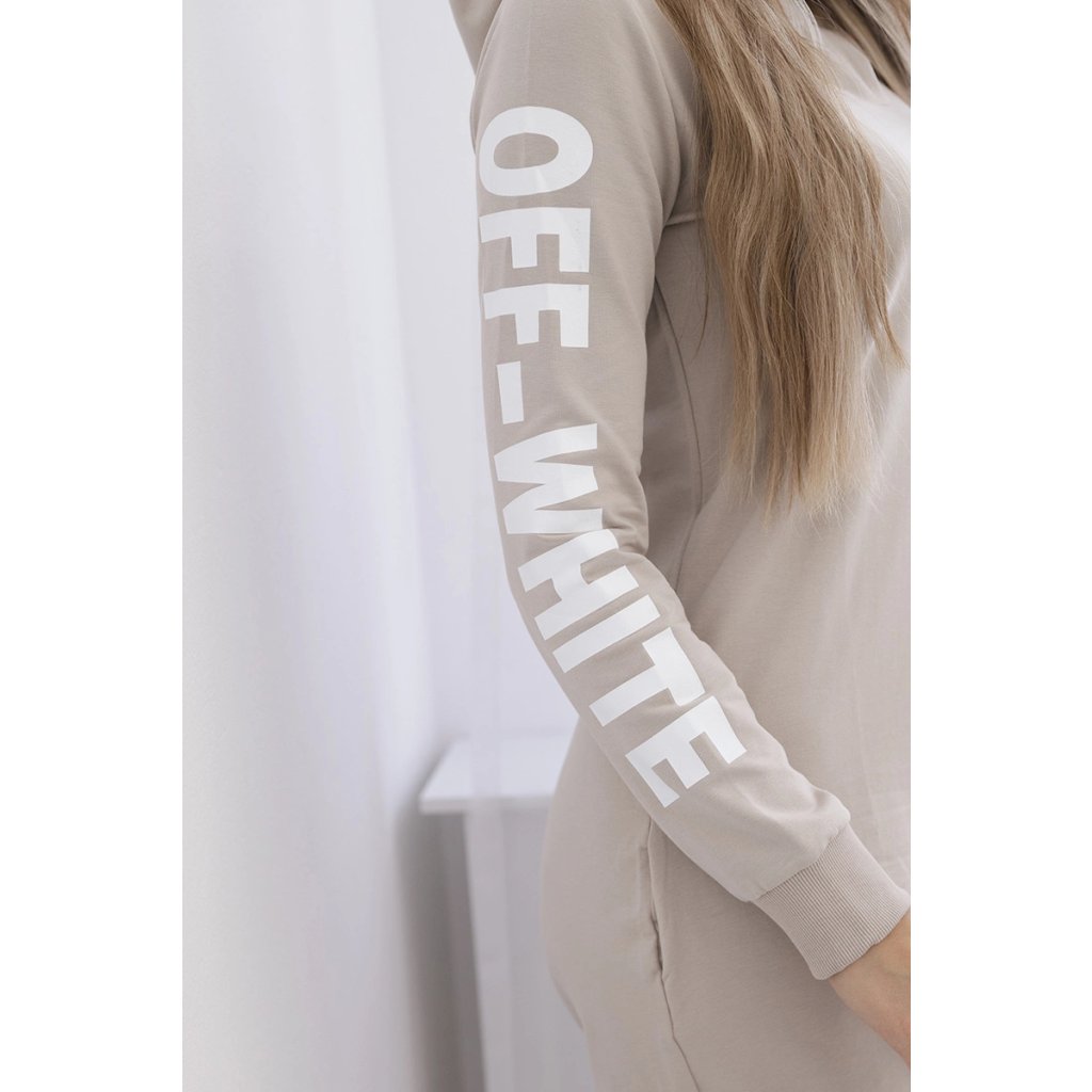 Predstavujeme vám módne šaty. Šaty s kapucňou a nápisom na rukáve off white. Šaty majú vrecká. Šaty sú vyrobené z vysokokvalitného materiálu. Veľkosť je univerzálna a bude vhodná pre dámy nosiace veľkosť S, M alebo L.