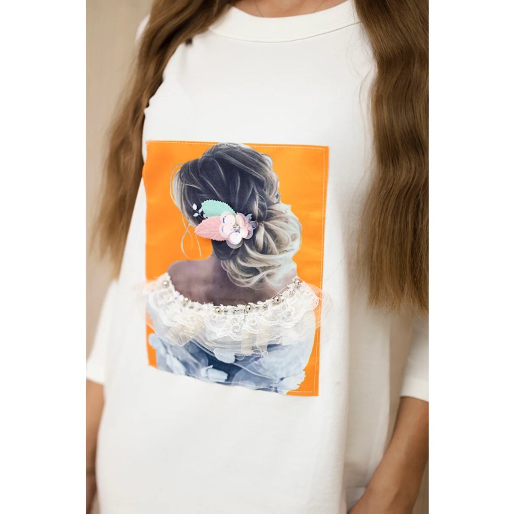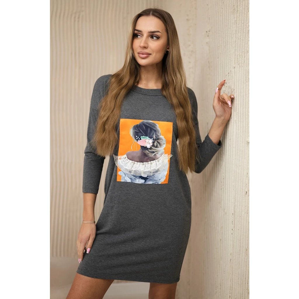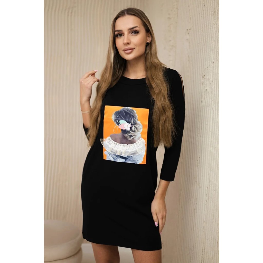 Predstavujeme vám módne šaty. Šaty a majú našitú grafiku vpredu zobrazujúcu dievča. Šaty s prieramkami na ramenách. Ideálna voľba na každý deň. Šaty sú vyrobené z vysokokvalitného materiálu. Veľkosť je univerzálna a bude vhodná pre dámy nosiace veľkosť S, M alebo L.