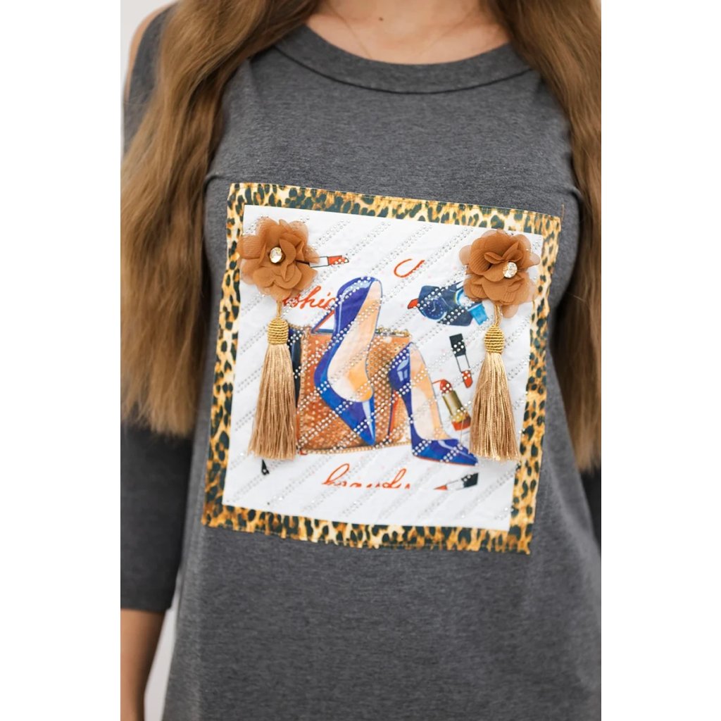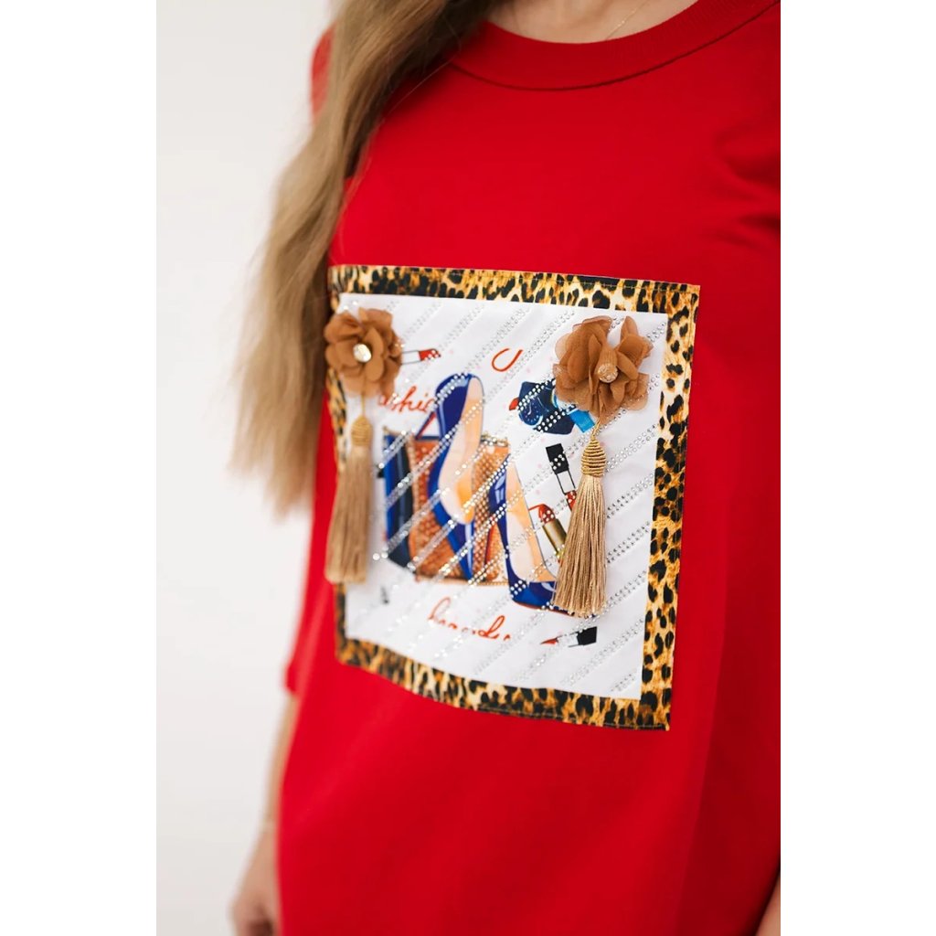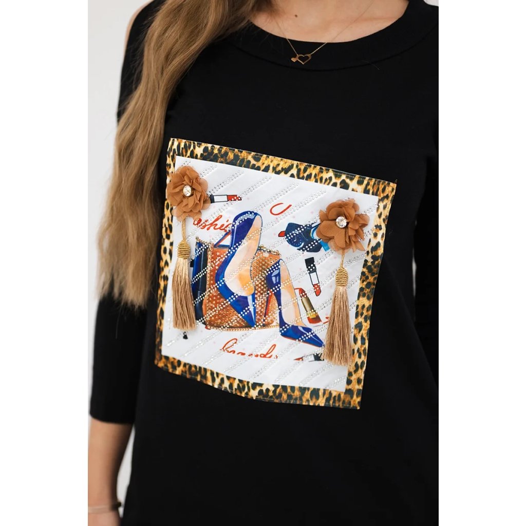 Predstavujeme vám módne šaty. Šaty majú našitú grafiku. Šaty s priečkami na ramenách. Ideálna voľba na každý deň. Šaty sú vyrobené z vysoko kvalitného materiálu. Veľkosť je univerzálna a bude vhodná pre dámy, ktoré nosia veľkosť S, M alebo L.
