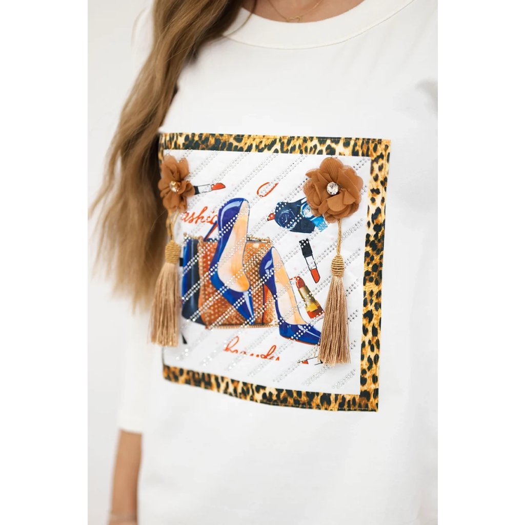 Šaty s 3D grafikou a ozdobnými strapcami v ekru
