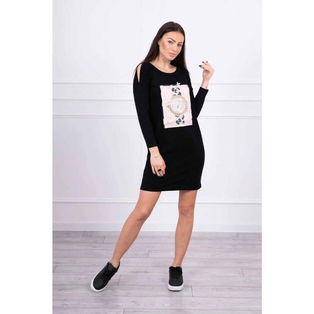 Predstavujeme vám módne šaty. Šaty majú našitú grafiku s perličkami a kvetmi. Šaty s rozstrihmi na pleciach. Ideálna voľba na každý deň. Šaty sú vyrobené z vysoko kvalitného materiálu. Veľkosť je univerzálna a bude vhodná pre dámy nosiace veľkosť S, M alebo L.