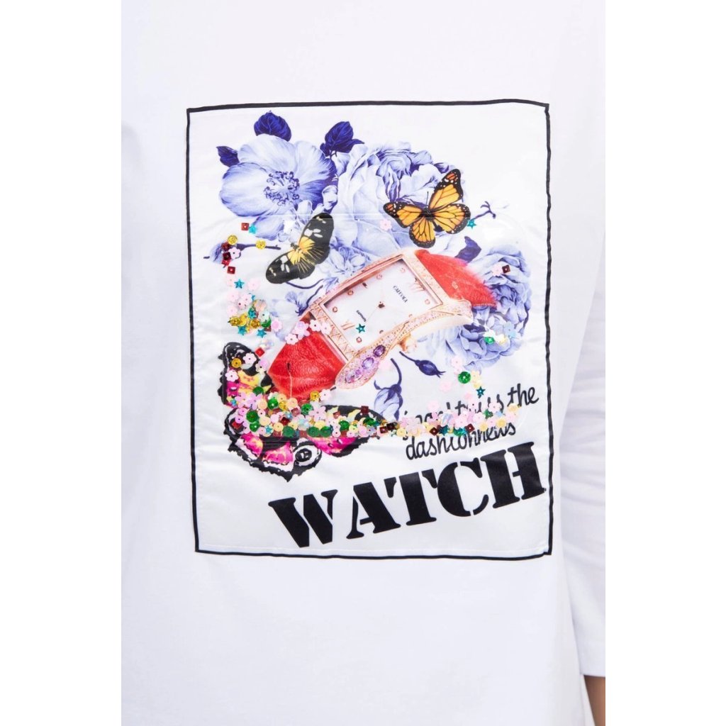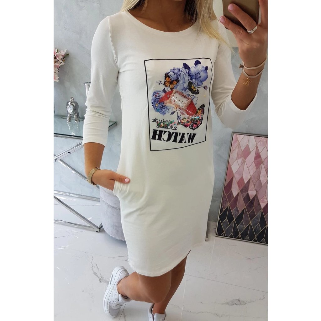 Šaty s 3D grafikou Watch ecru