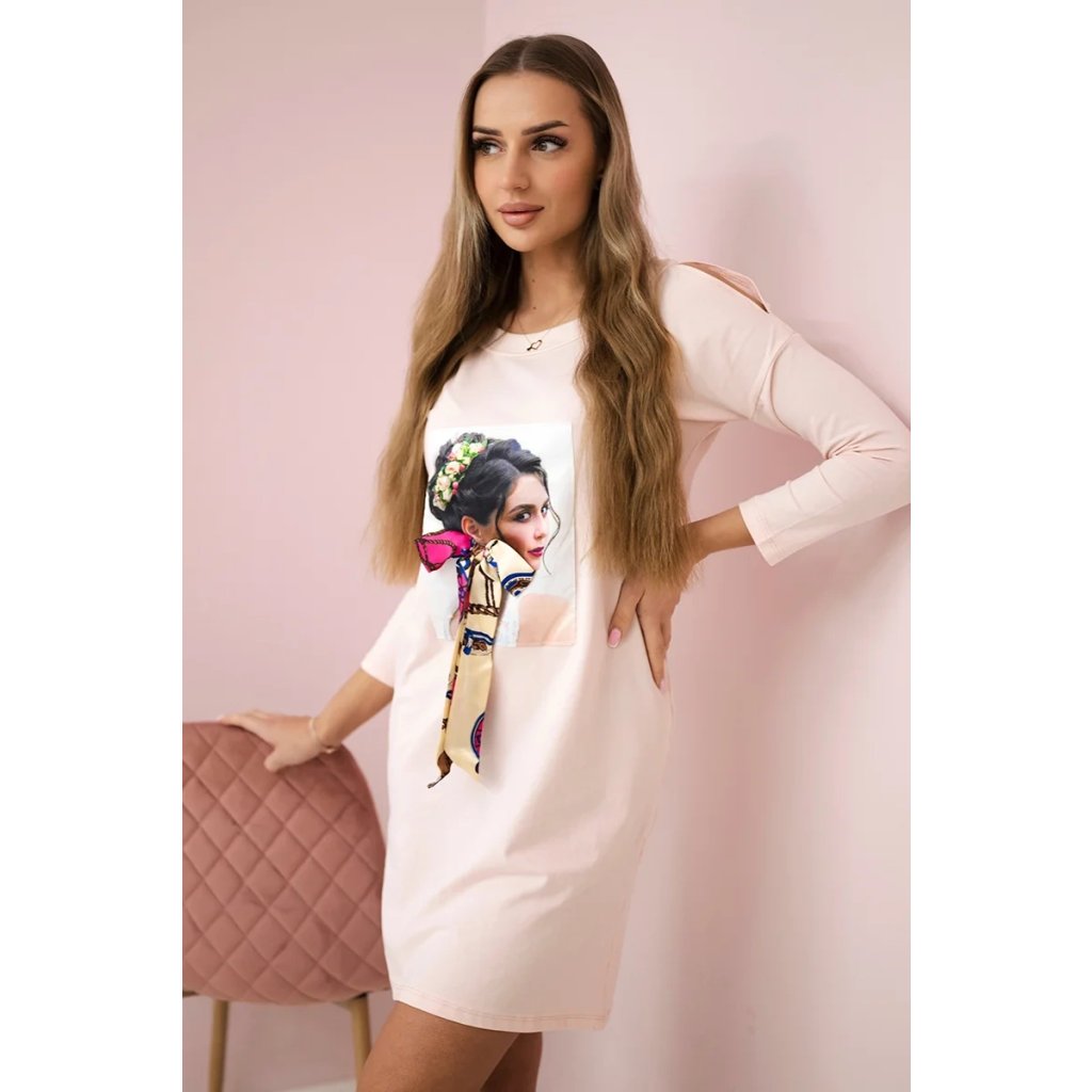 Predstavujeme Vám módne šaty. Šaty majú našitú grafiku s farebnou mašľou. Šaty s rozstrihmi na pleciach. Ideálna ponuka na každý deň. Šaty sú vyrobené z vysoko kvalitného materiálu. Veľkosť je univerzálna a bude vhodná pre dámy nosiace veľkosť S, M alebo L.