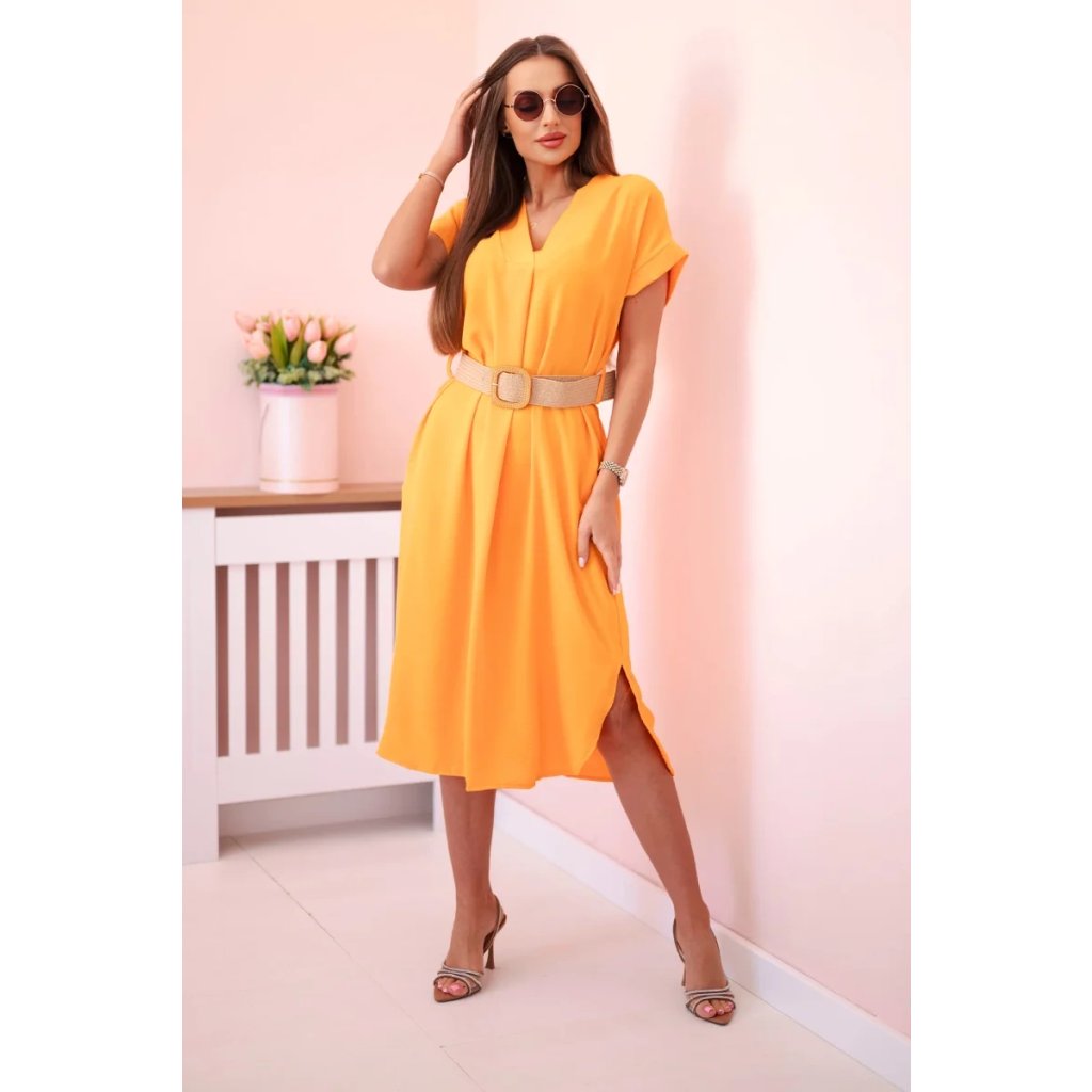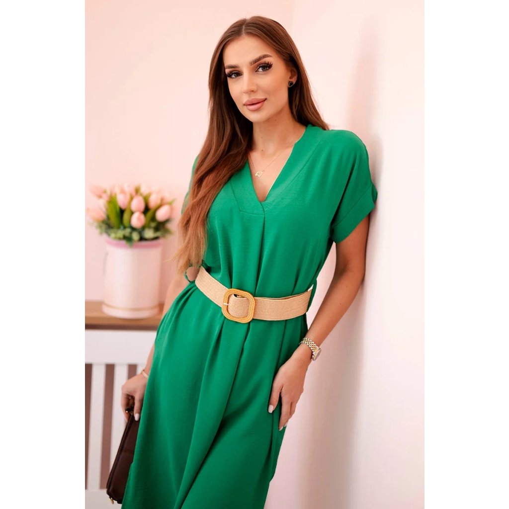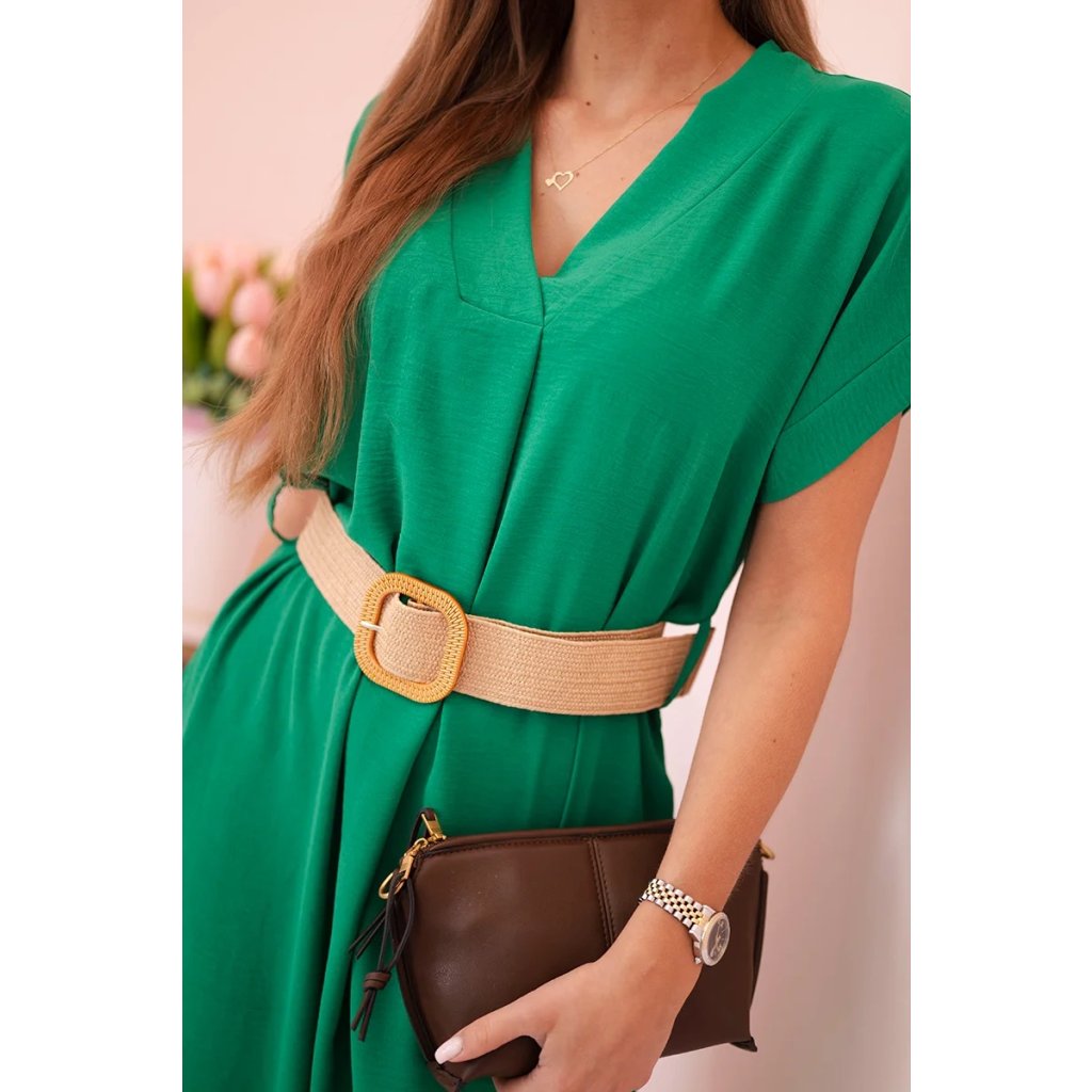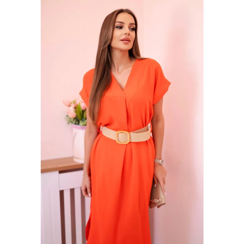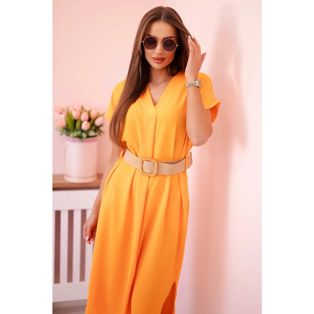 Predstavujeme vám pohodlné šaty s ozdobným opaskom. Šaty majú na dolnom okraji rozparky na bokoch. Šaty sú vyrobené z vysokokvalitného materiálu. Veľmi zaujímavá ponuka pre všetky dámy. Veľkosť je univerzálna a bude vhodná pre dámy nosiace veľkosť S, M alebo L.