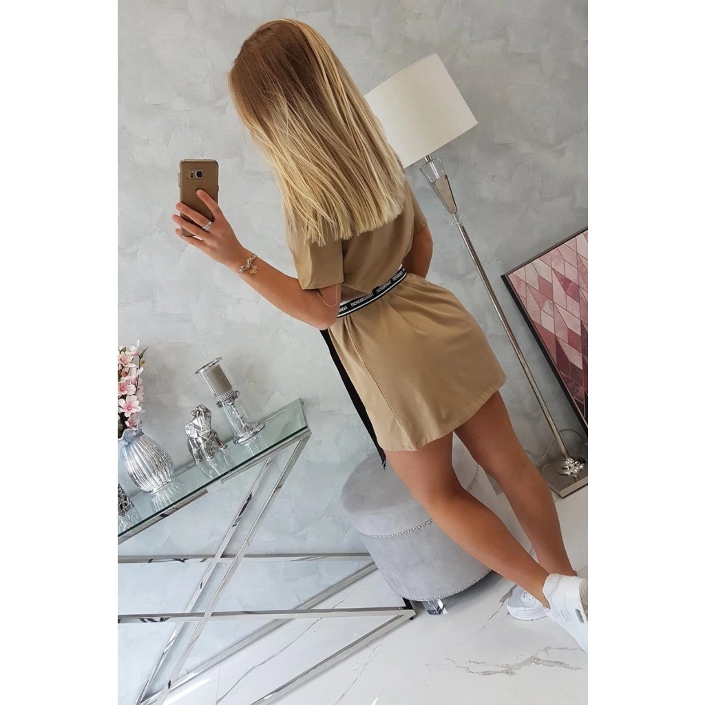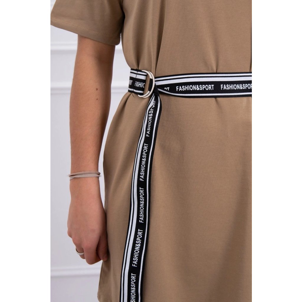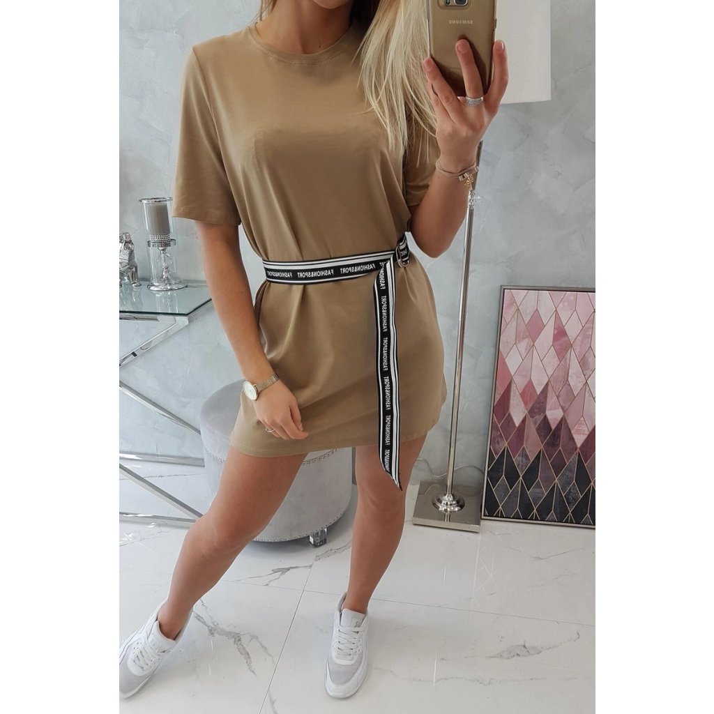 Šaty s ozdobným opaskom v ťavej farbe