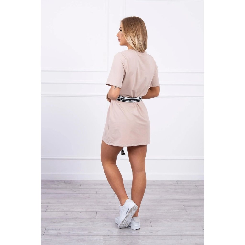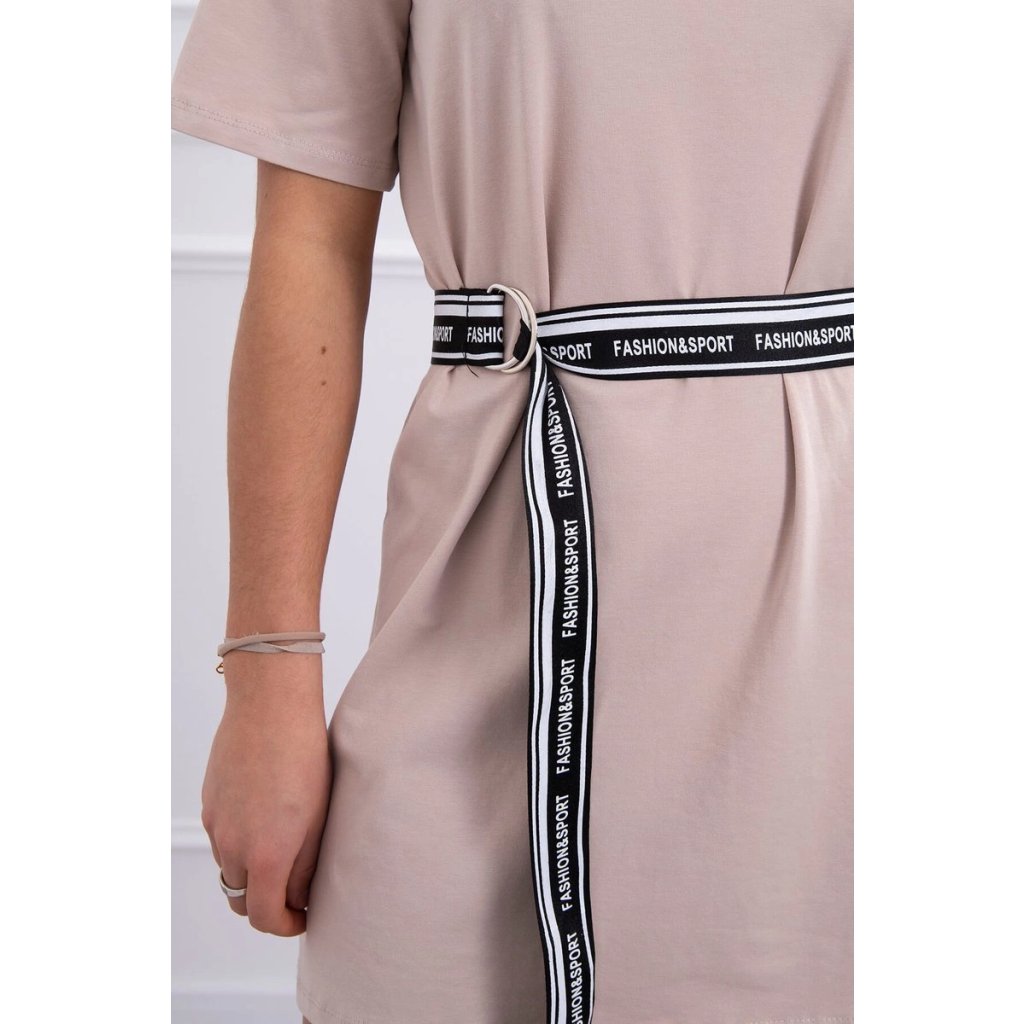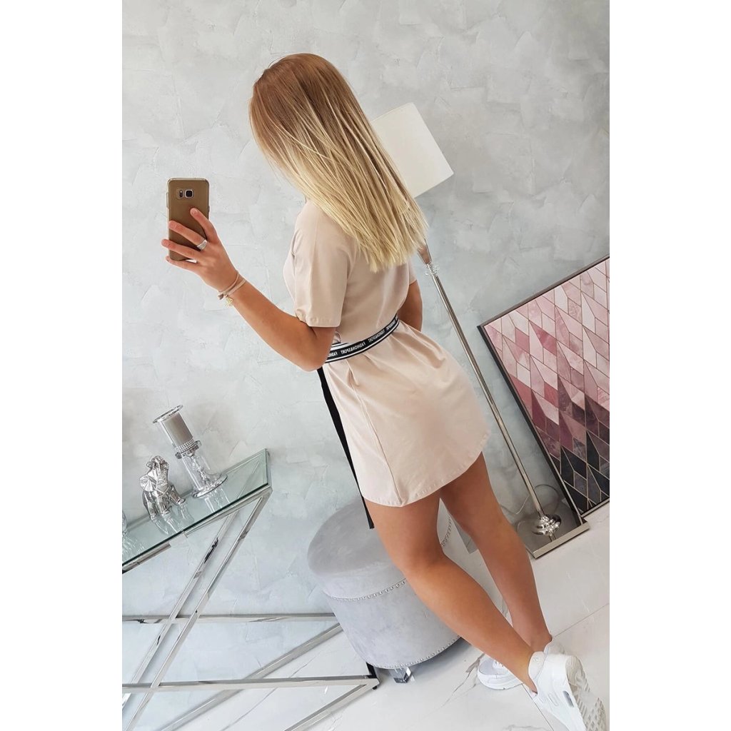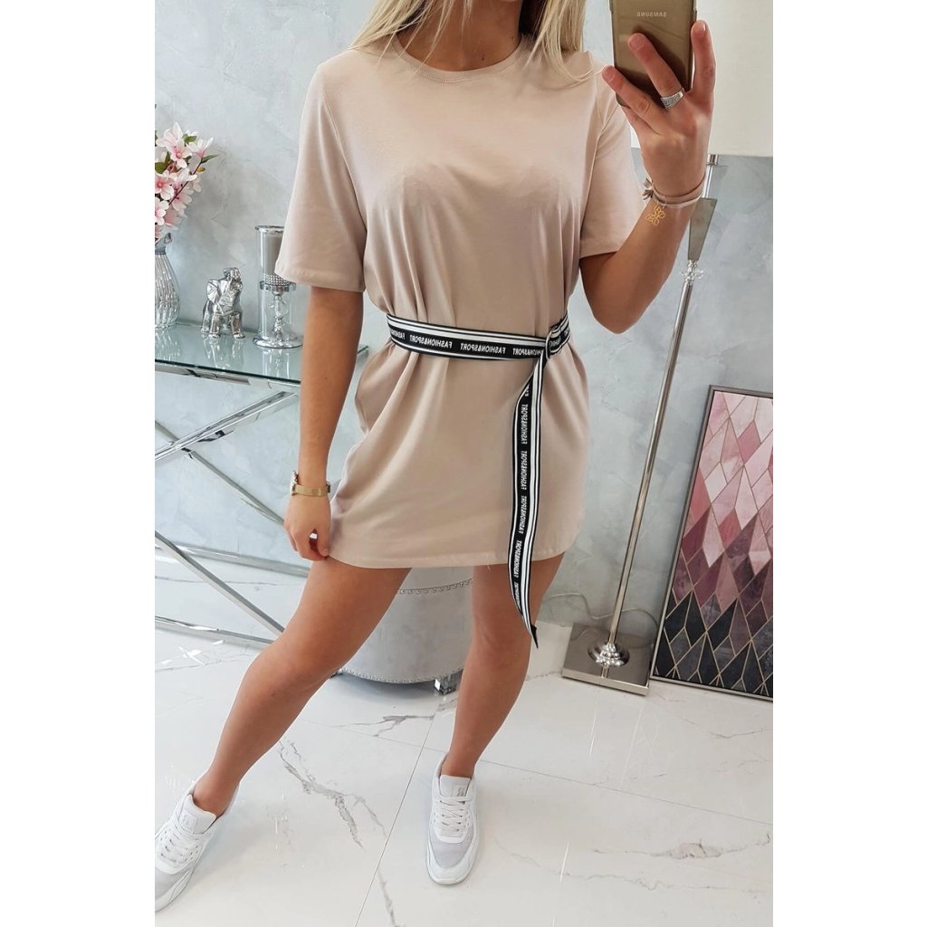 Šaty s ozdobným opaskom v ťavej farbe