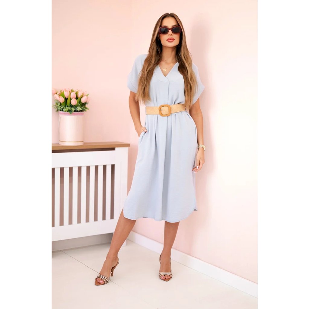 Predstavujeme Vám pohodlné šaty s ozdobným pásom. Šaty majú na dolnej časti rozparky po bokoch. Šaty sú vyrobené z vysokokvalitného materiálu. Veľmi zaujímavý návrh pre všetky dámy. Veľkosť je univerzálna a bude vhodná pre dámy nosiace veľkosť S, M alebo L.