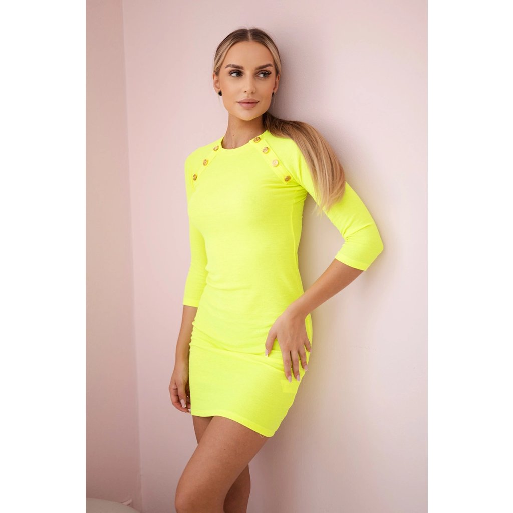 Predstavujeme vám módne šaty. Šaty sú priliehavé, majú dva rady ozdobných gombíkov vpredu. Materiál je rebrovaný, pružný. Vynikajúca ponuka pre všetky dámy. Šaty sú vyrobené z vysokokvalitného materiálu. Veľkosť je univerzálna a bude vhodná pre dámy nosiace veľkosť S, M alebo L.