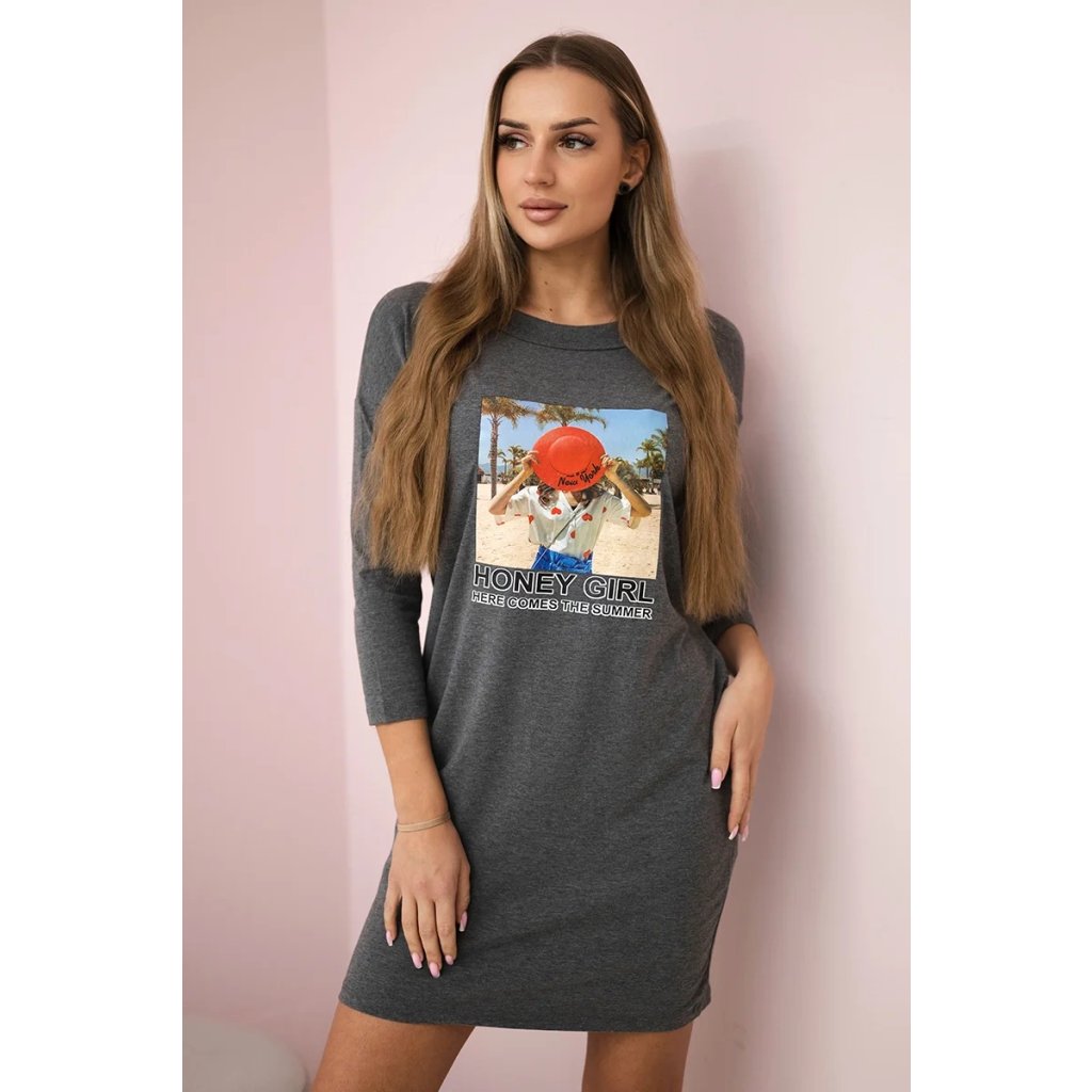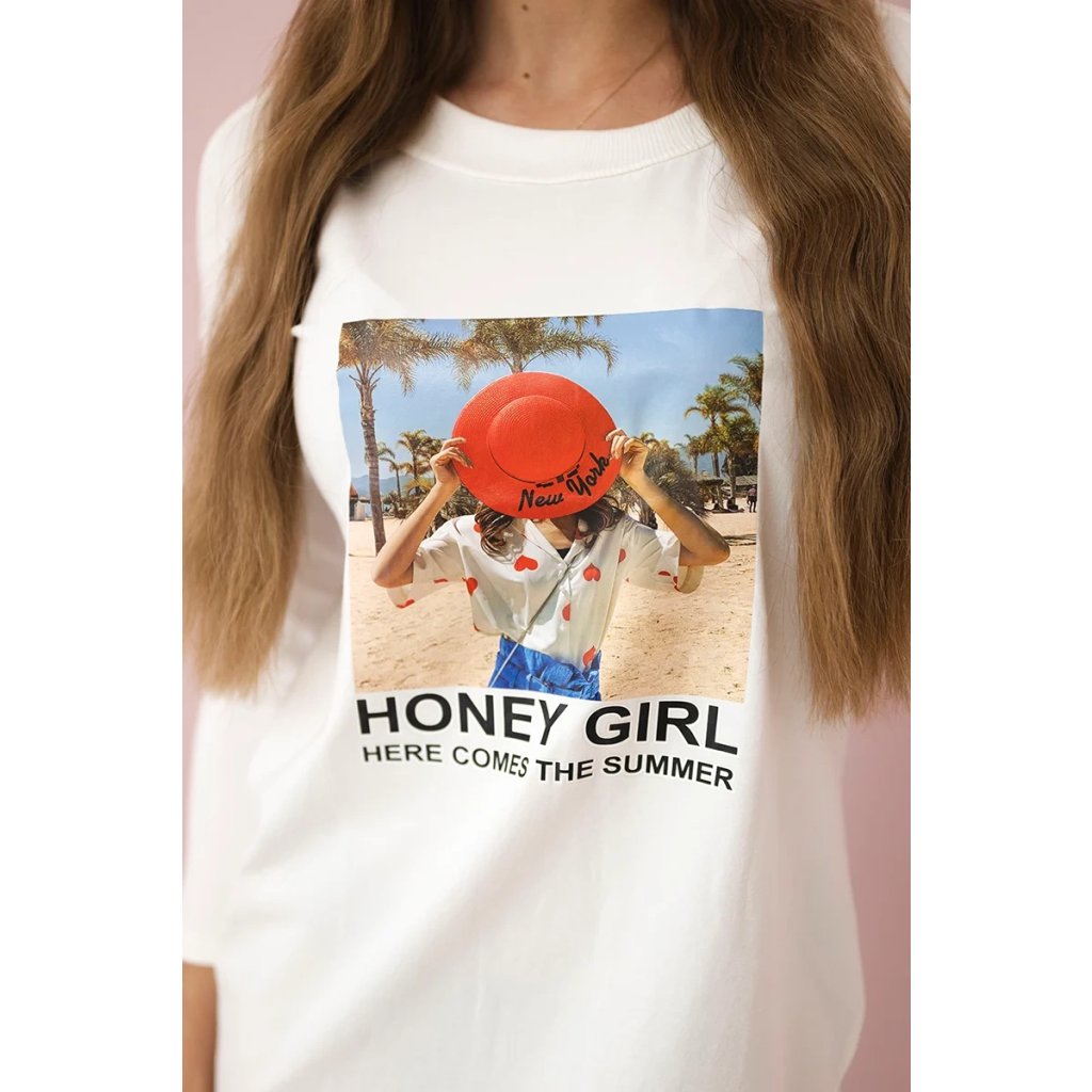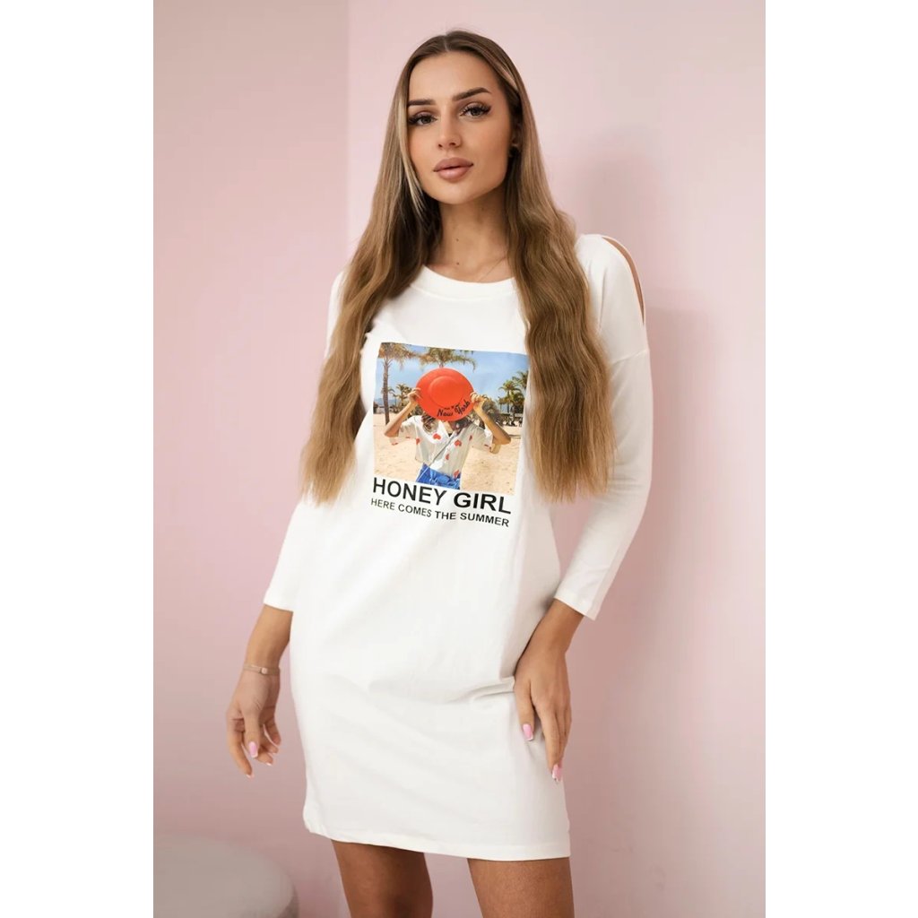 Šaty s potlačou Honey girl ekru