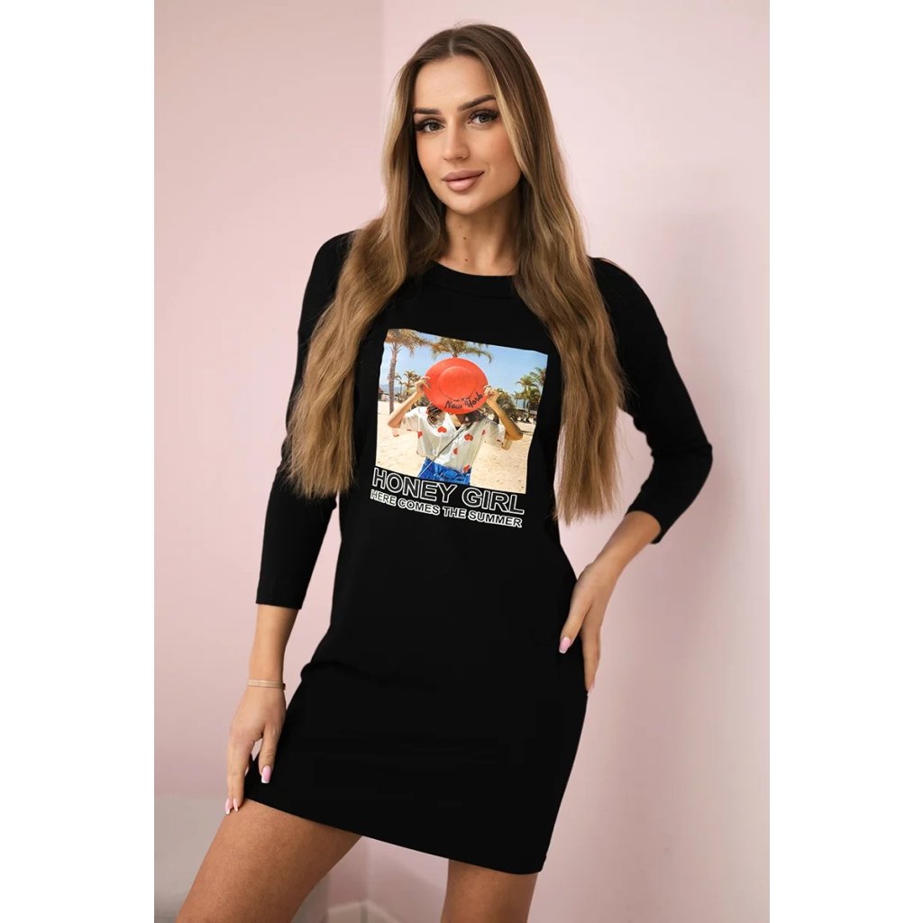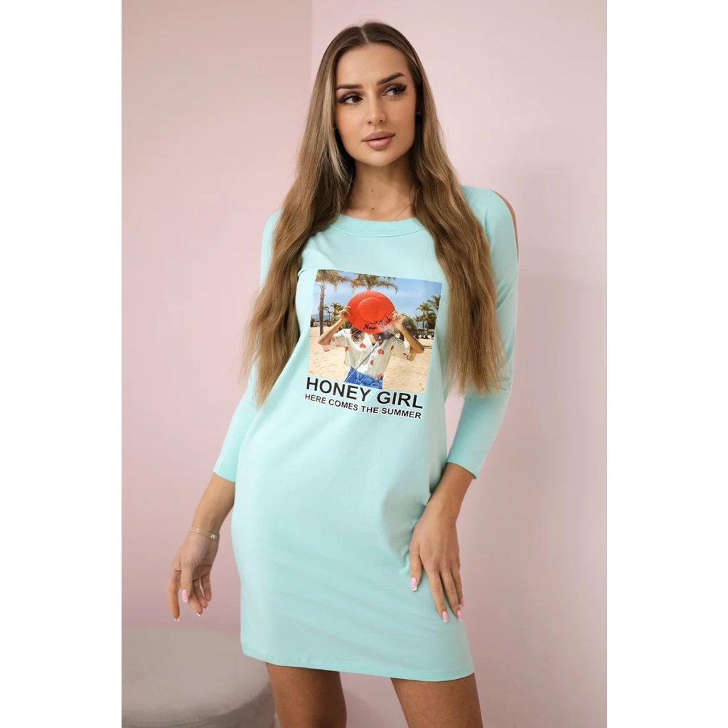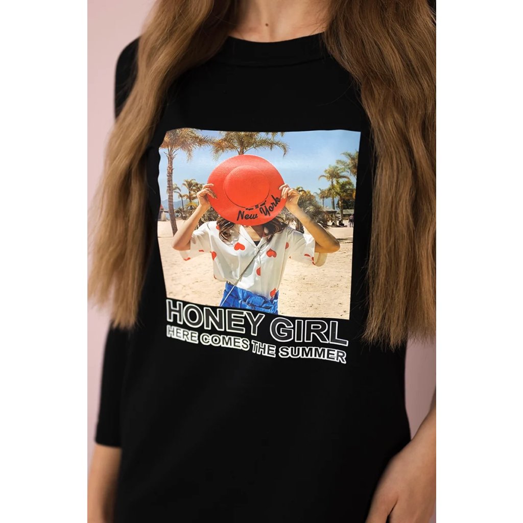 Šaty s potlačou Honey girl ekru