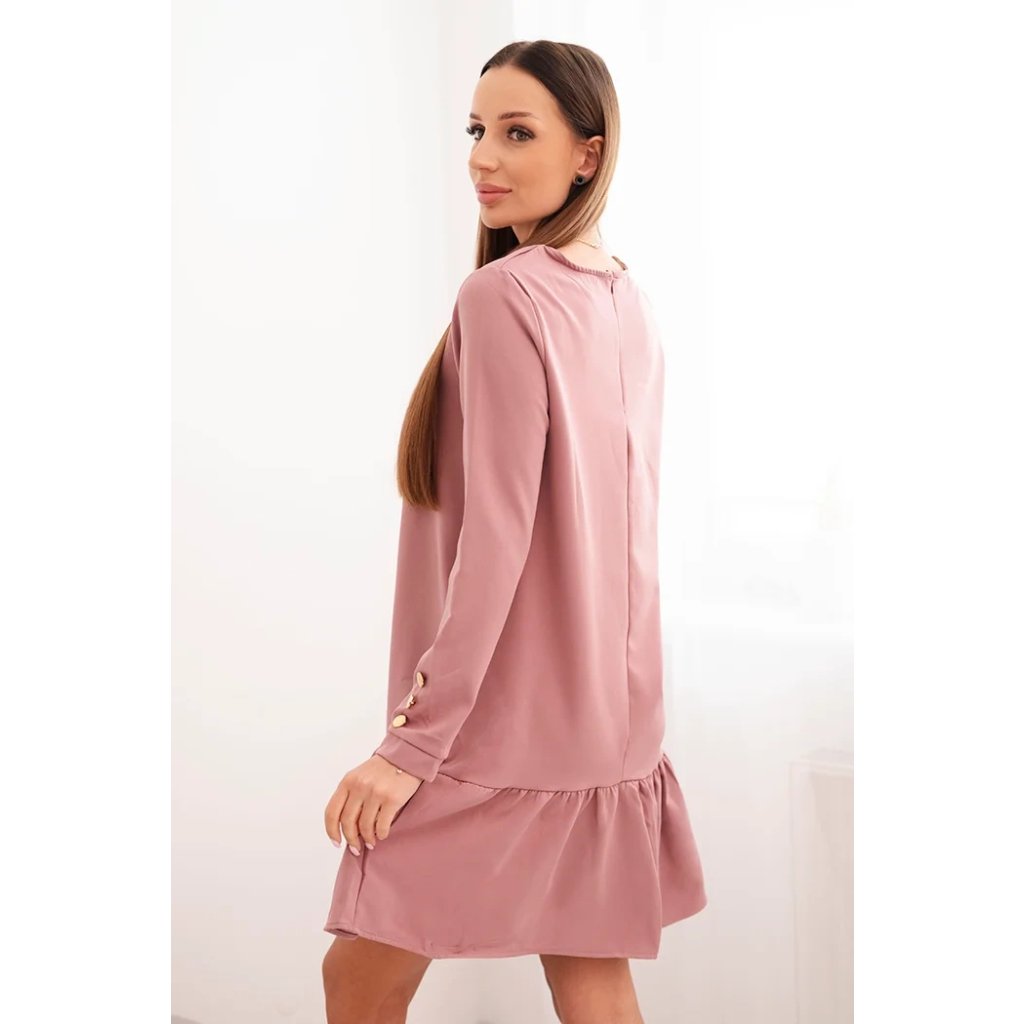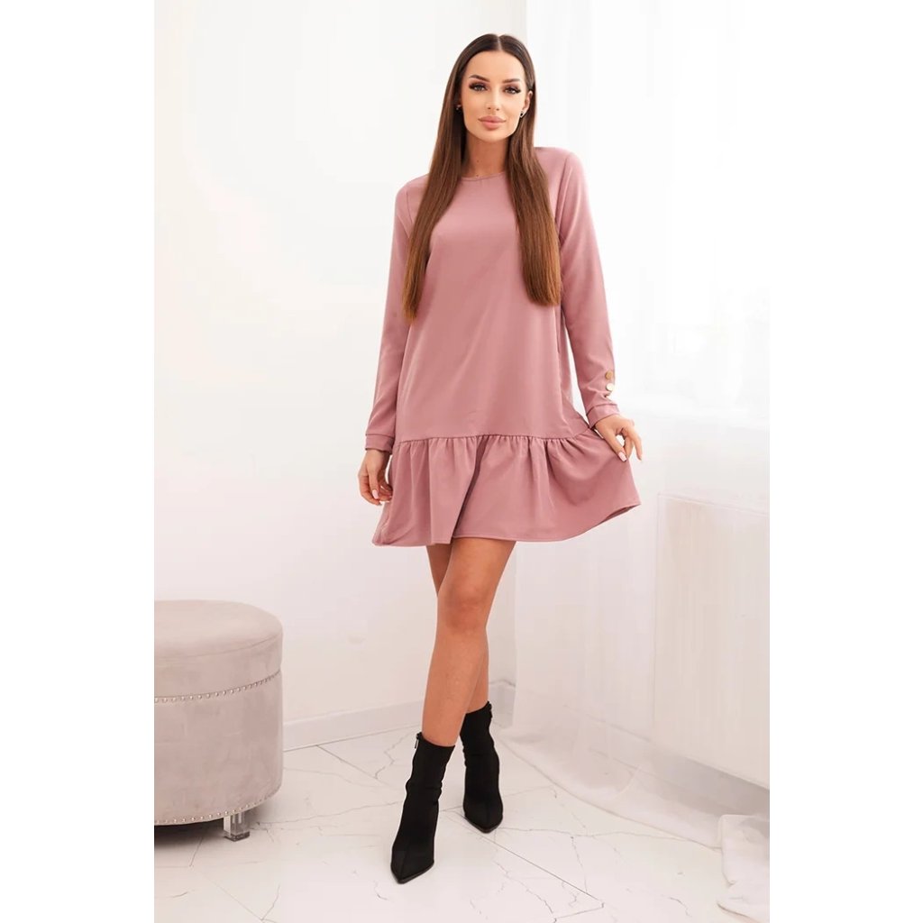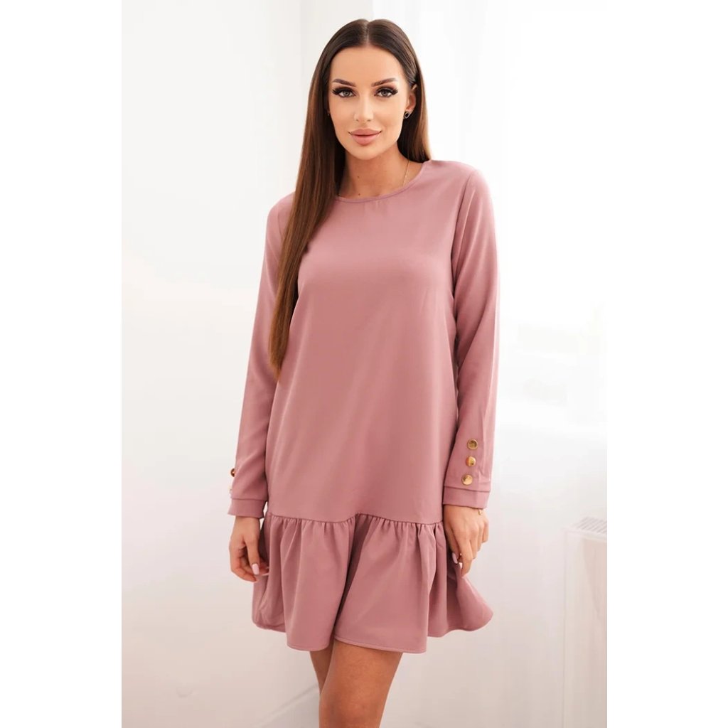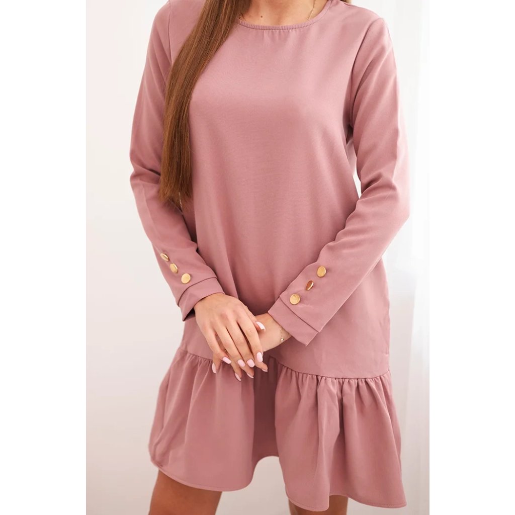 Predstavujeme vám elegantné šaty. Šaty s volánom. Šaty s dlhým rukávom, na rukáve ozdobné zlaté gombíky. Šaty sú vyrobené z vysokokvalitného materiálu. Veľkosť je univerzálna a bude vhodná pre ženy s veľkosťou S, M alebo L.