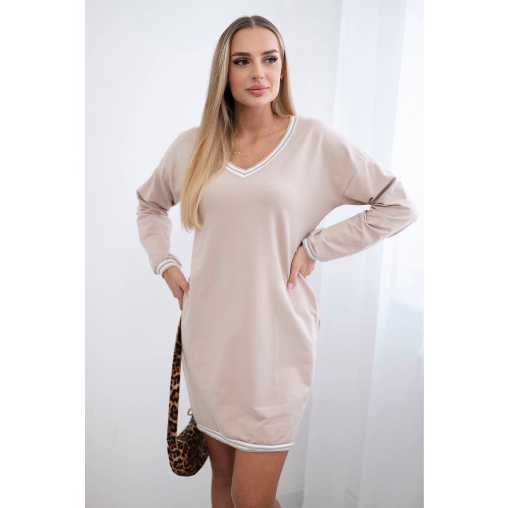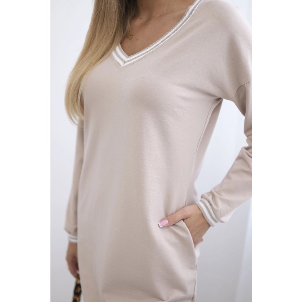 Šaty s vreckami a výstrihom do V béžové