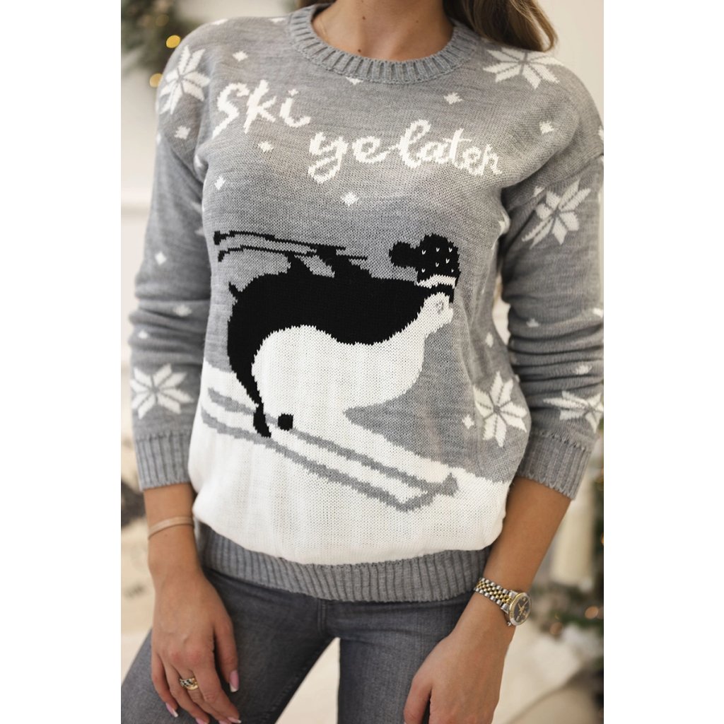 Sivý sveter s vianočným motívom