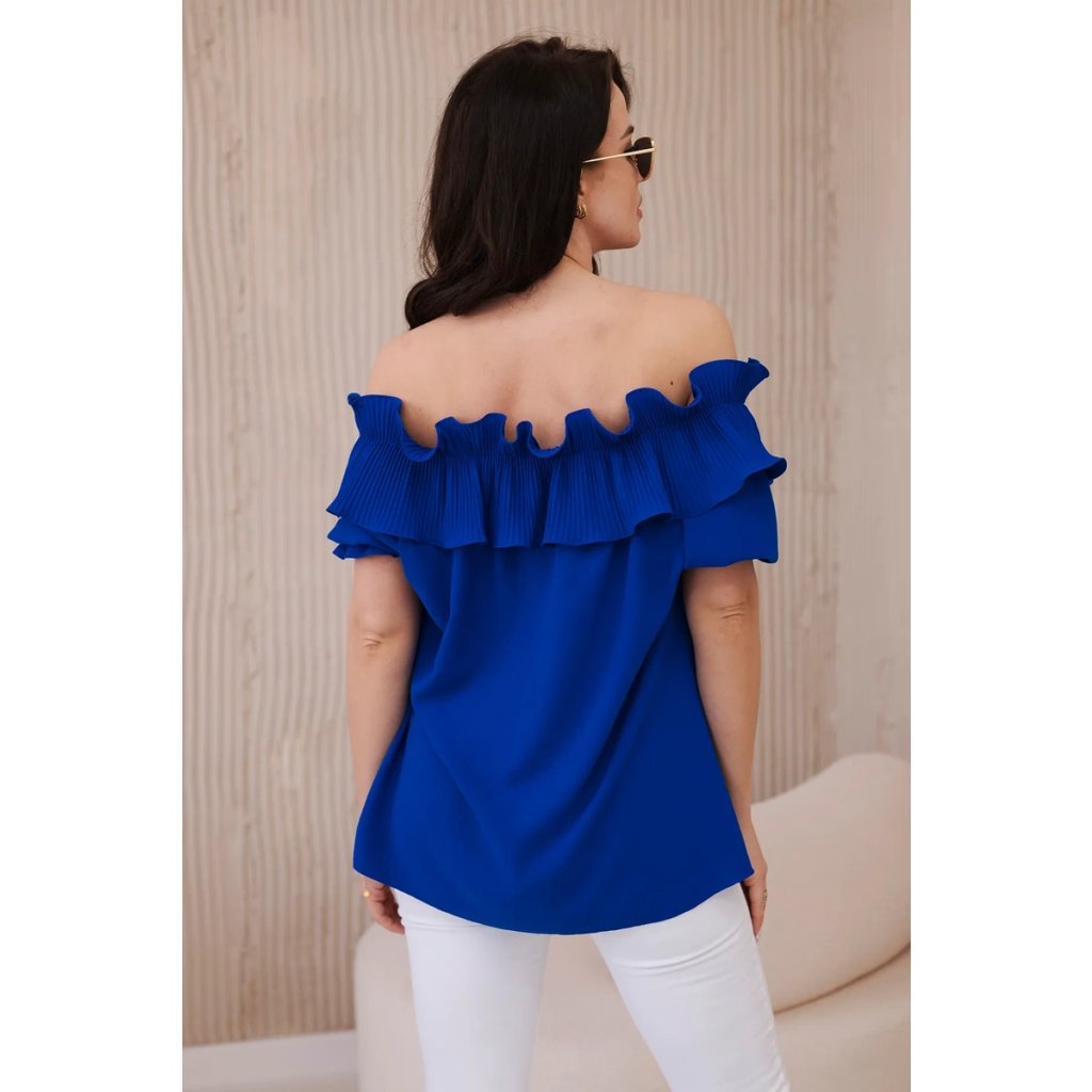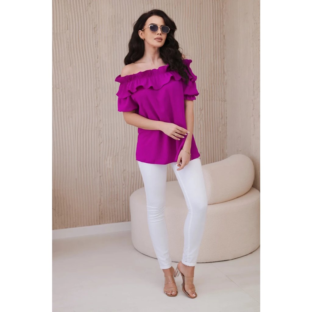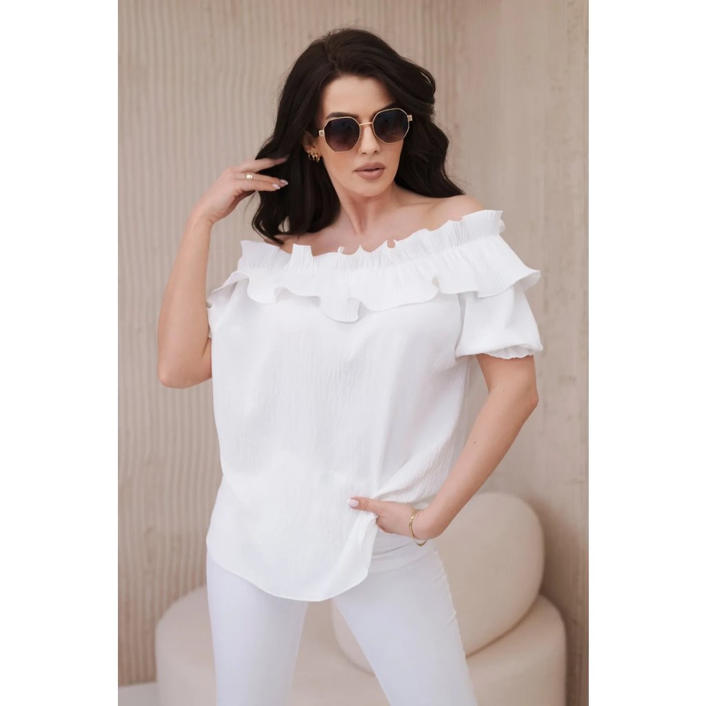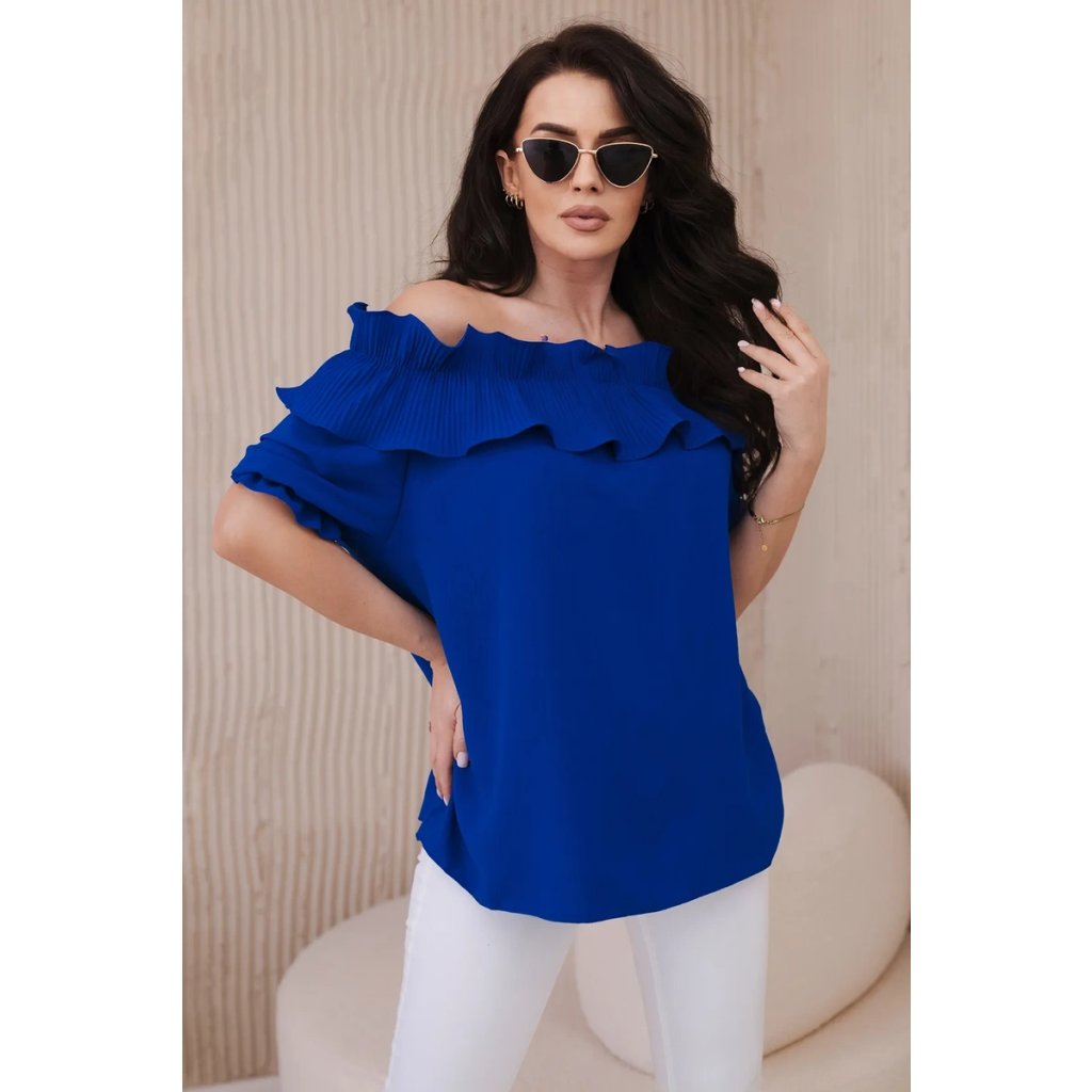 Objavte romantickú eleganciu v našej blúzke s roztomilým ozdobným volánom. Táto blúzka je spojením jemnosti a sofistikovaného štýlu, ktoré vám umožní cítiť sa ako skutočná kráľovná. Vyrobená z vysoko kvalitných materiálov, poskytuje nielen pohodlie, ale aj vynikajúcu prezentáciu. Ozdobný volán pridáva jemnú finesu a nežnosť, vytvárajúc pôsobivý akcent na každej postave. S krátkymi rukávmi a klasickým dekoltom v štýle Carmen je ideálna na večerné výjazdy či romantické stretnutia. Dostupná v rôznych farbách, aby ste mohli vyjadriť svoj osobný štýl. Veľkosť je univerzálna a bude vhodná pre dámy, ktoré nosia veľkosť S, M alebo L.