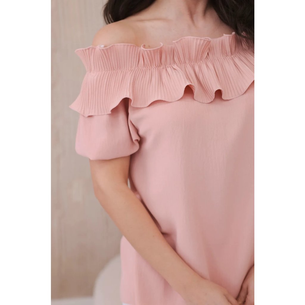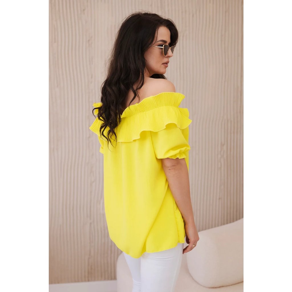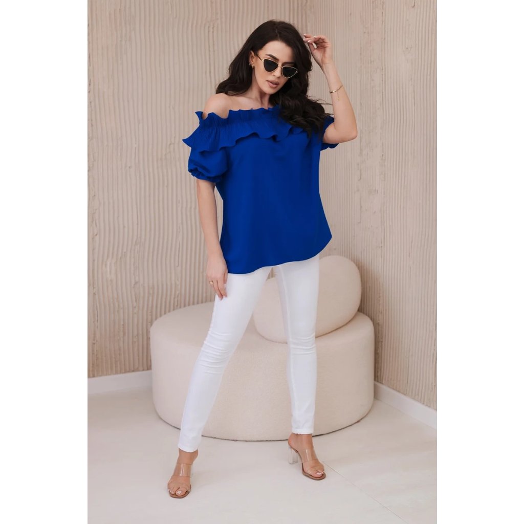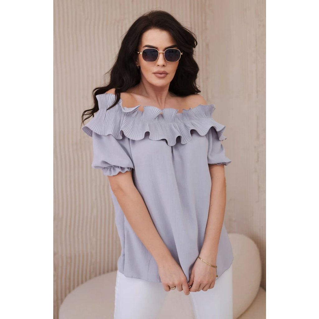 Objavte romantickú eleganciu v našej blúzke s roztomilým ozdobným volánom. Táto blúzka je spojením jemnosti a sofistikovaného štýlu, ktoré vám umožní cítiť sa ako skutočná kráľovná. Vyrobená z vysoko kvalitných materiálov, poskytuje nielen pohodlie, ale aj vynikajúcu prezentáciu. Ozdobný volán pridáva jemnú finesu a nežnosť, vytvárajúc pôsobivý akcent na každej postave. S krátkymi rukávmi a klasickým dekoltom v štýle Carmen je ideálna na večerné výjazdy či romantické stretnutia. Dostupná v rôznych farbách, aby ste mohli vyjadriť svoj osobný štýl. Veľkosť je univerzálna a bude vhodná pre dámy, ktoré nosia veľkosť S, M alebo L.