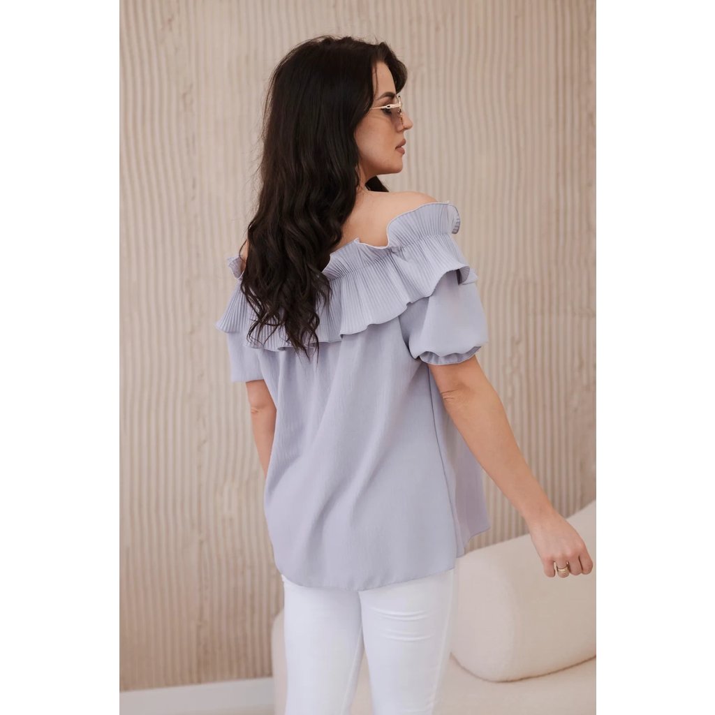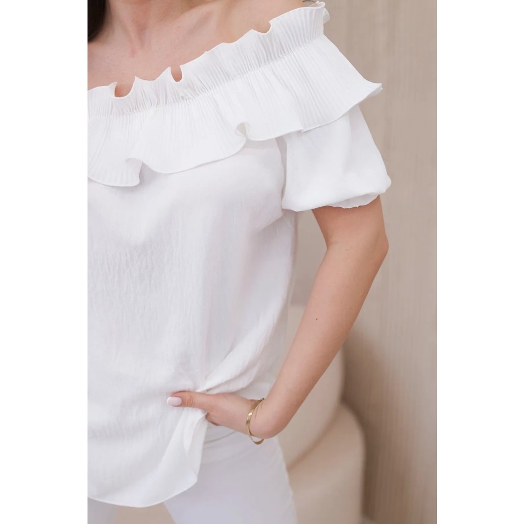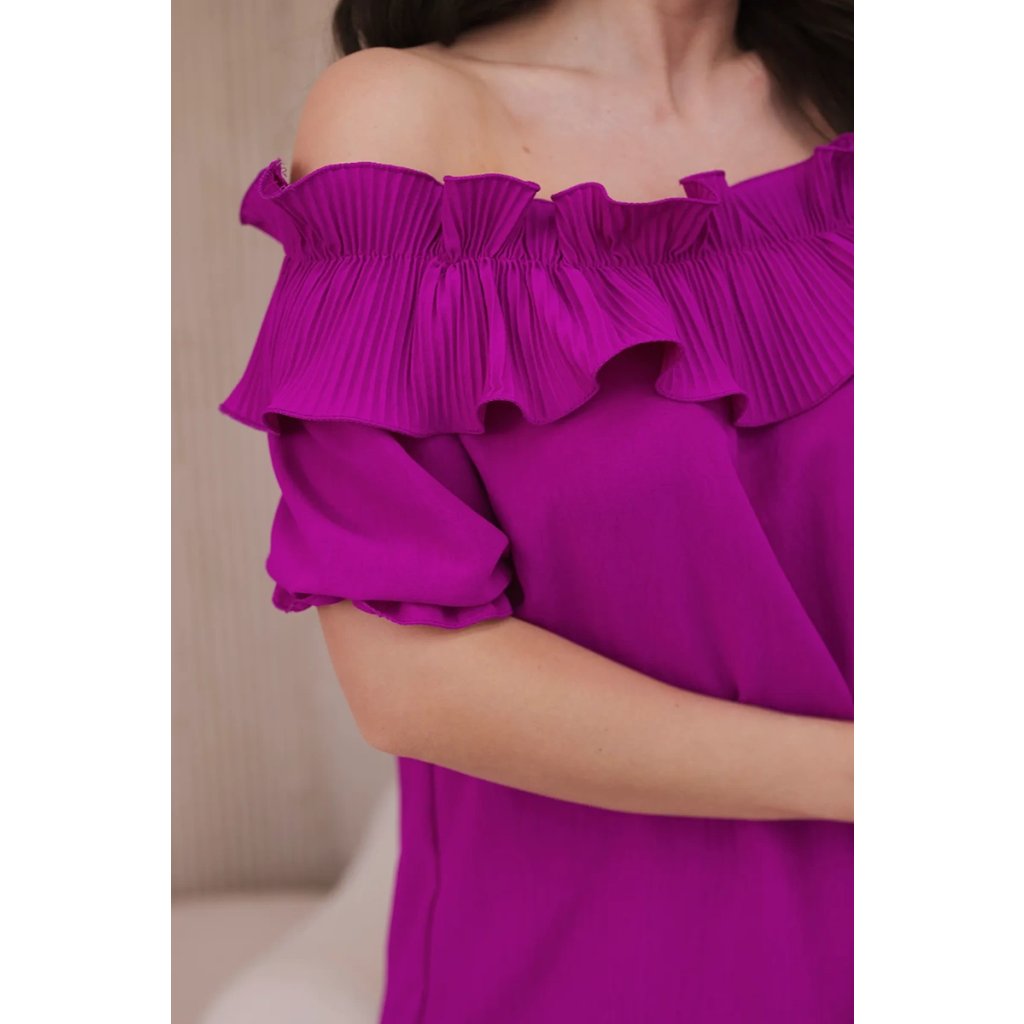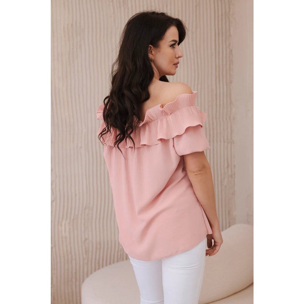 Objavte romantickú eleganciu v našej blúzke s roztomilým ozdobným volánom. Táto blúzka je spojením jemnosti a sofistikovaného štýlu, ktoré vám umožní cítiť sa ako skutočná kráľovná. Vyrobená z vysoko kvalitných materiálov, poskytuje nielen pohodlie, ale aj vynikajúcu prezentáciu. Ozdobný volán pridáva jemnú finesu a nežnosť, vytvárajúc pôsobivý akcent na každej postave. S krátkymi rukávmi a klasickým dekoltom v štýle Carmen je ideálna na večerné výjazdy či romantické stretnutia. Dostupná v rôznych farbách, aby ste mohli vyjadriť svoj osobný štýl. Veľkosť je univerzálna a bude vhodná pre dámy, ktoré nosia veľkosť S, M alebo L.
