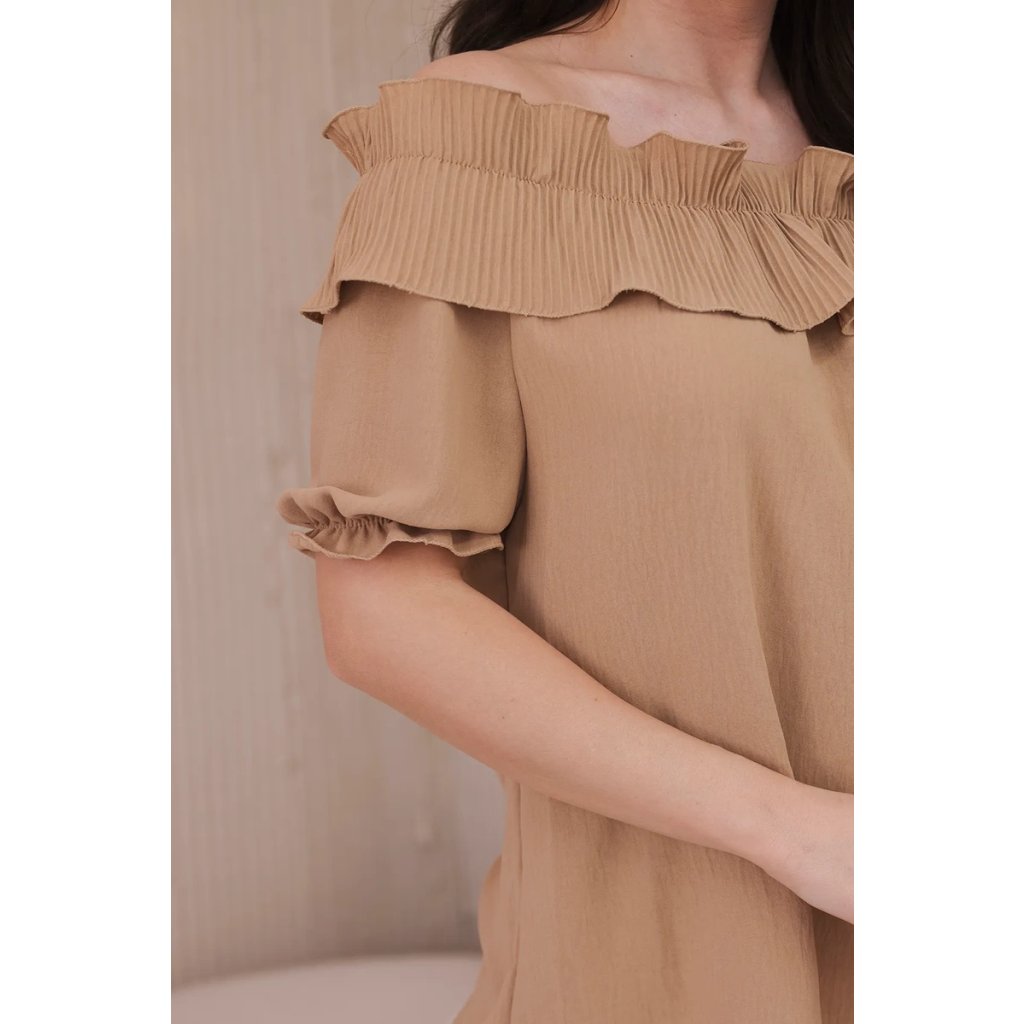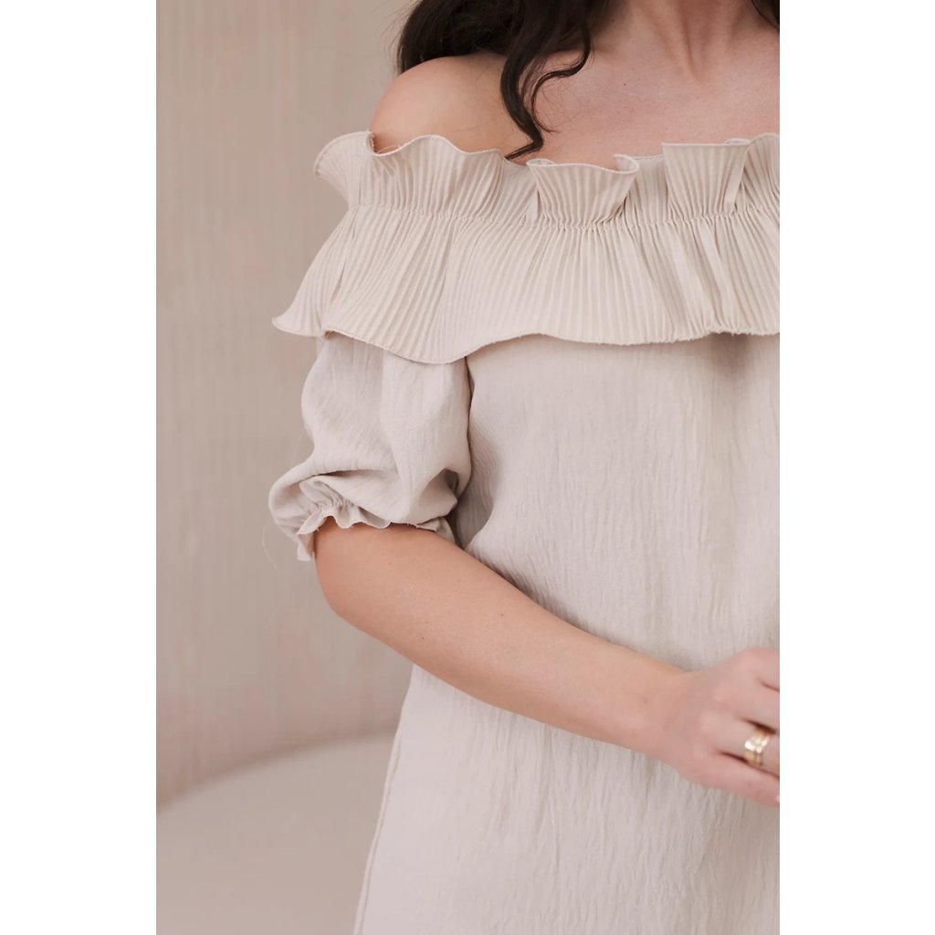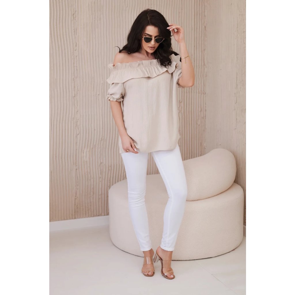Španielska blúzka s ozdobným volánom béžová