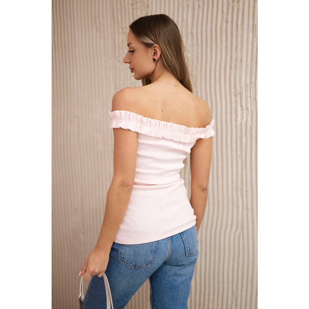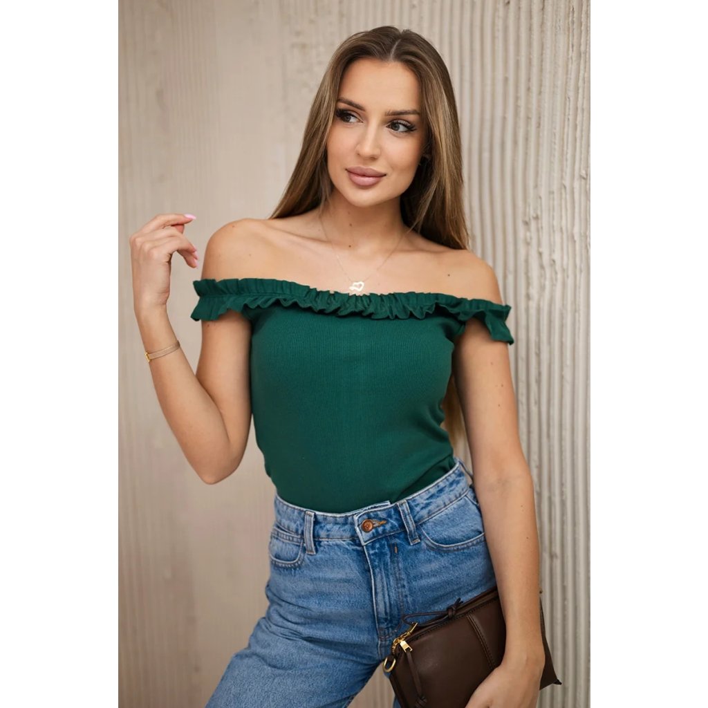 Predstavujeme vám módnu blúzku. Blúzka s odhalenými ramenami, španielskeho typu. Módne volániky. Gumička všitá vo výstrihu. Blúzka je vyrobená z vysoko kvalitného materiálu. Veľkosť je univerzálna a bude vhodná pre dámy nosiace veľkosť S, M alebo L.