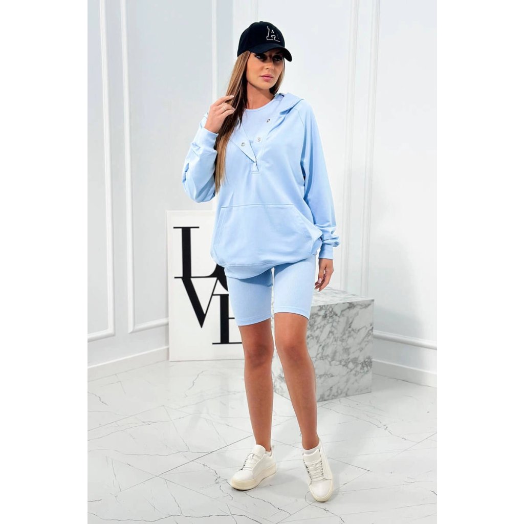 Súprava 3 v 1 mikina, top a krátke legíny svetlomodrá