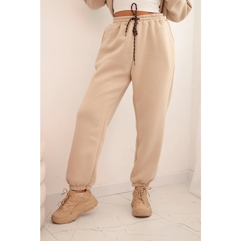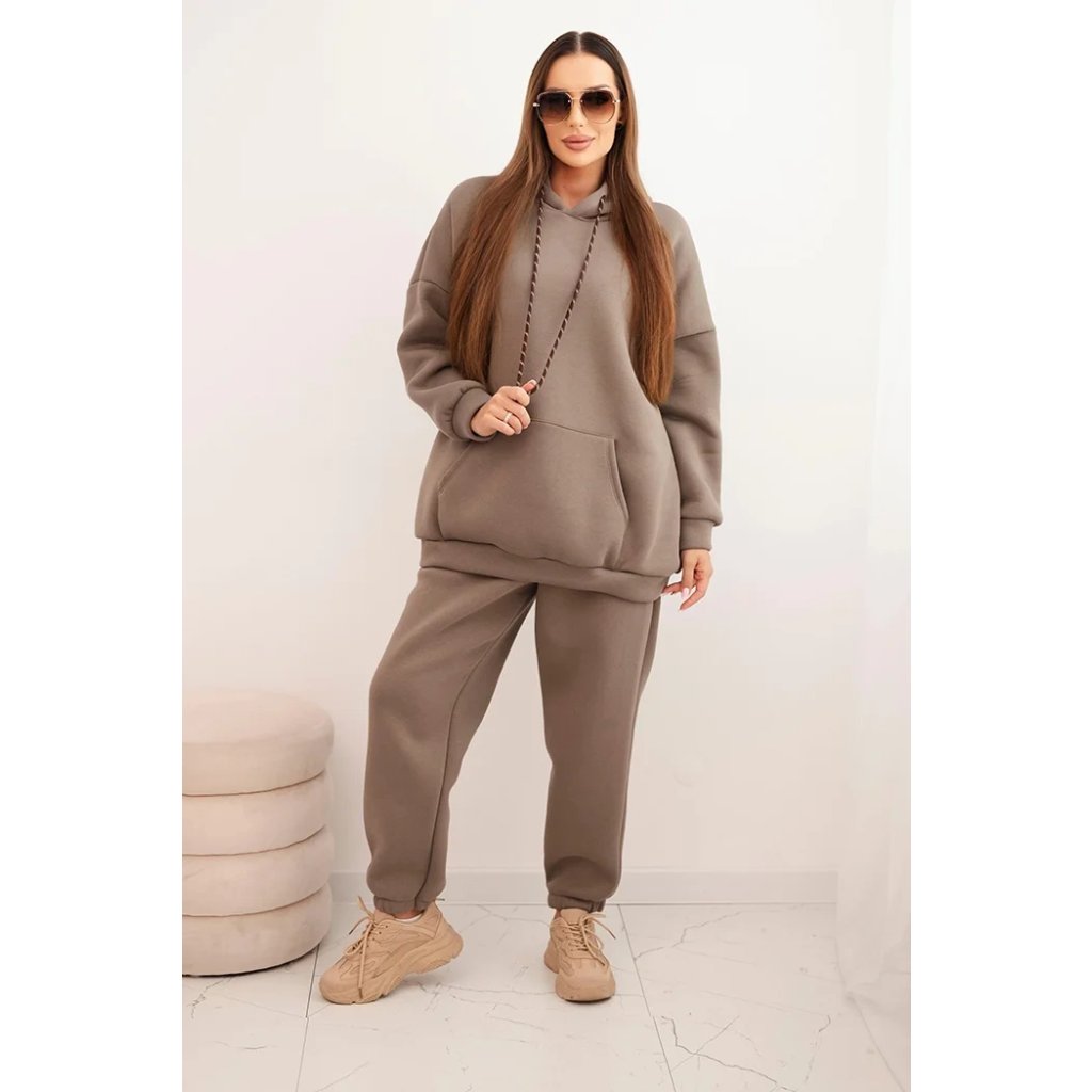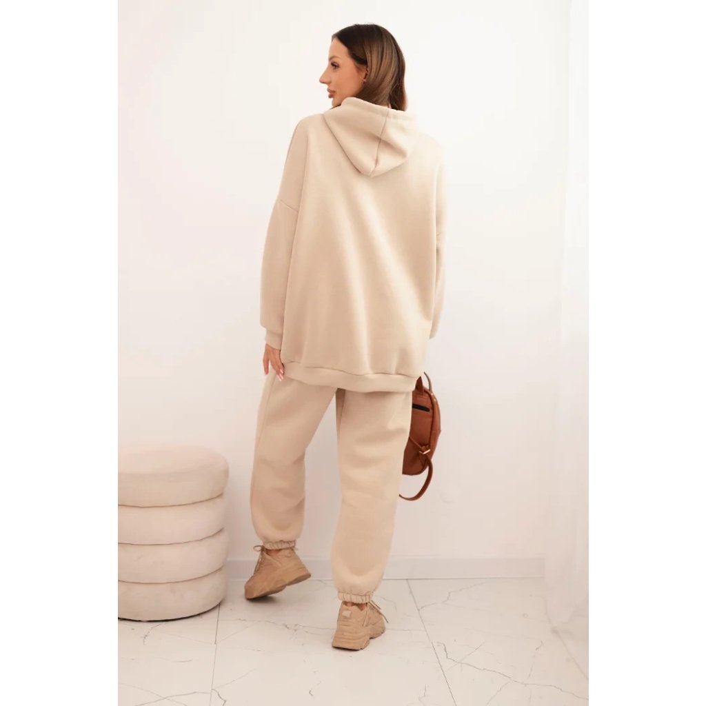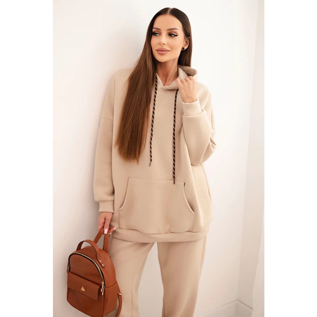 Súprava dámskeho zatepleného dresu z bavlny s kapucňou béžová