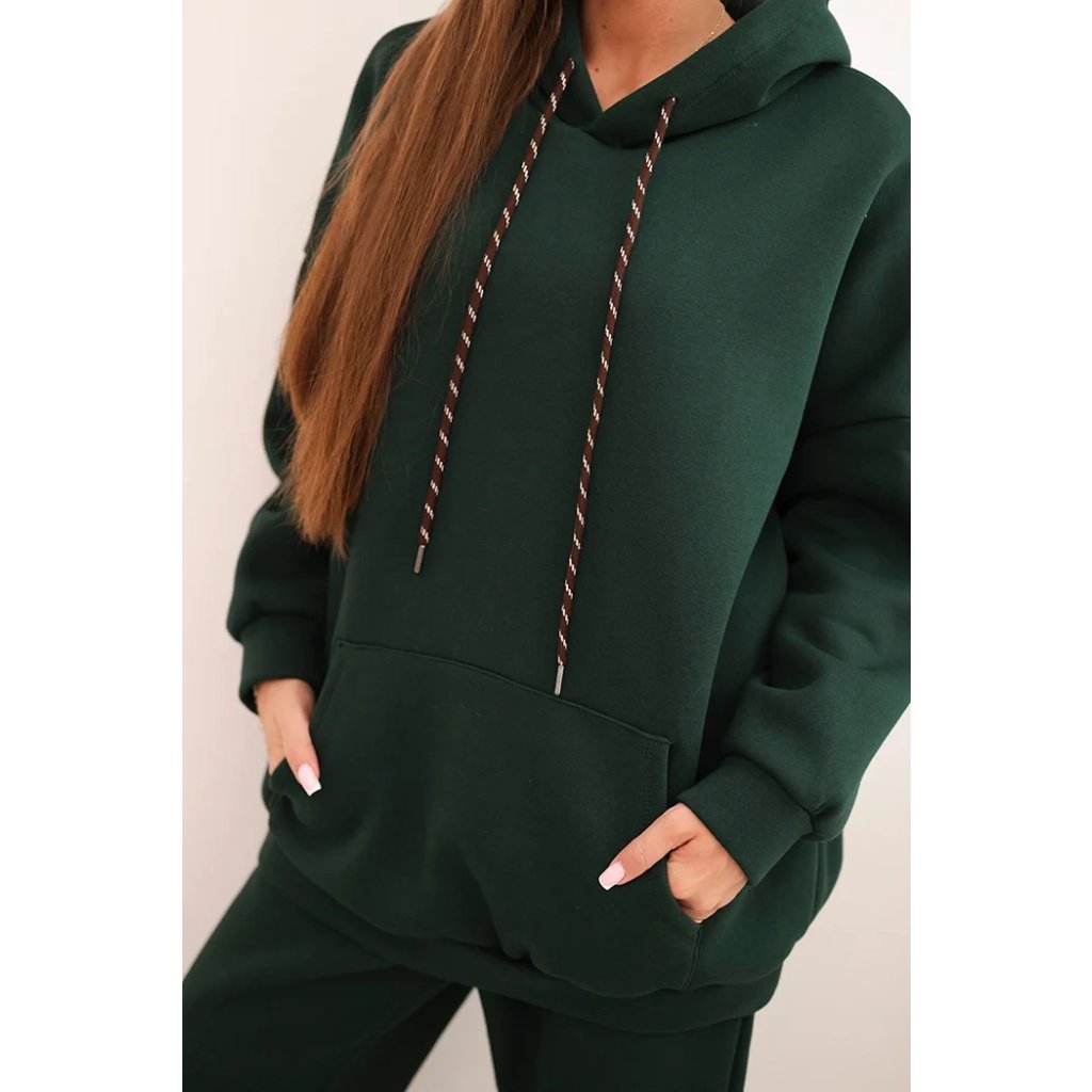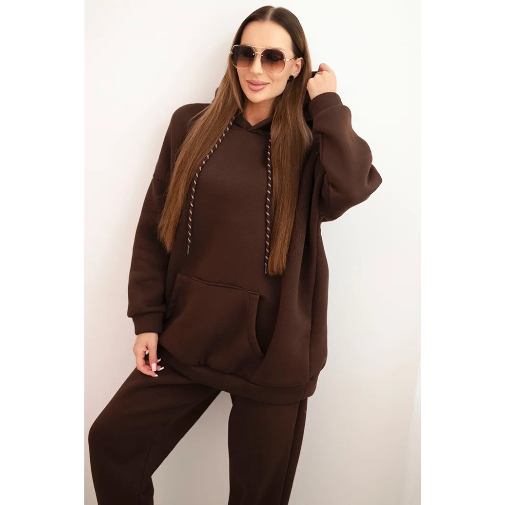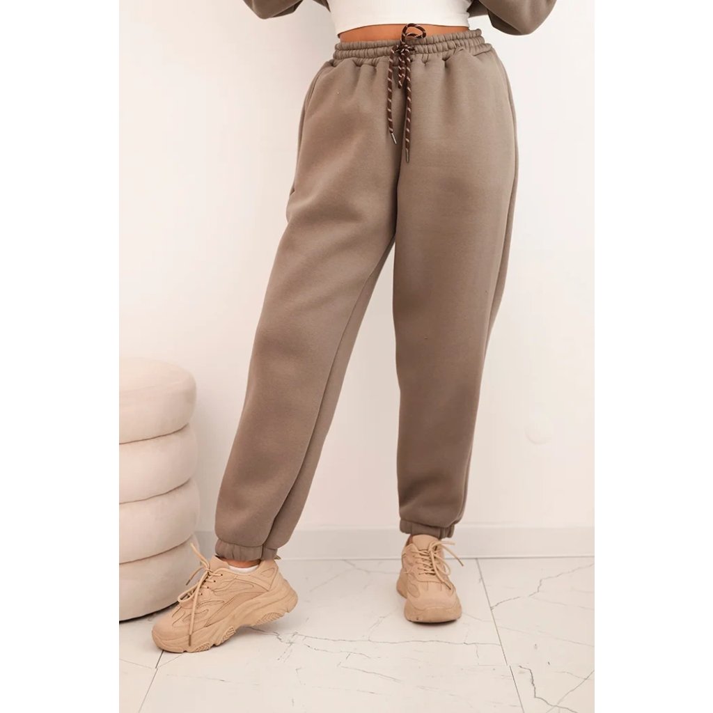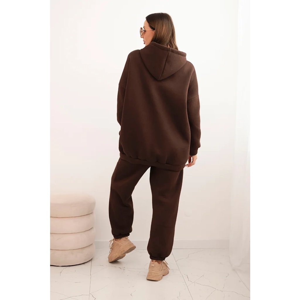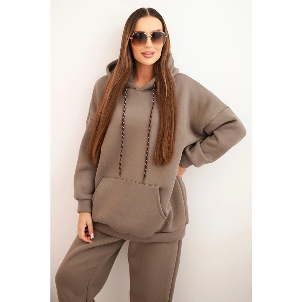 Súprava dámskeho zatepleného dresu z bavlny s kapucňou béžová