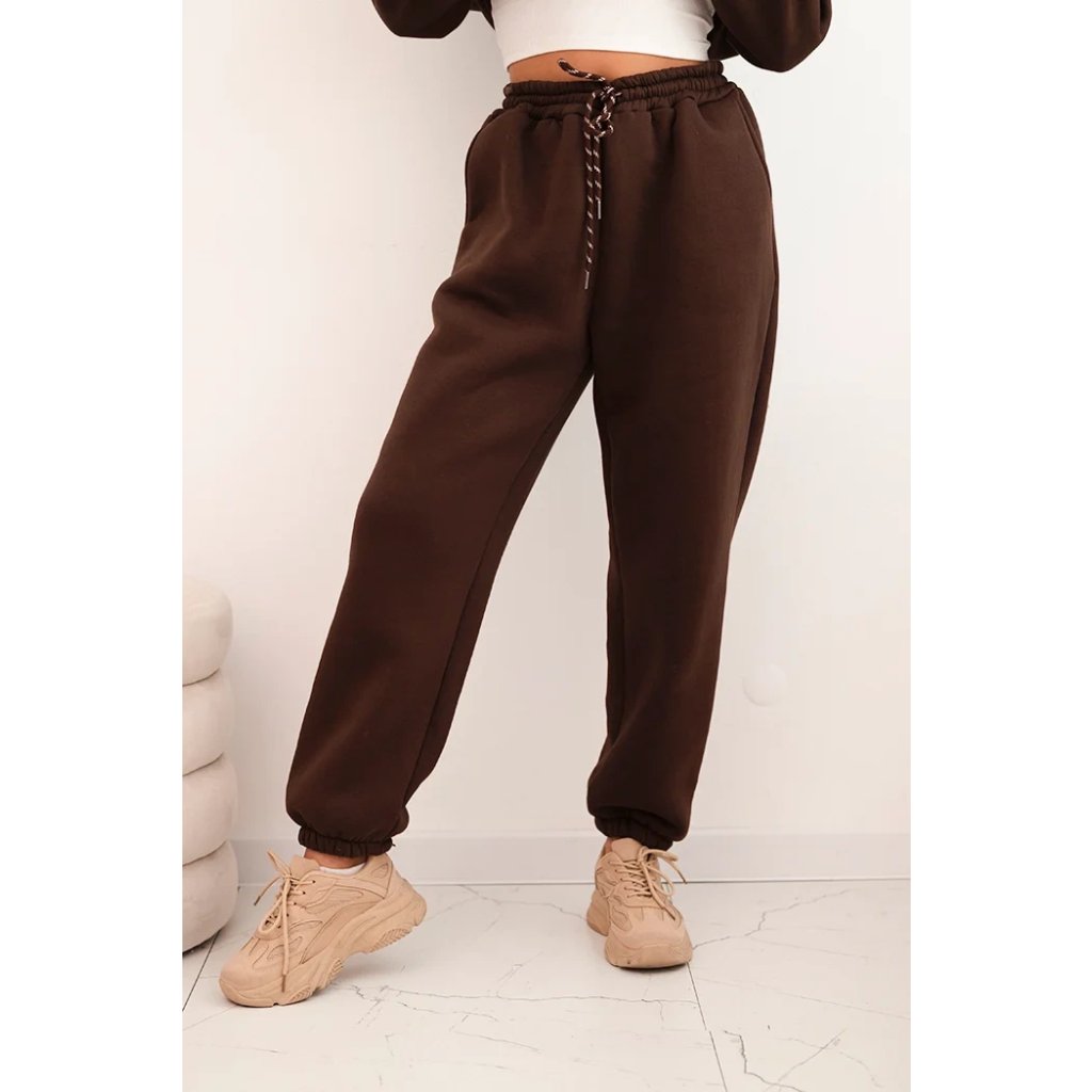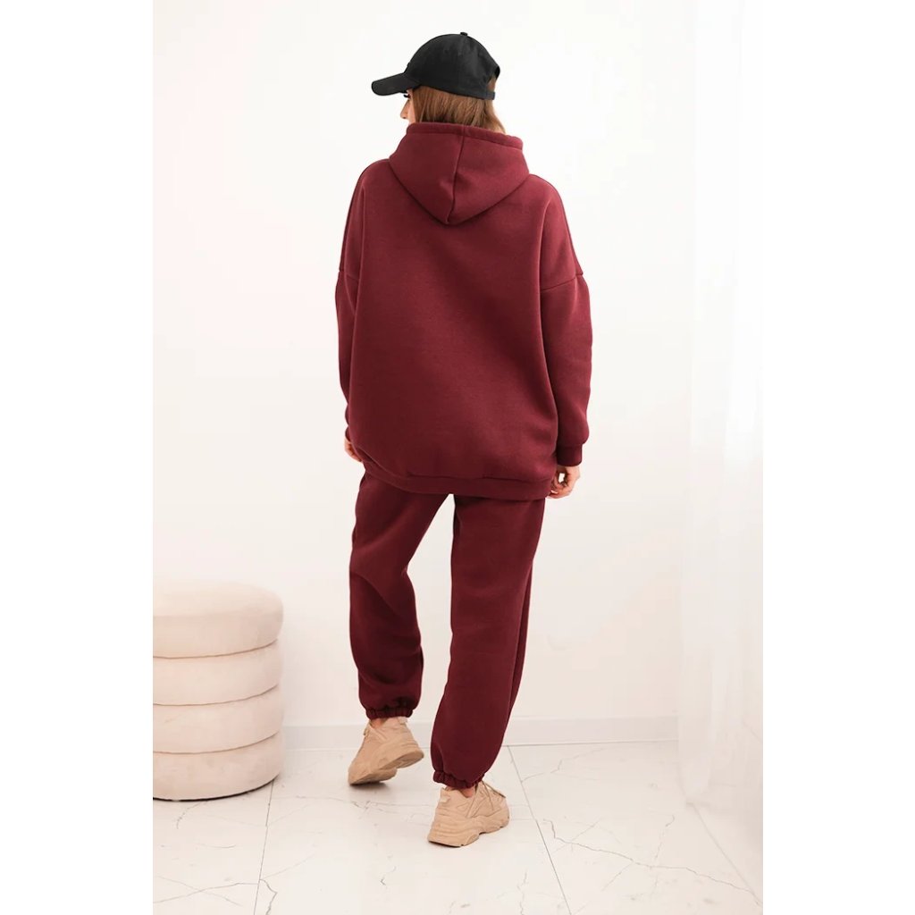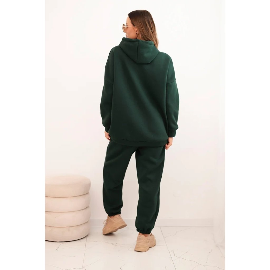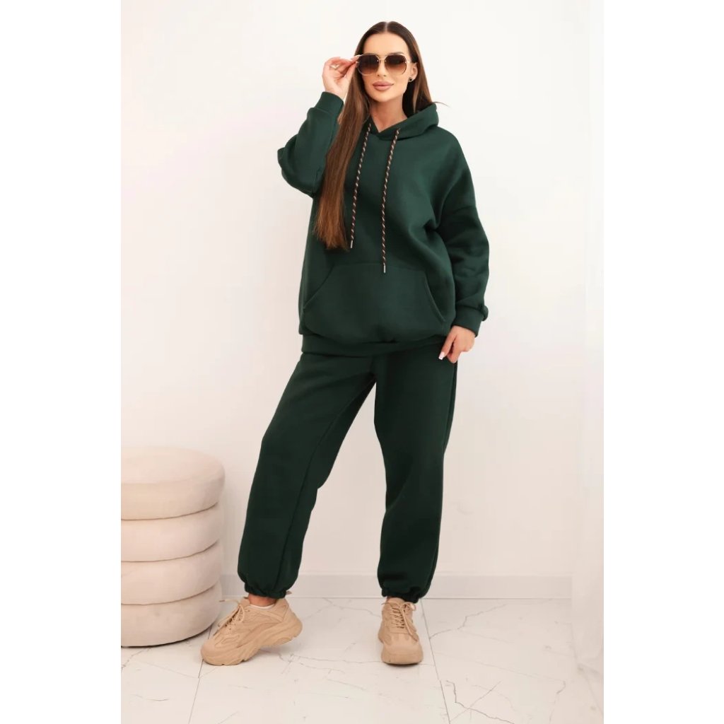 Súprava dámskeho zatepleného dresu z bavlny s kapucňou béžová