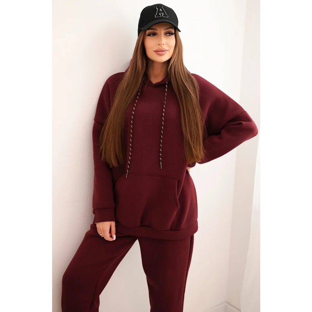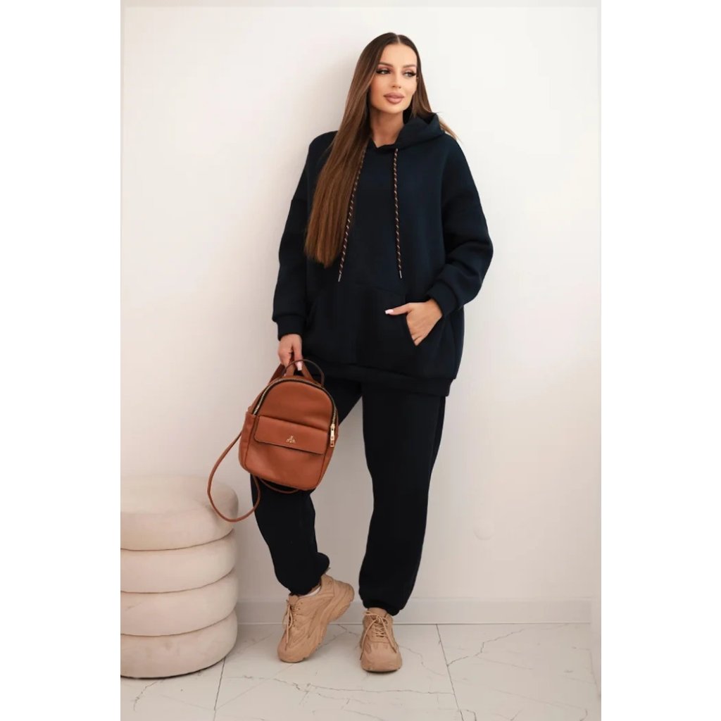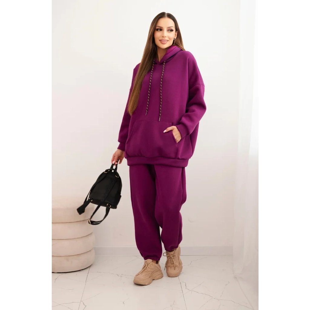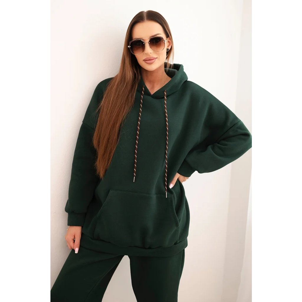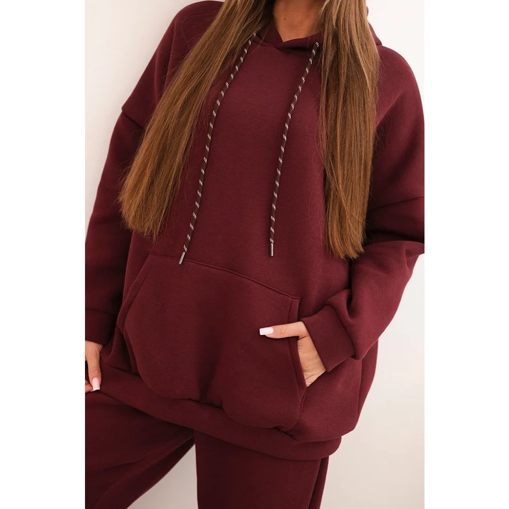 Pohodlná dámska súprava vyrobená z príjemnej bavlnenej látky je ideálnou voľbou na každodenné nosenie. Mikina s objemnou kapucňou, nastaviteľnými šnúrkami a klasickým klokankovým vreckom zabezpečuje pohodlie a voľnosť pohybu. Nohavice s elastickým pásom a sťahovacími manžetami na nohaviciach sa dokonale prispôsobia postave a zaručujú pohodlie po celý deň.