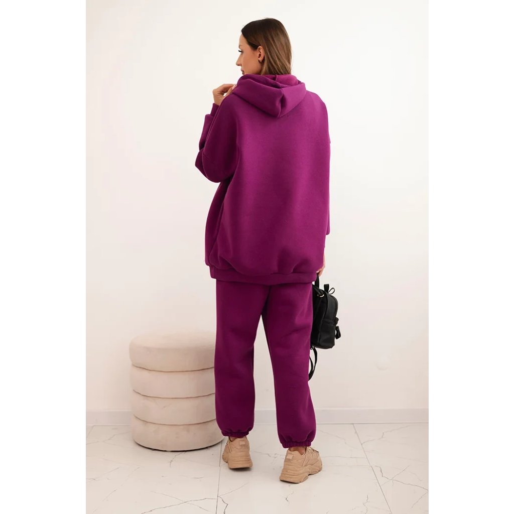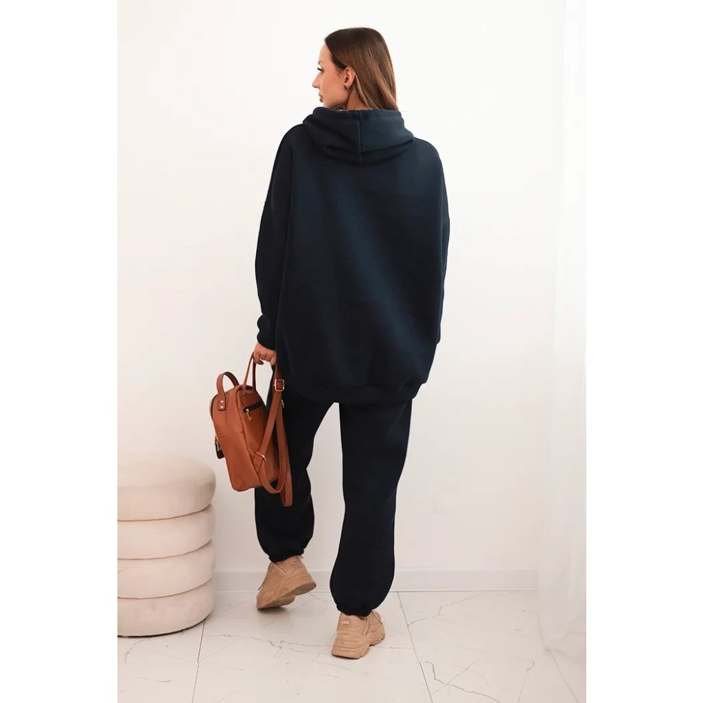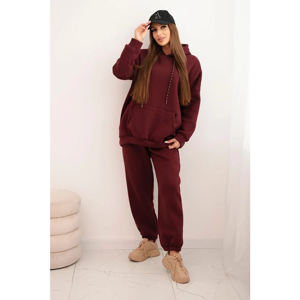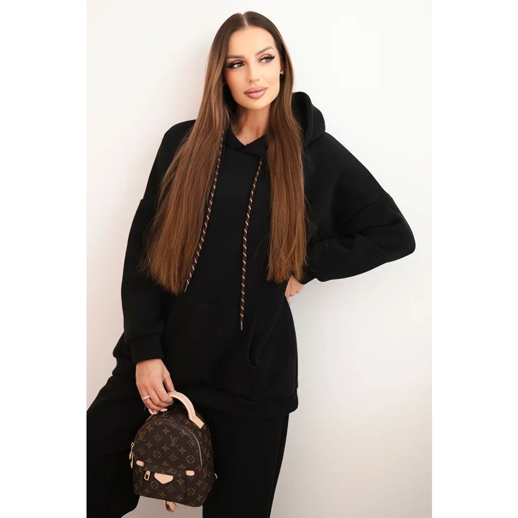 Pohodlná dámska súprava vyrobená z príjemnej bavlnenej látky je ideálnou voľbou na každodenné nosenie. Mikina s objemnou kapucňou, nastaviteľnými šnúrkami a klasickým klokankovým vreckom zabezpečuje pohodlie a voľnosť pohybu. Nohavice s elastickým pásom a sťahovacími manžetami na nohaviciach sa dokonale prispôsobia postave a zaručujú pohodlie po celý deň.