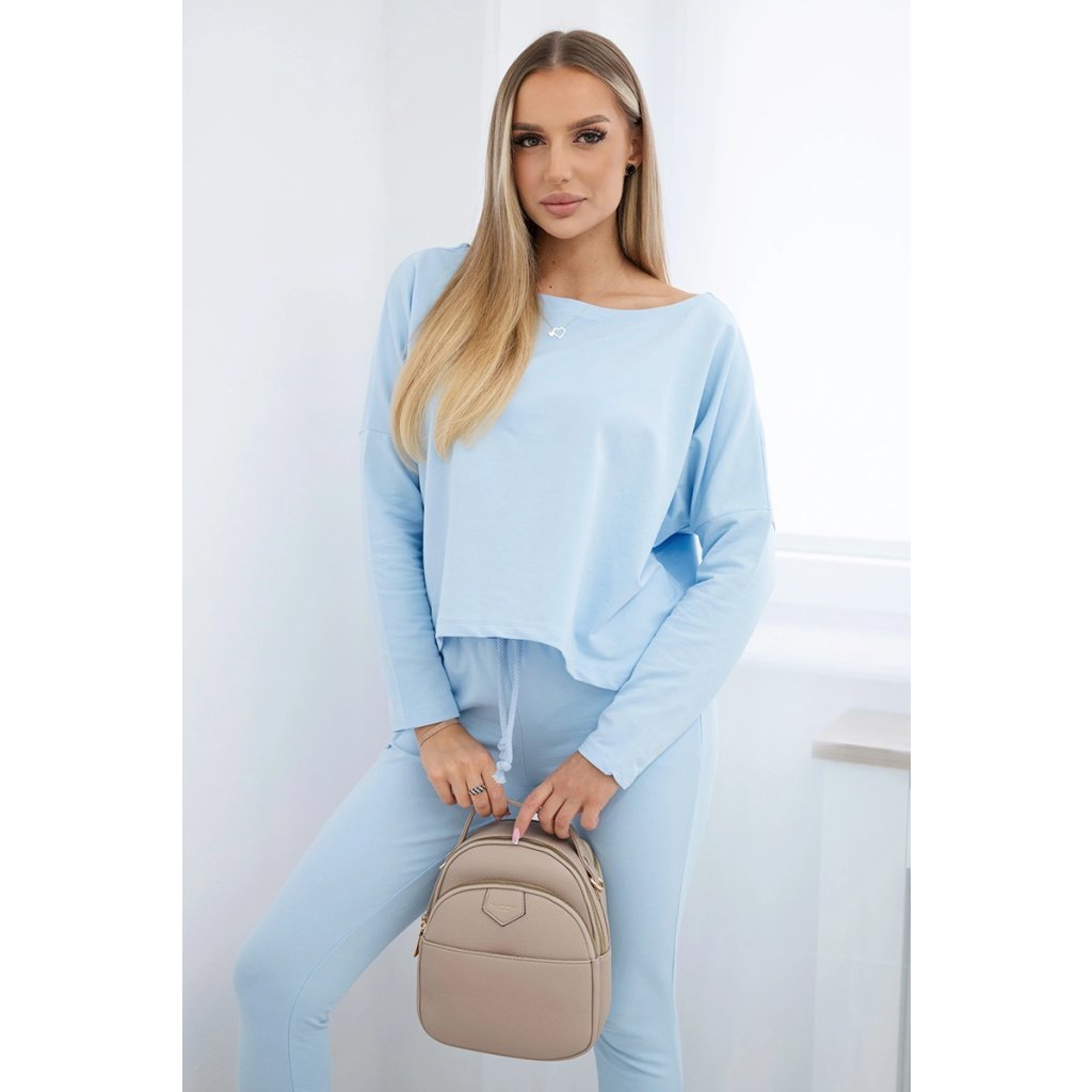 Predstavujeme vám súpravu blúzky a nohavíc. Blúzka oversize. Nohavice s vreckami a viazaním v páse. Súprava je vyrobená z vysoko kvalitného materiálu. Veľkosť je univerzálna a bude vhodná pre dámy veľkosti S, M alebo L.