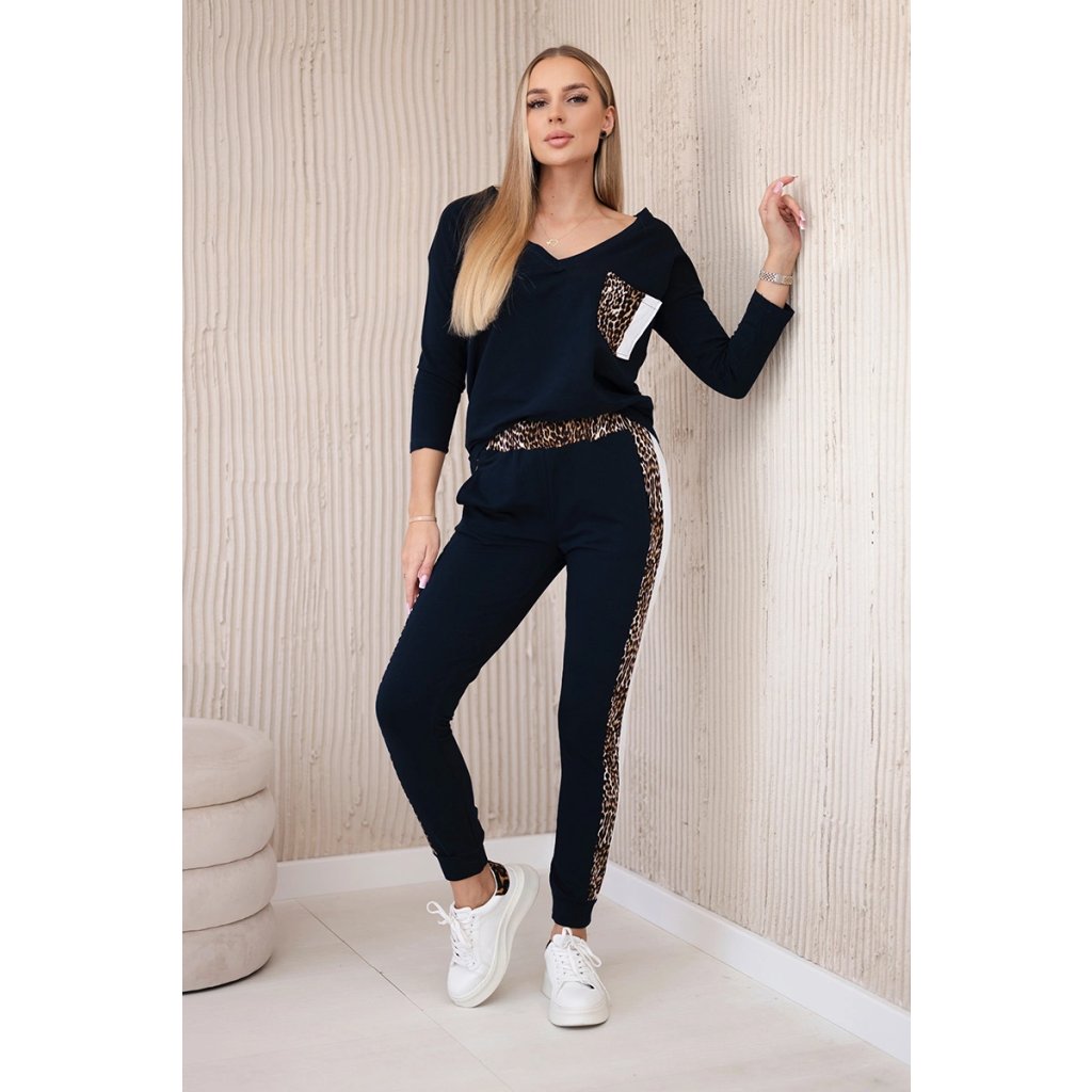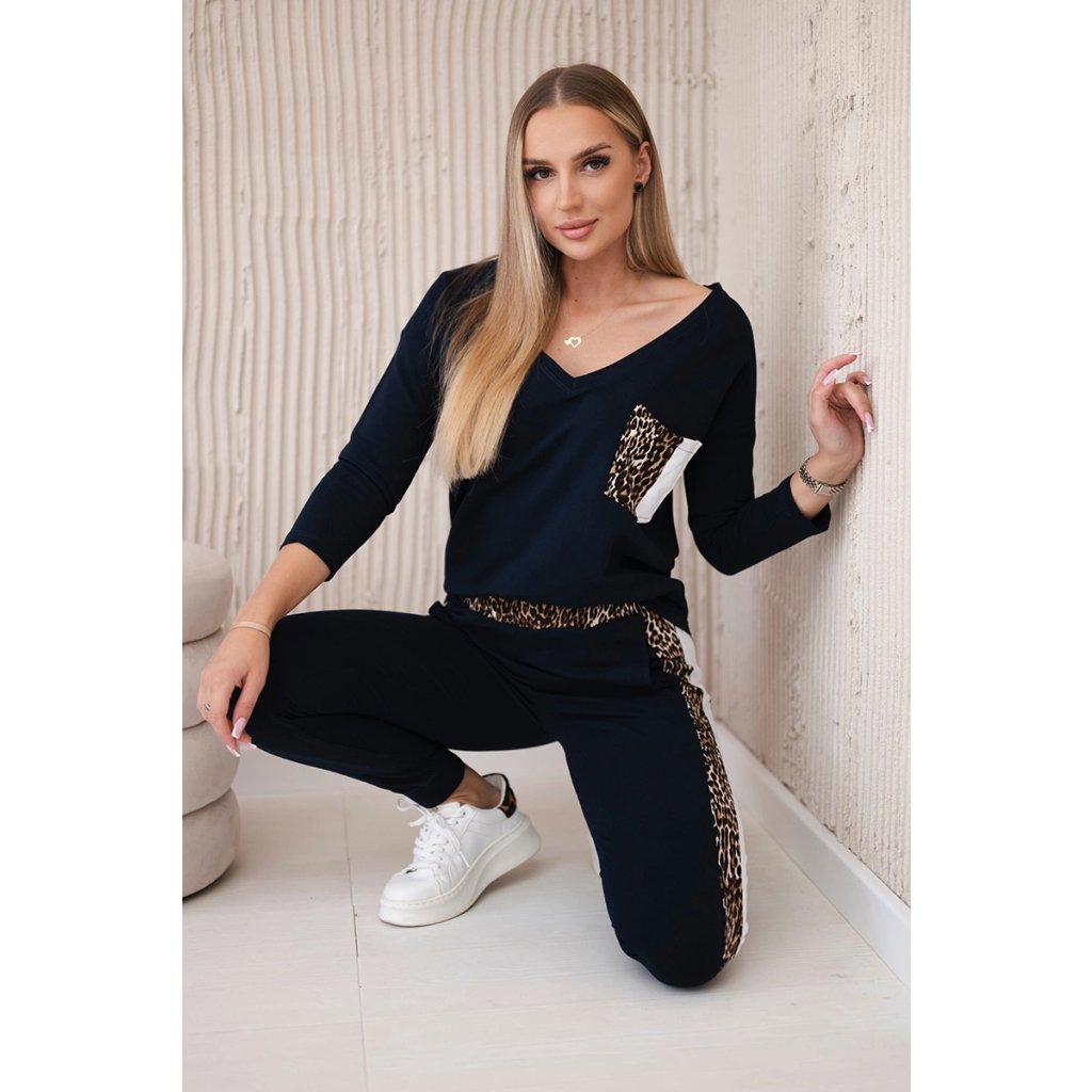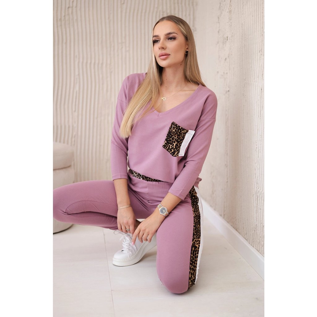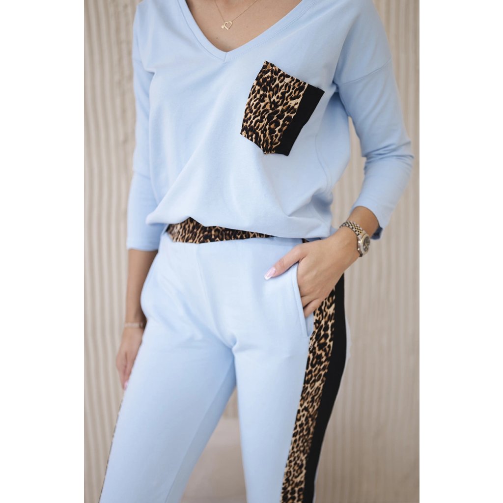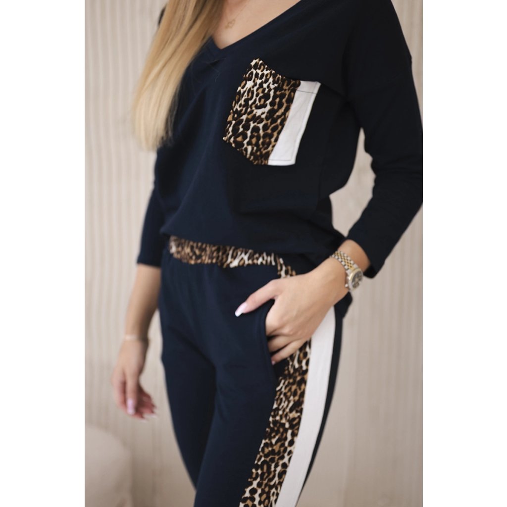 Predstavujeme vám súpravu blúzky a nohavíc. Súprava má vsadky s motívom leoparda. Blúzka má vpredu našité vrecko. Nohavice majú vrecká. Súprava je vyrobená z vysokokvalitného materiálu. Veľkosť je univerzálna a bude vhodná pre dámy nosiace veľkosť S, M alebo L.