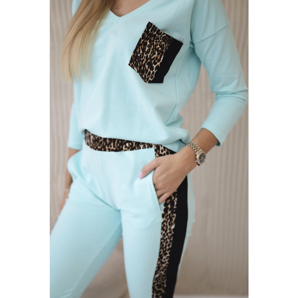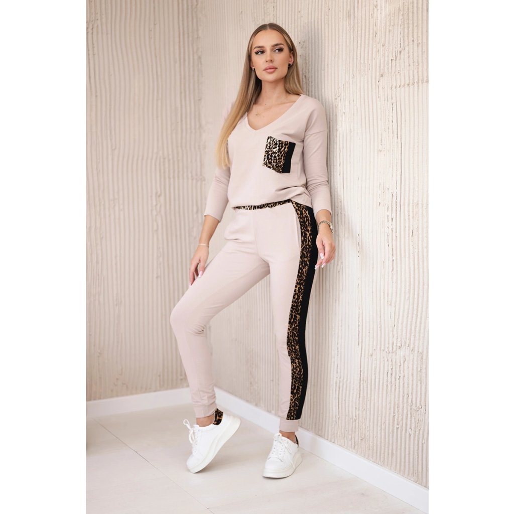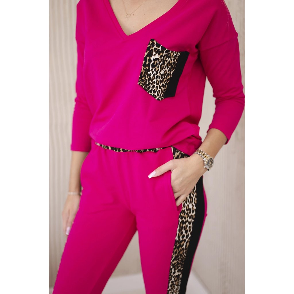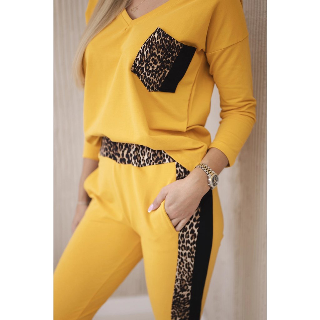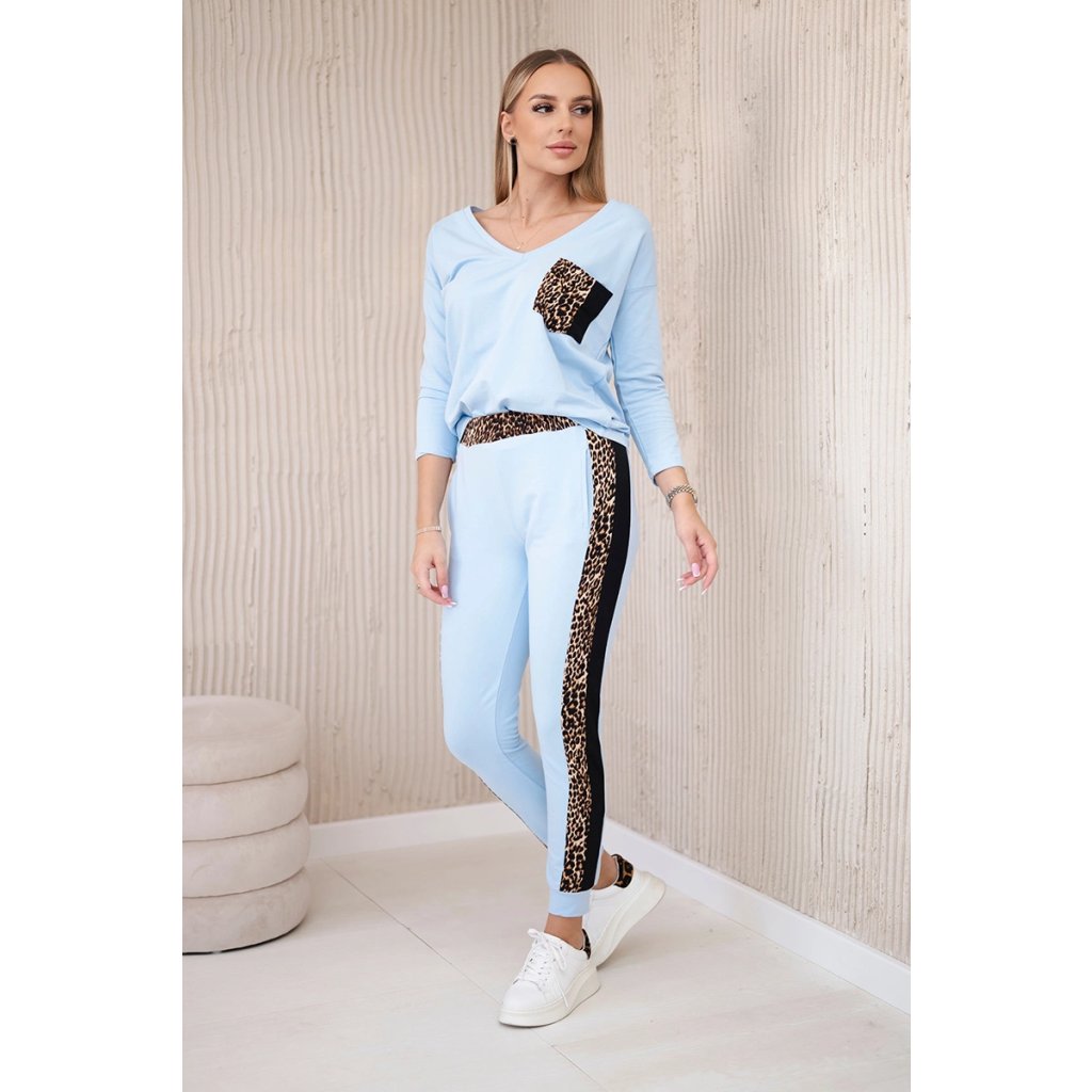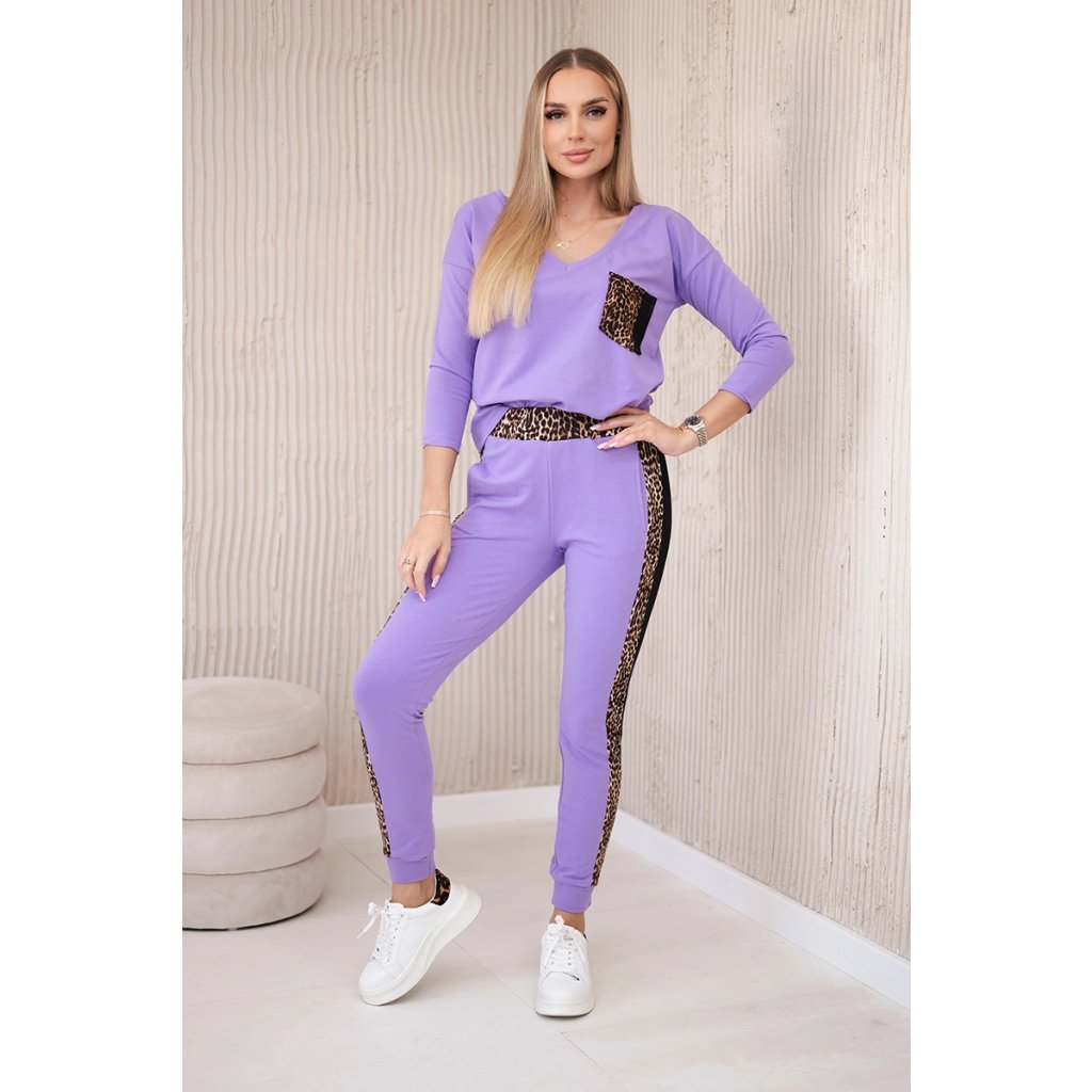 Predstavujeme vám súpravu blúzky a nohavíc. Súprava má vsadky s motívom leoparda. Blúzka má vpredu našité vrecko. Nohavice majú vrecká. Súprava je vyrobená z vysokokvalitného materiálu. Veľkosť je univerzálna a bude vhodná pre dámy nosiace veľkosť S, M alebo L.