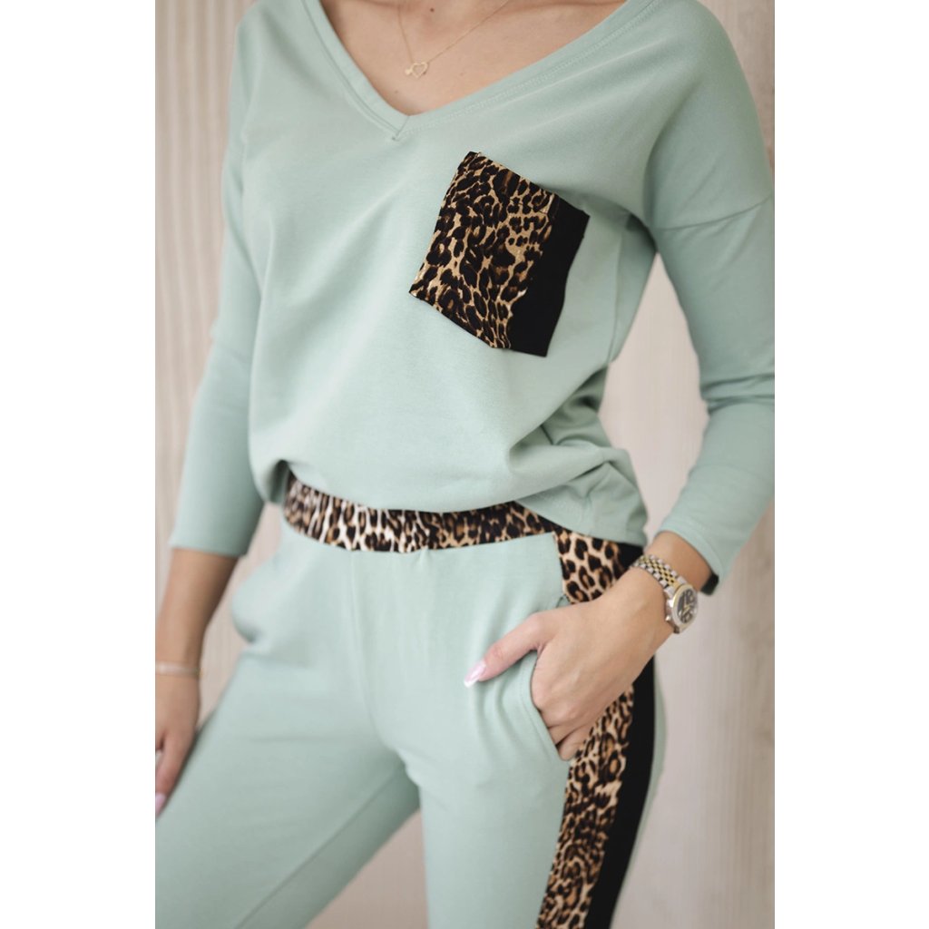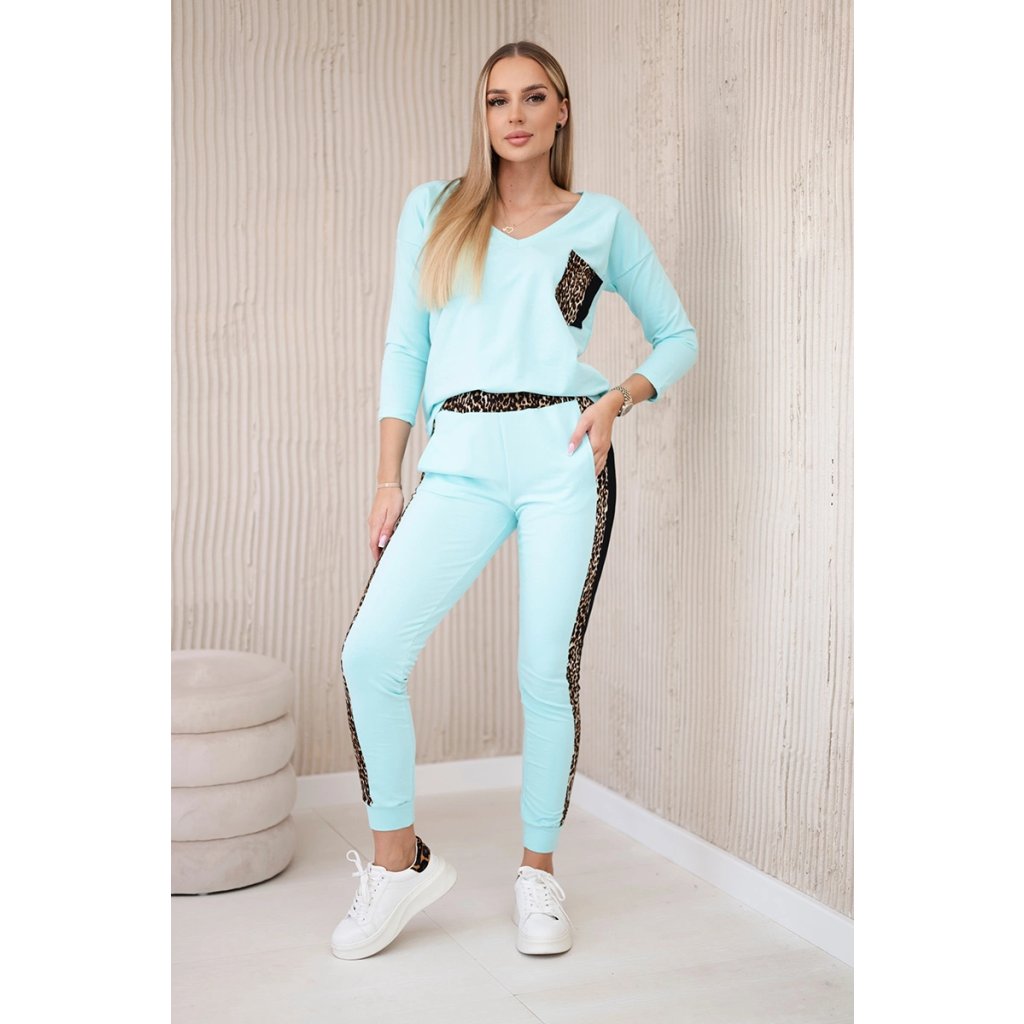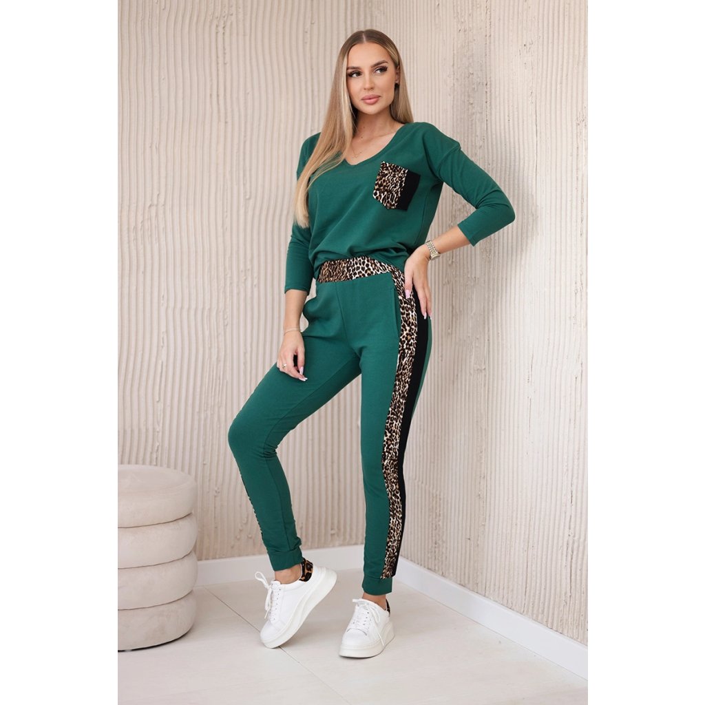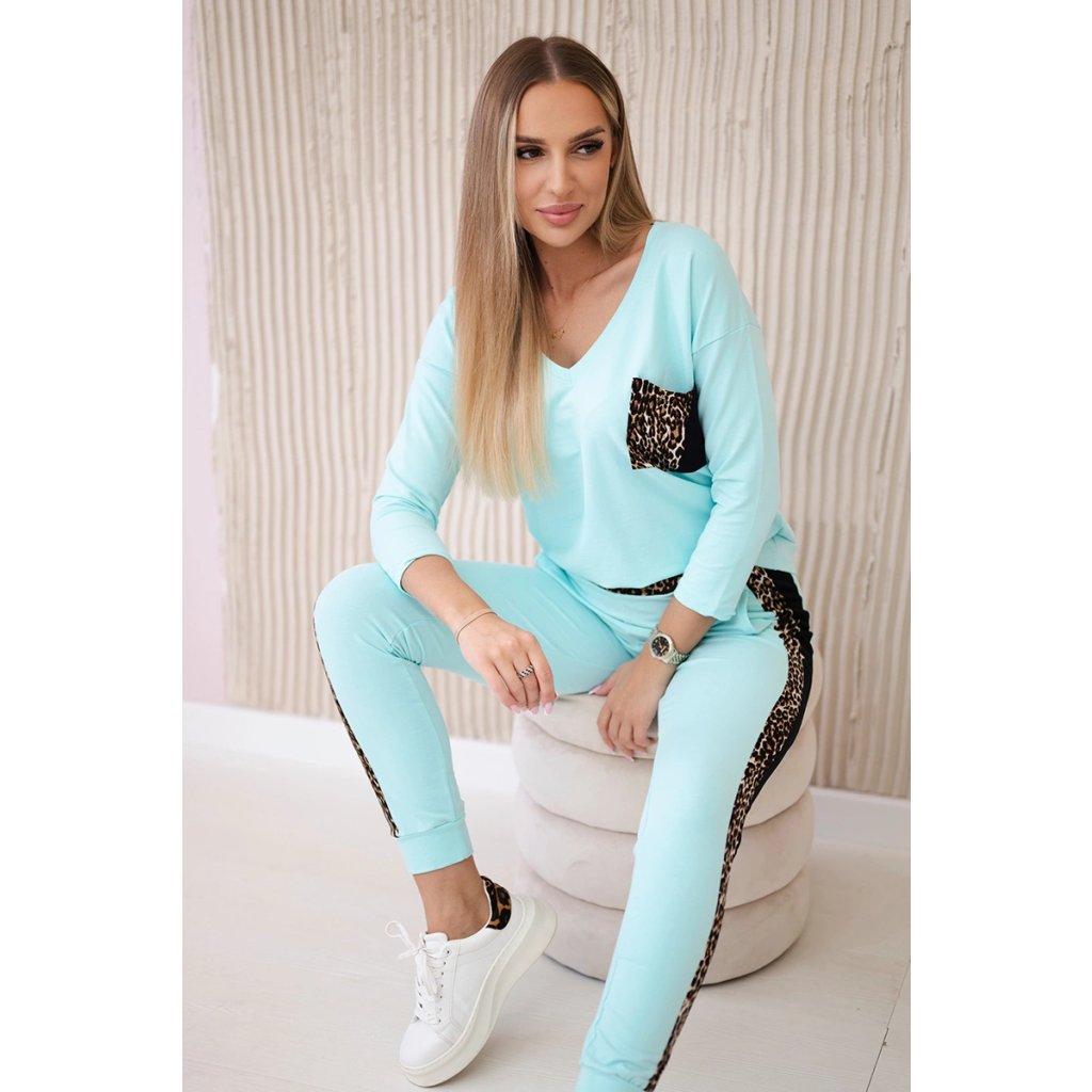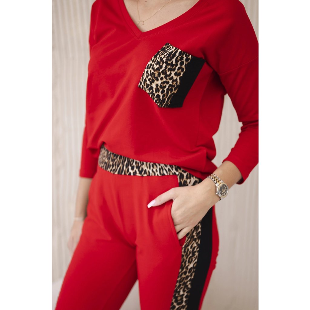 Predstavujeme vám súpravu blúzky a nohavíc. Súprava má vsadky s motívom leoparda. Blúzka má vpredu našité vrecko. Nohavice majú vrecká. Súprava je vyrobená z vysokokvalitného materiálu. Veľkosť je univerzálna a bude vhodná pre dámy nosiace veľkosť S, M alebo L.