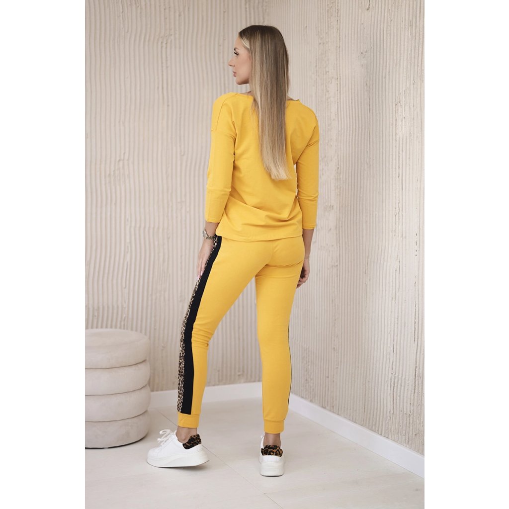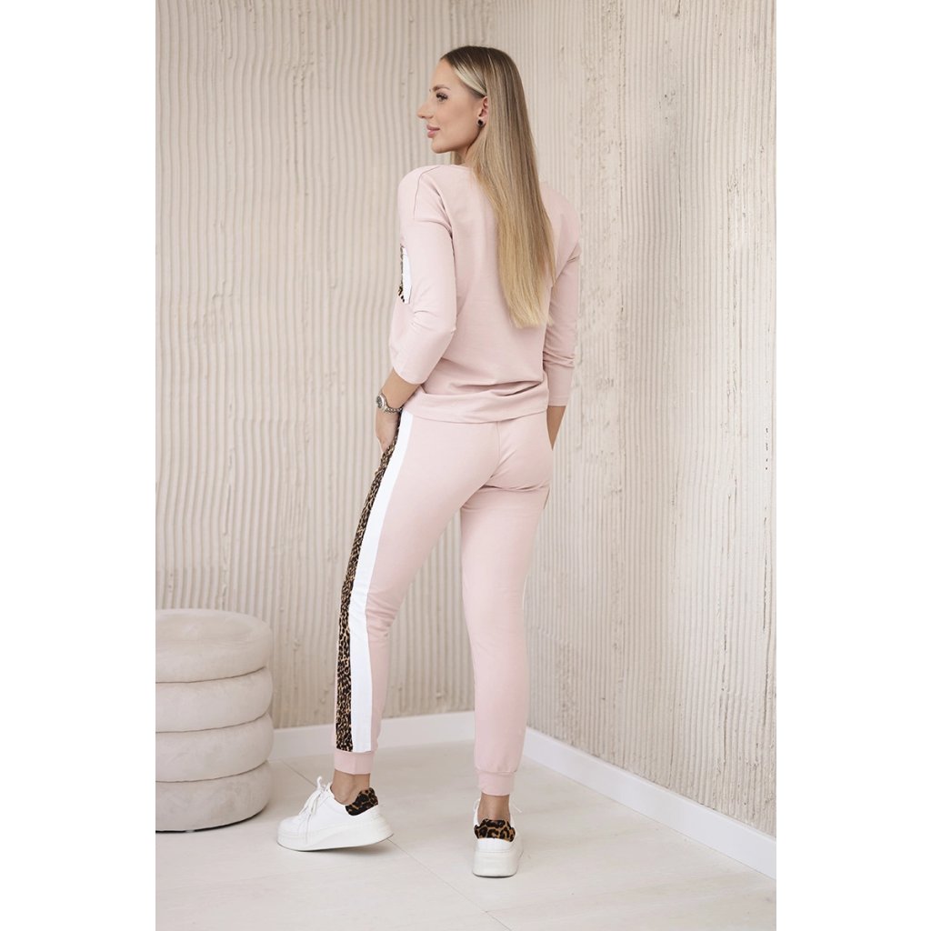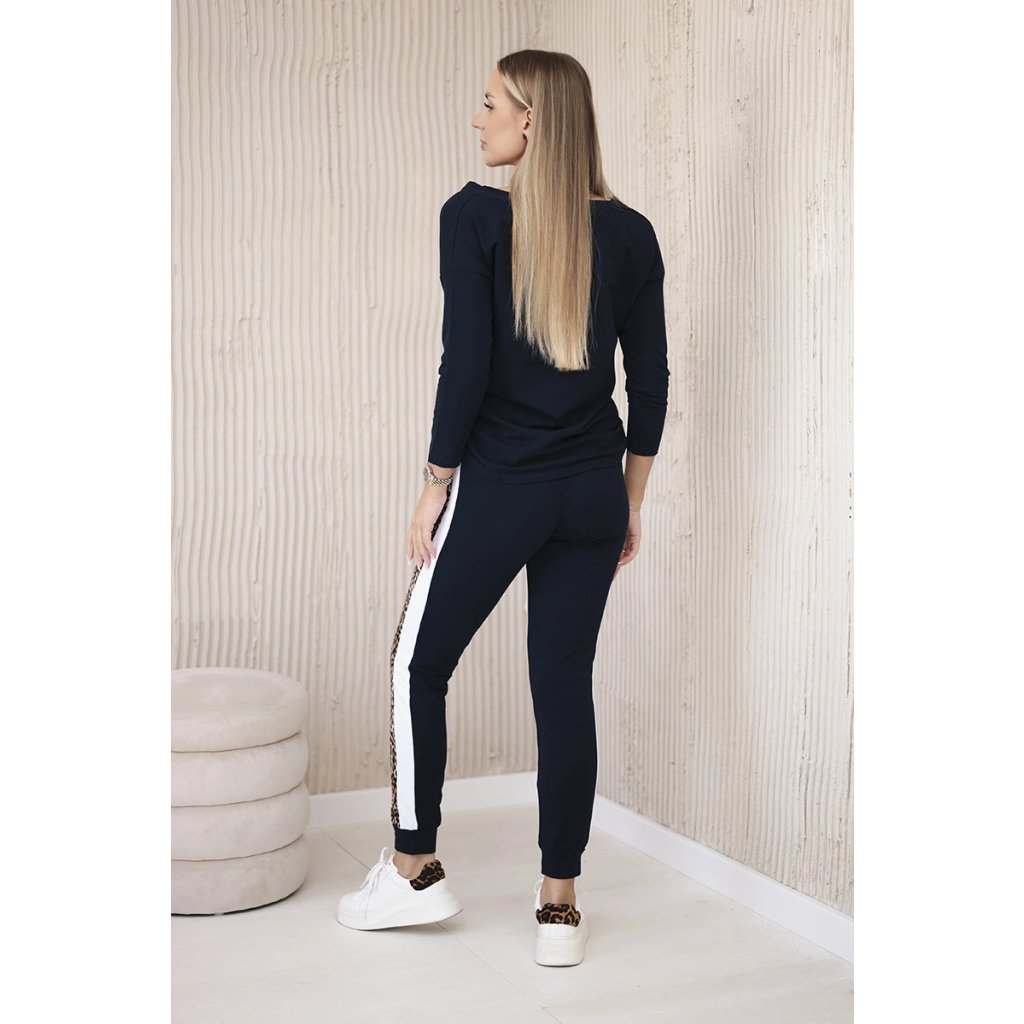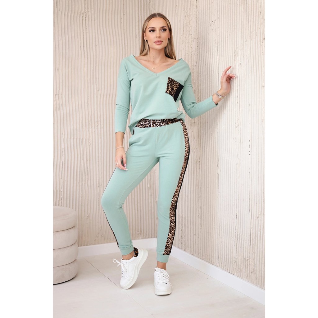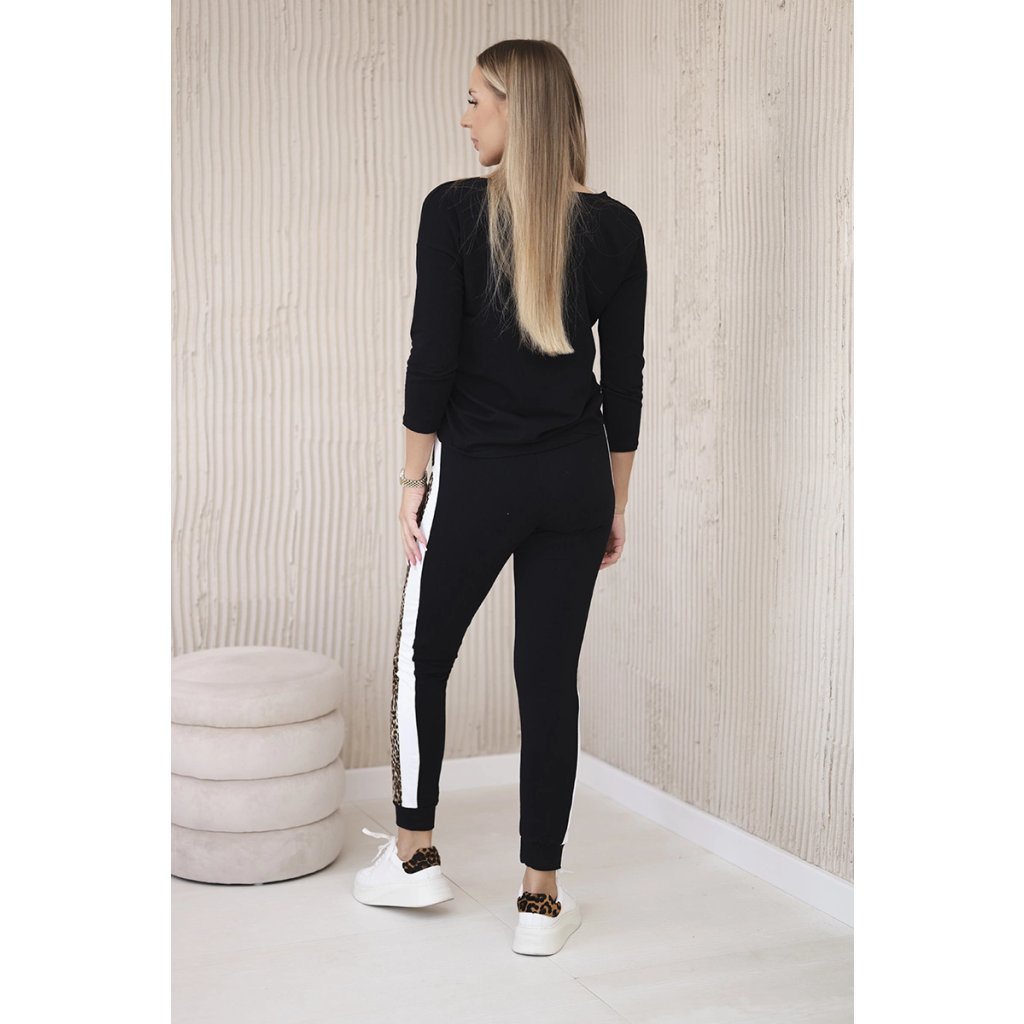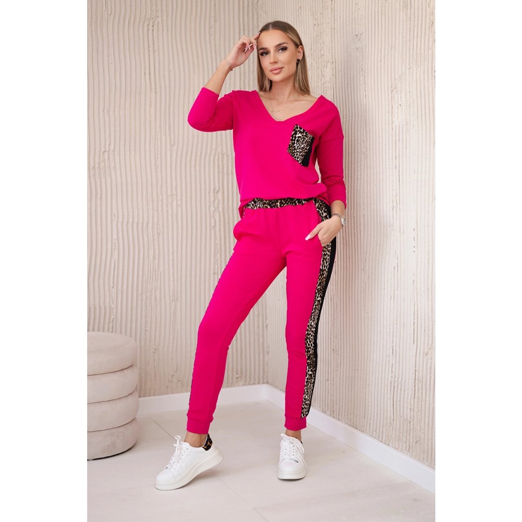 Predstavujeme vám súpravu blúzky a nohavíc. Súprava má vsadky s motívom leoparda. Blúzka má vpredu našité vrecko. Nohavice majú vrecká. Súprava je vyrobená z vysokokvalitného materiálu. Veľkosť je univerzálna a bude vhodná pre dámy nosiace veľkosť S, M alebo L.