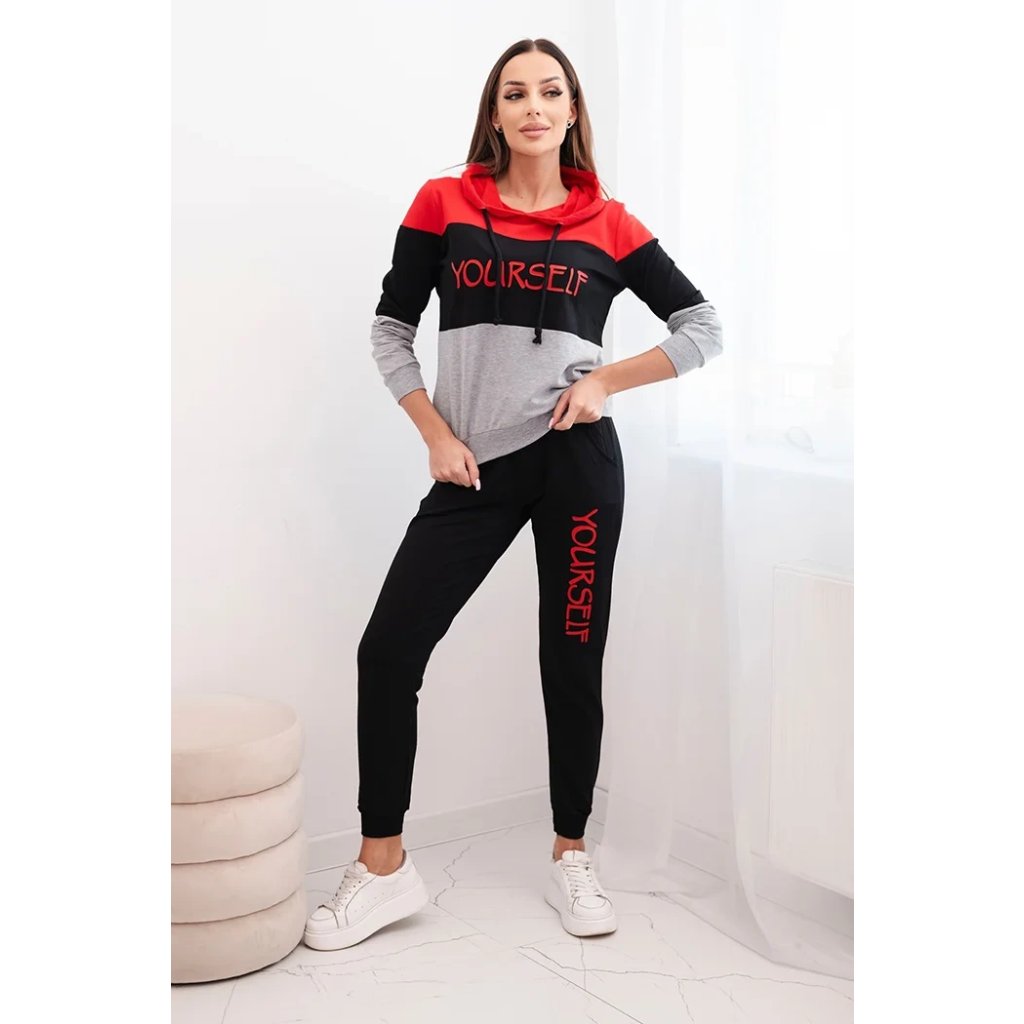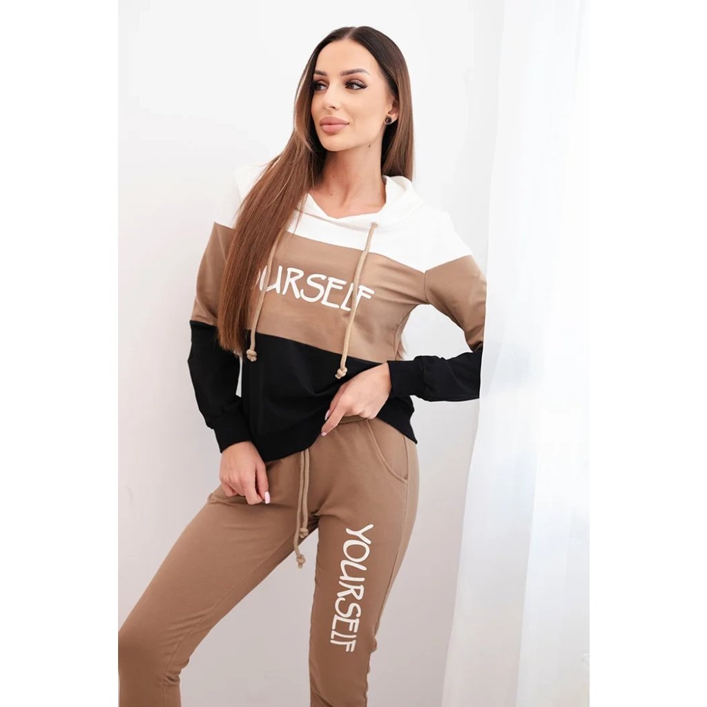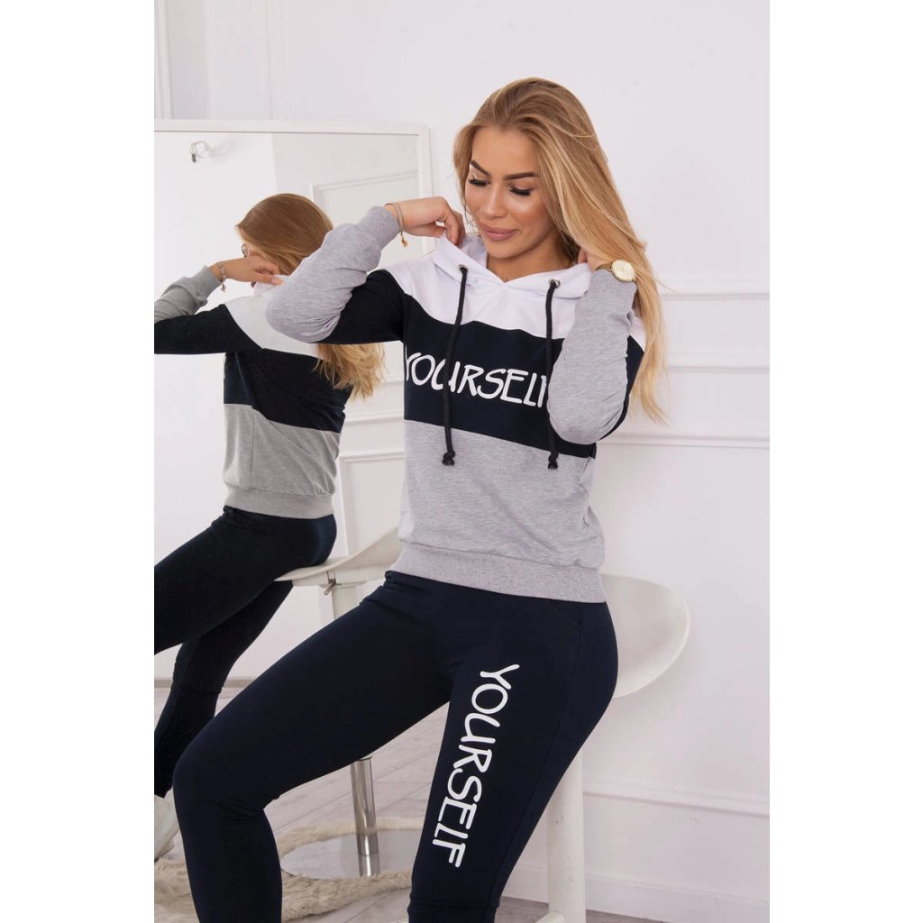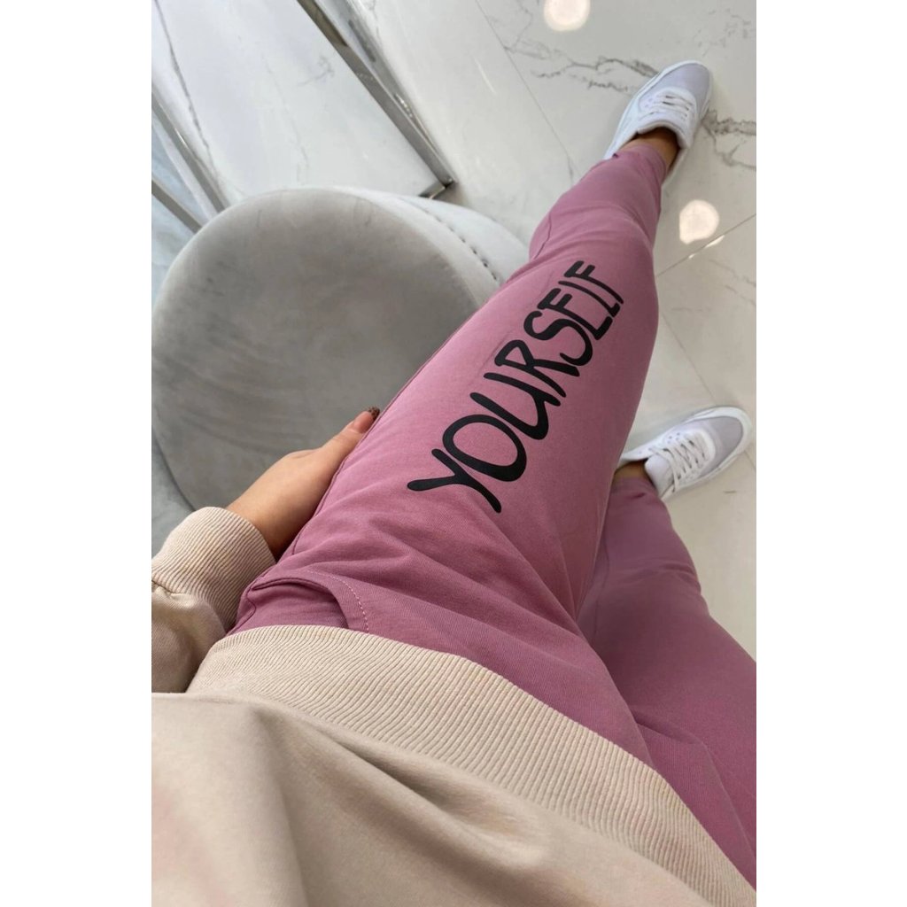 Predstavujeme vám súpravu mikiny a nohavíc. Mikina má nápis Yourself. Nohavice s vreckami. Nohavice tiež s potlačou. Súprava je vyrobená z vysoko kvalitného materiálu. Veľkosť je univerzálna a bude vhodná pre dámy nosiace veľkosť S, M alebo XL