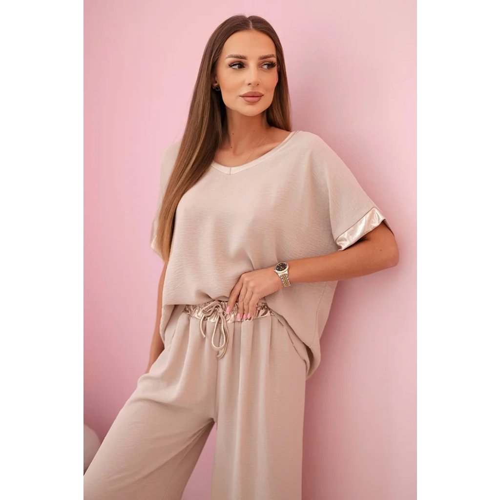 Súprava z viskózy so zlatým lemovaním tmavo béžová