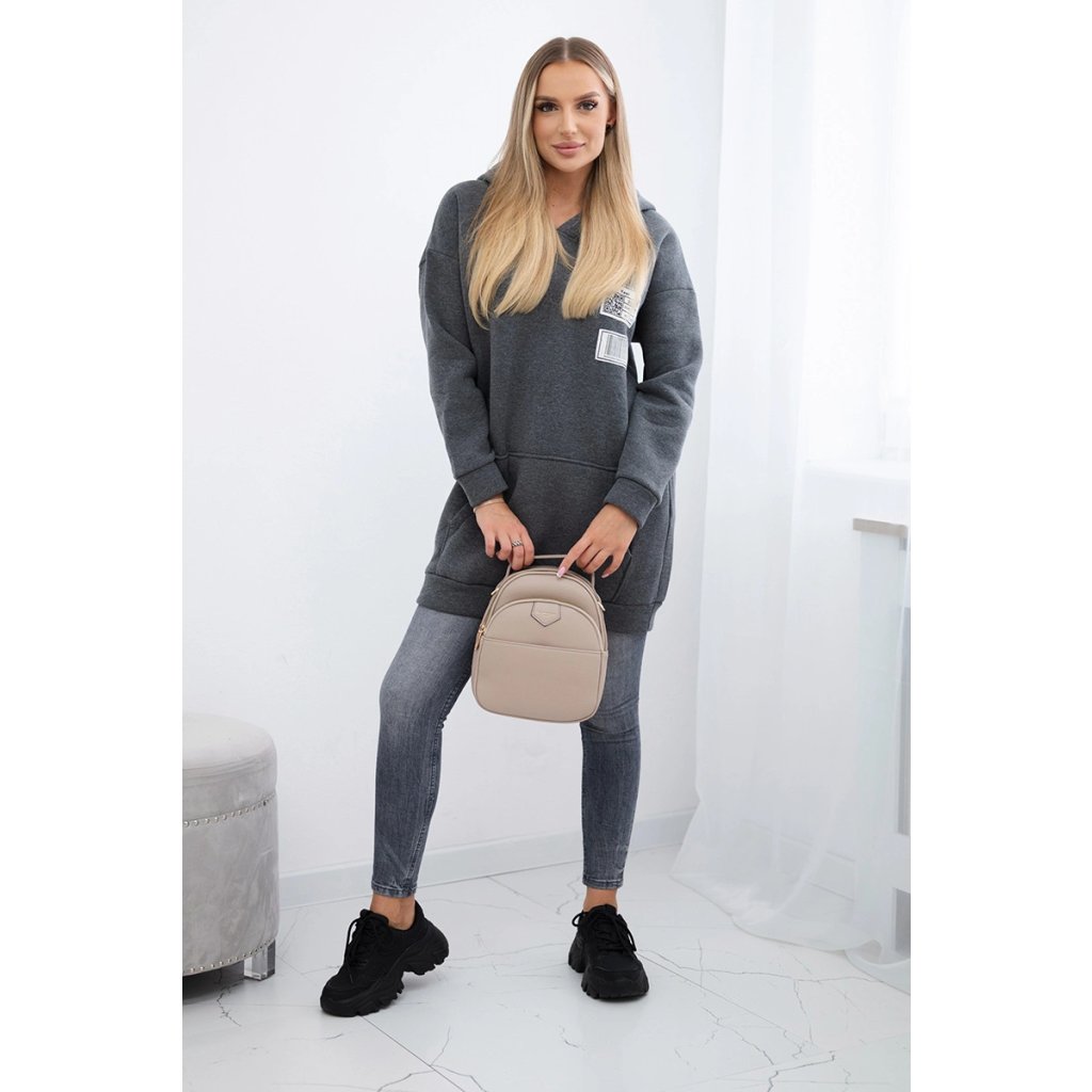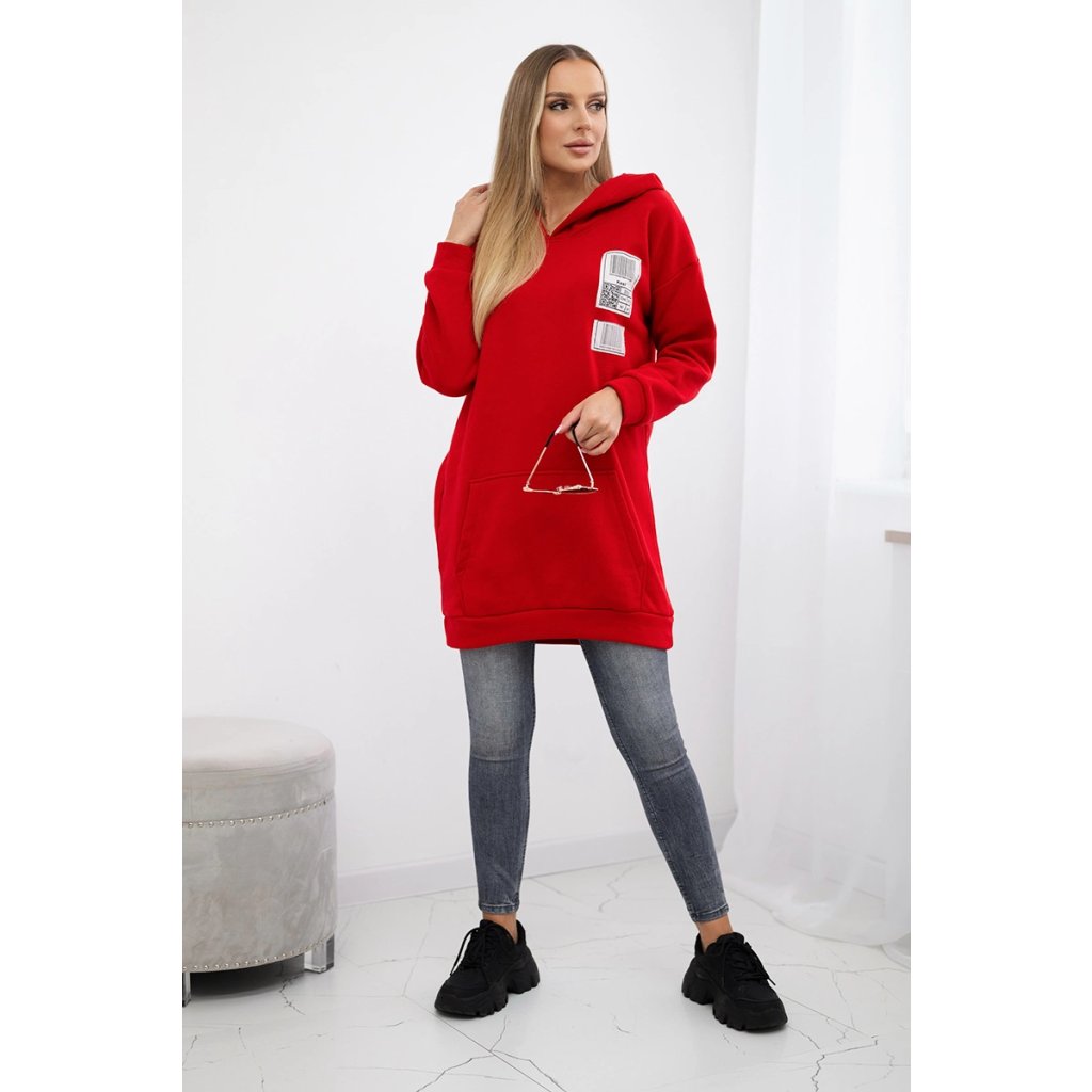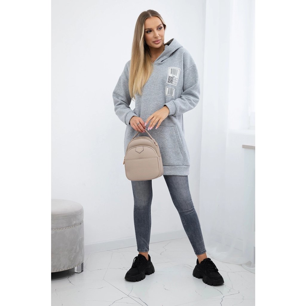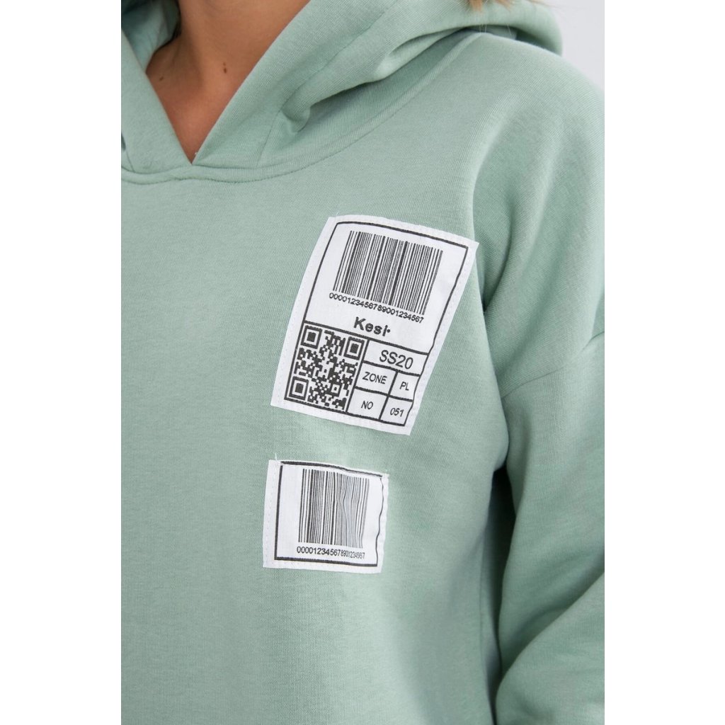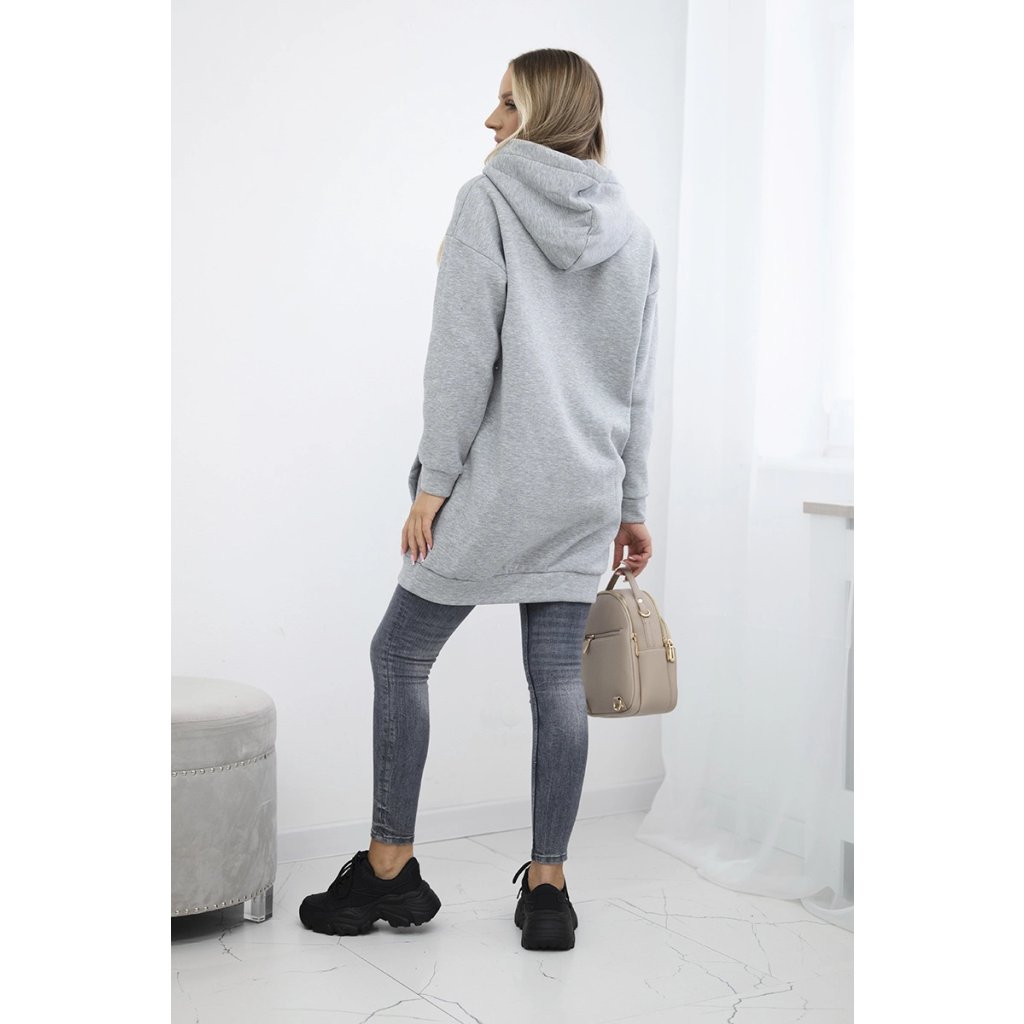 Predstavujeme vám pohodlnú mikinu. Mikina má kapucňu a vrecko vpredu. Ďalej má mikina vpredu nášivky. Mikina je vyrobená z vysokokvalitného materiálu. Veľkosť je univerzálna a bude vhodná pre dámy nosiace veľkosť S, M alebo L.