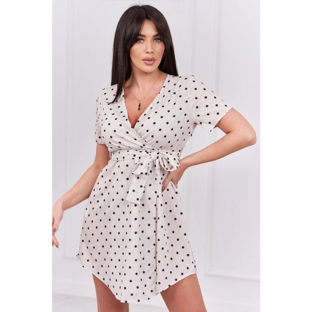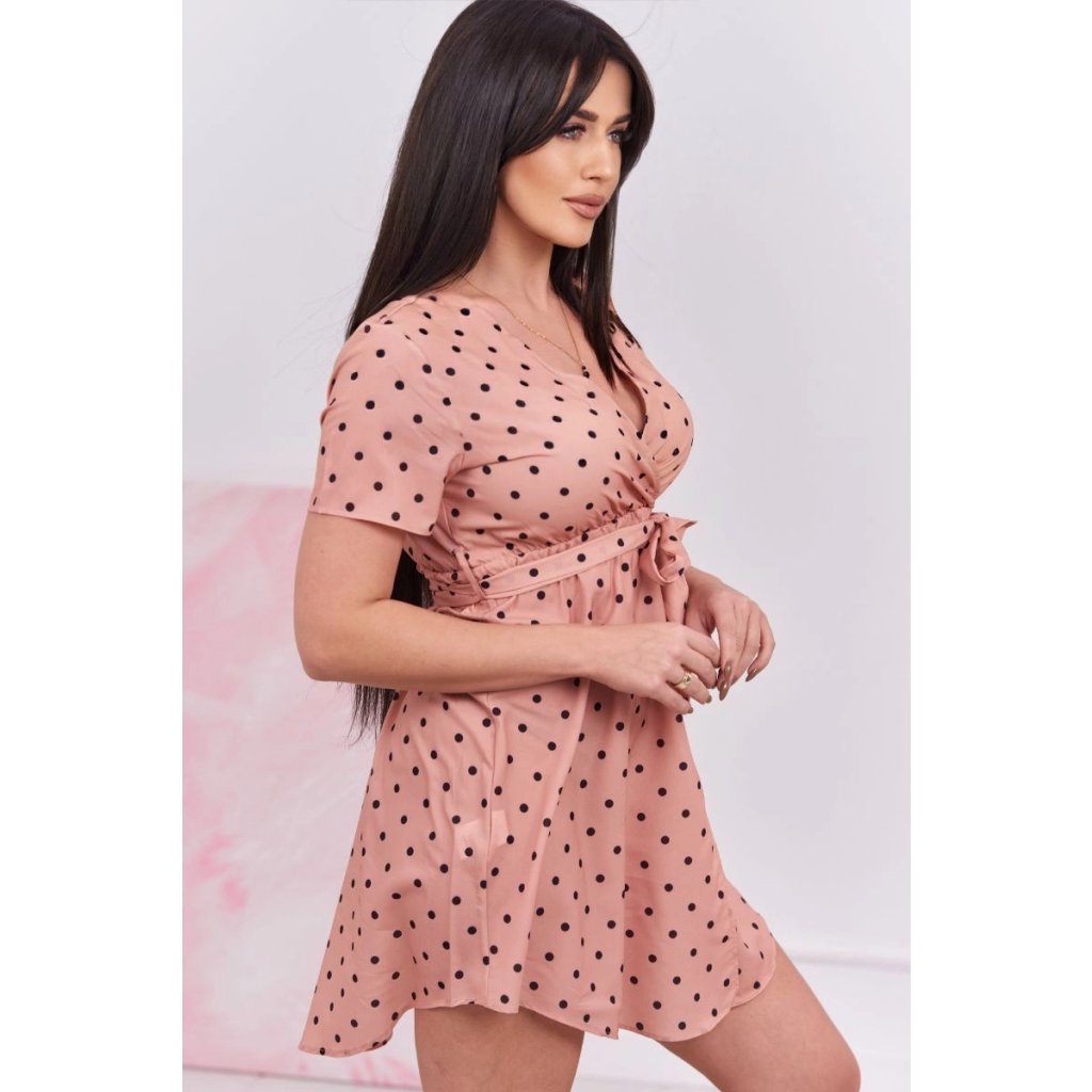 Predstavujeme vám módne šaty. Šaty majú vzor s bodkami. Šaty sú viazané v páse. Ideálna voľba na každý deň. Šaty sú vyrobené z vysoko kvalitného materiálu. Veľkosť je univerzálna a bude vhodná pre dámy nosiace veľkosť S, M alebo L.