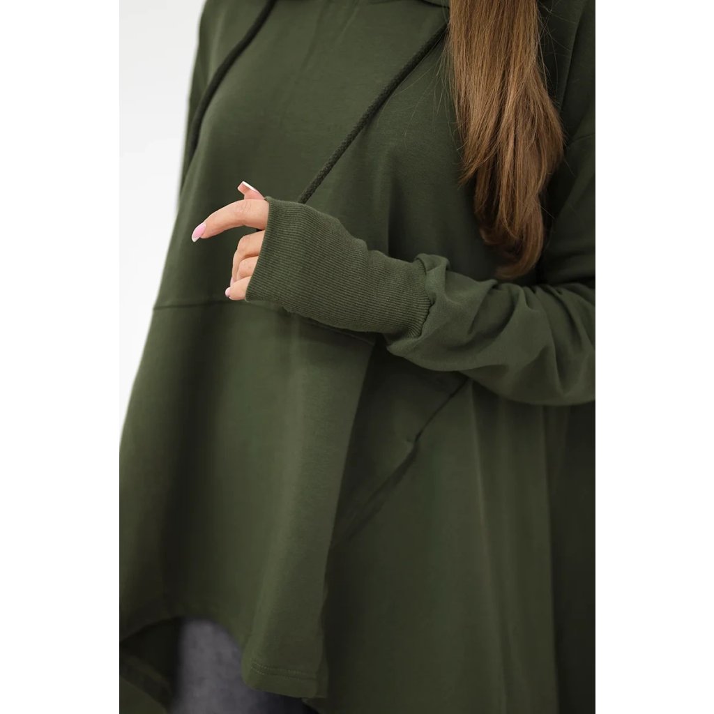 Predstavujeme vám pohodlnú mikinu s kapucňou. Mikina má rozšírený dolný okraj. Hladká bez potlače, čo z nej robí ideálny kúsok pre mnohé štýly. Mikina je vyrobená z vysokokvalitného materiálu. Veľkosť je univerzálna a bude vhodná pre dámy nosiace veľkosť S, M alebo L.